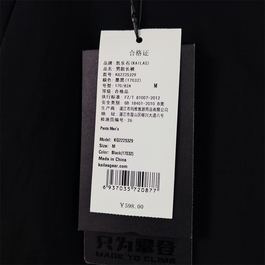 Kailas/凱樂石男款速乾功能長褲夏季輕薄通勤運動長褲KG225329