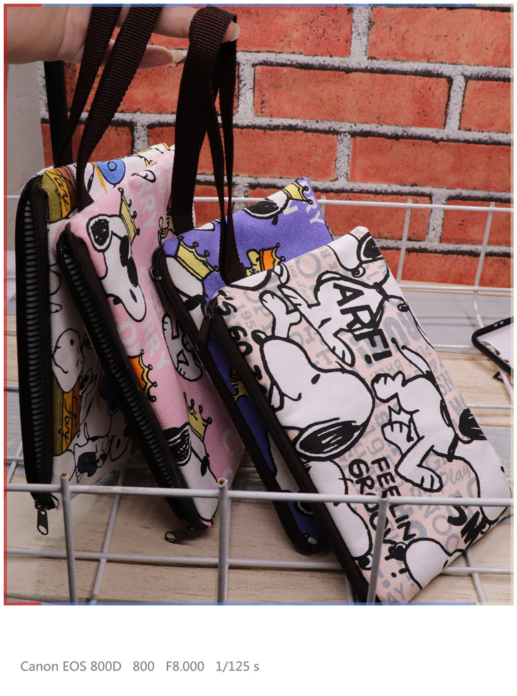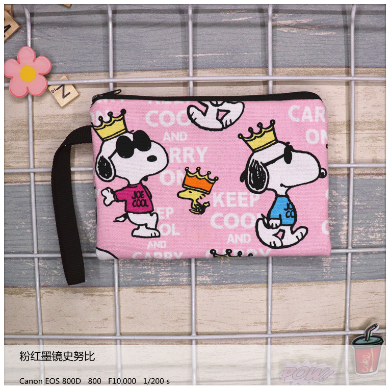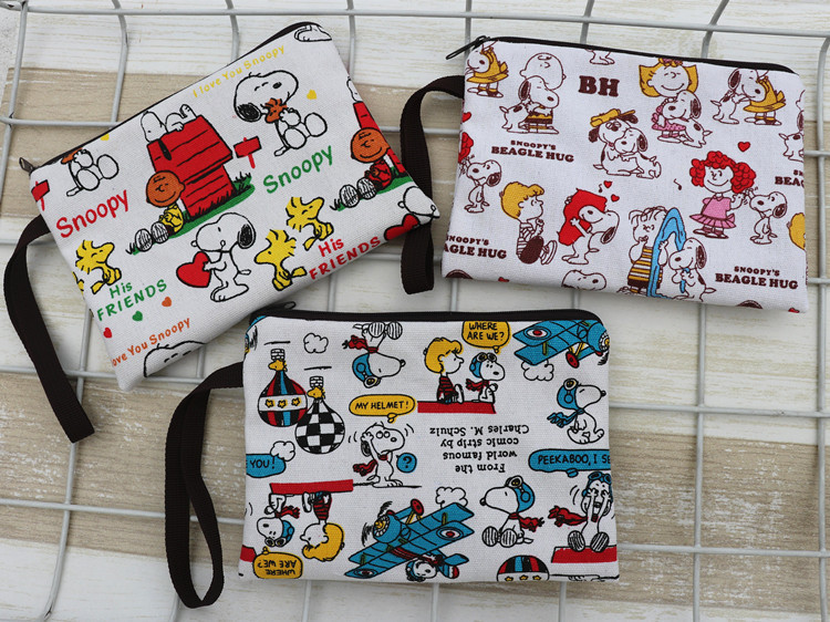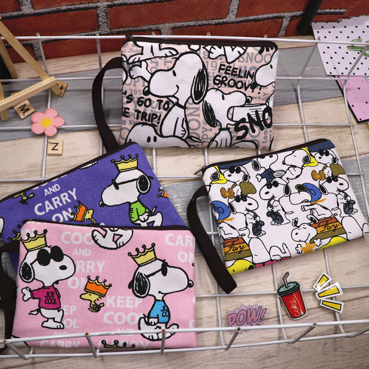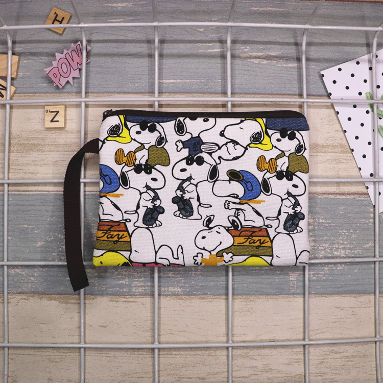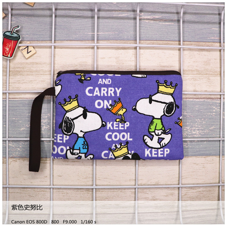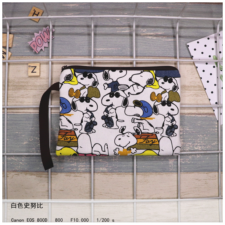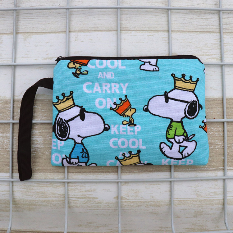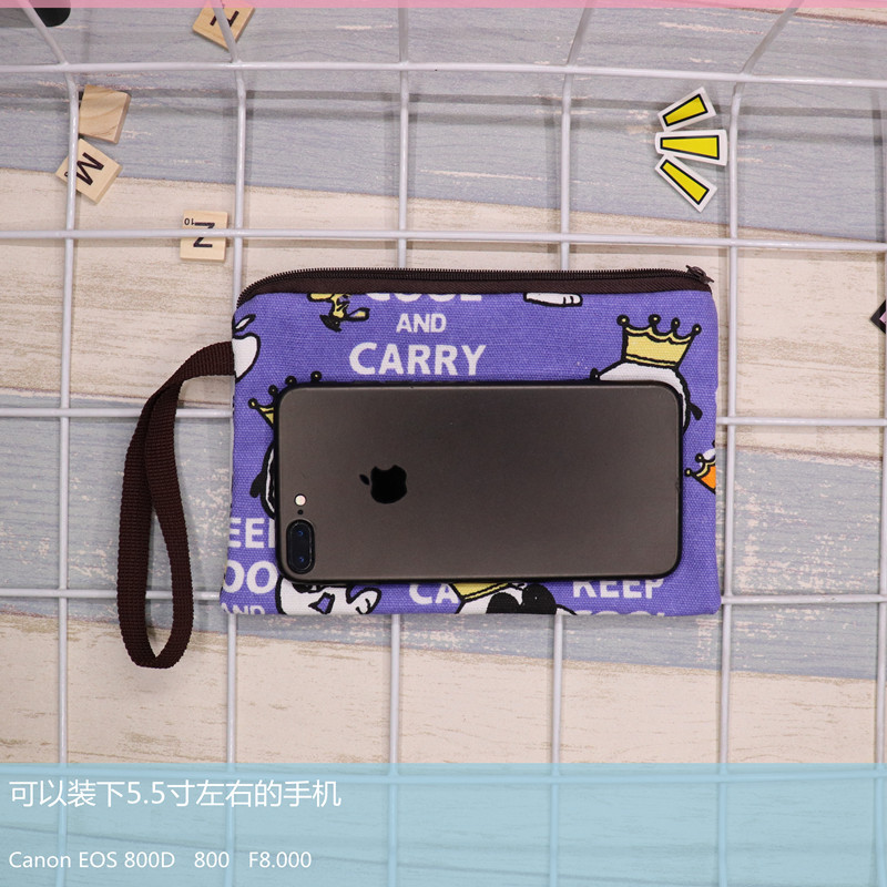 帆布厚卡通史努比可爱手拿腕带拉链手机零钱钥匙化妆包笔袋