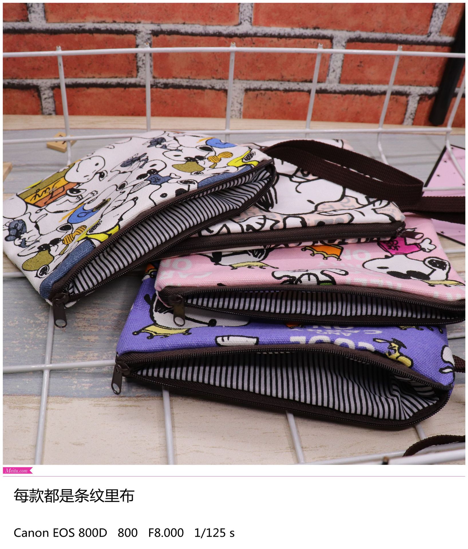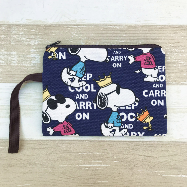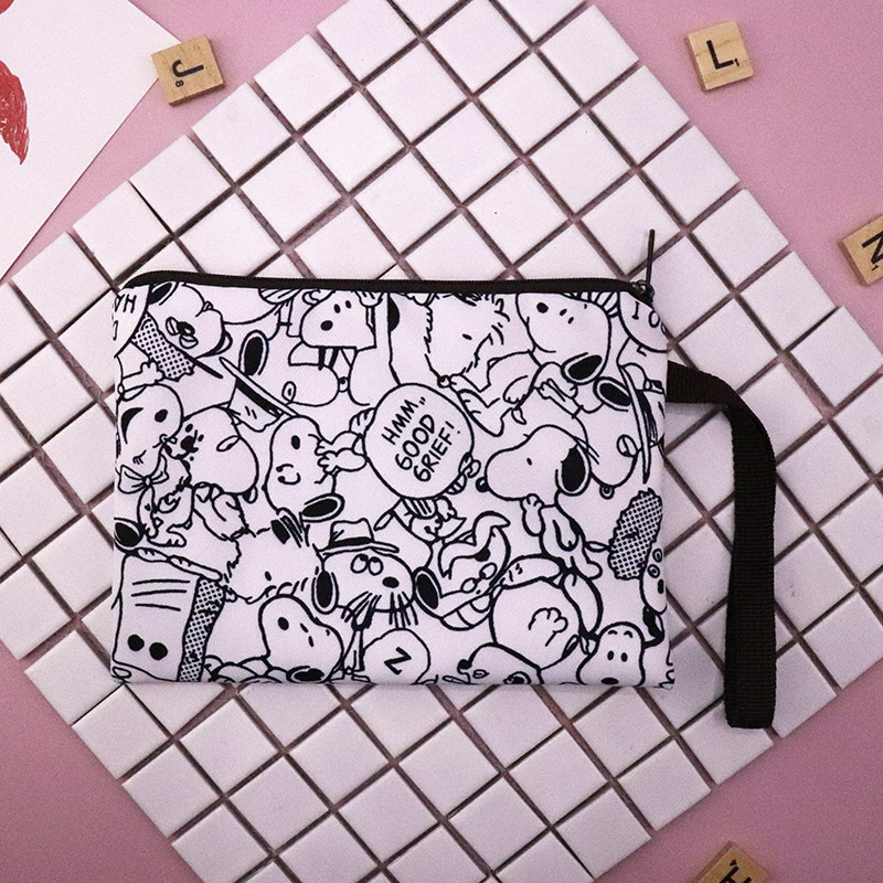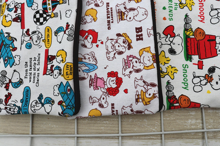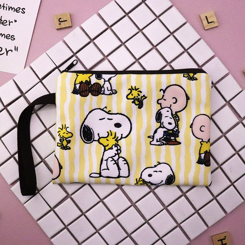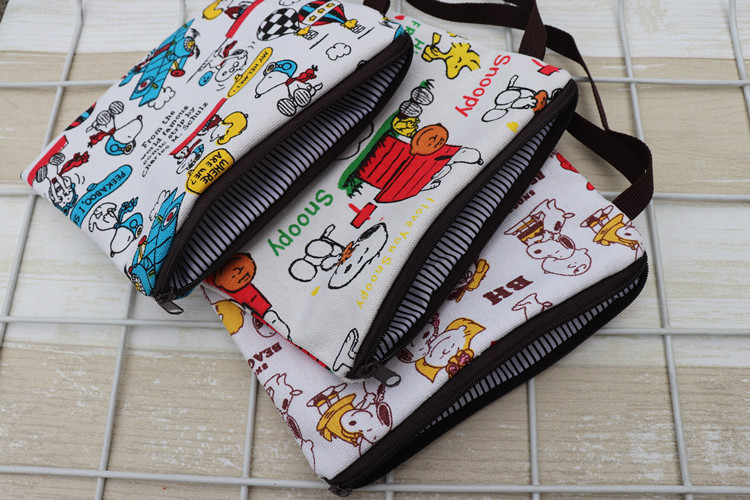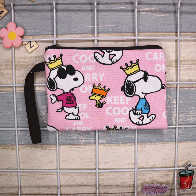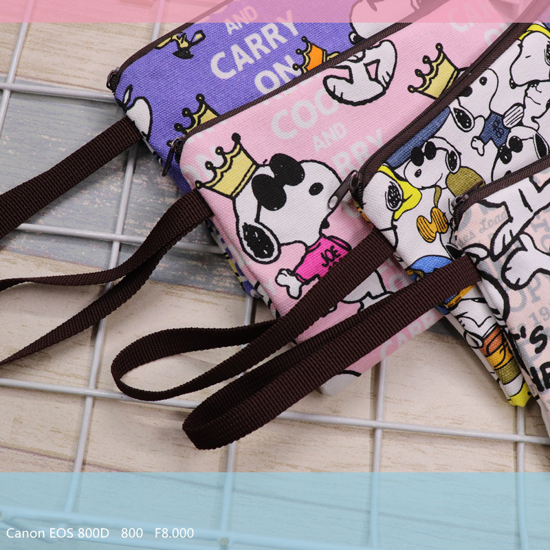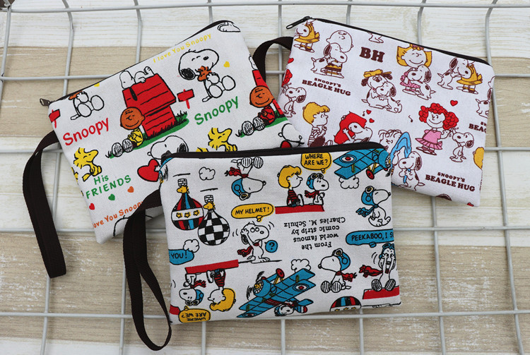 帆布厚卡通史努比可爱手拿腕带拉链手机零钱钥匙化妆包笔袋