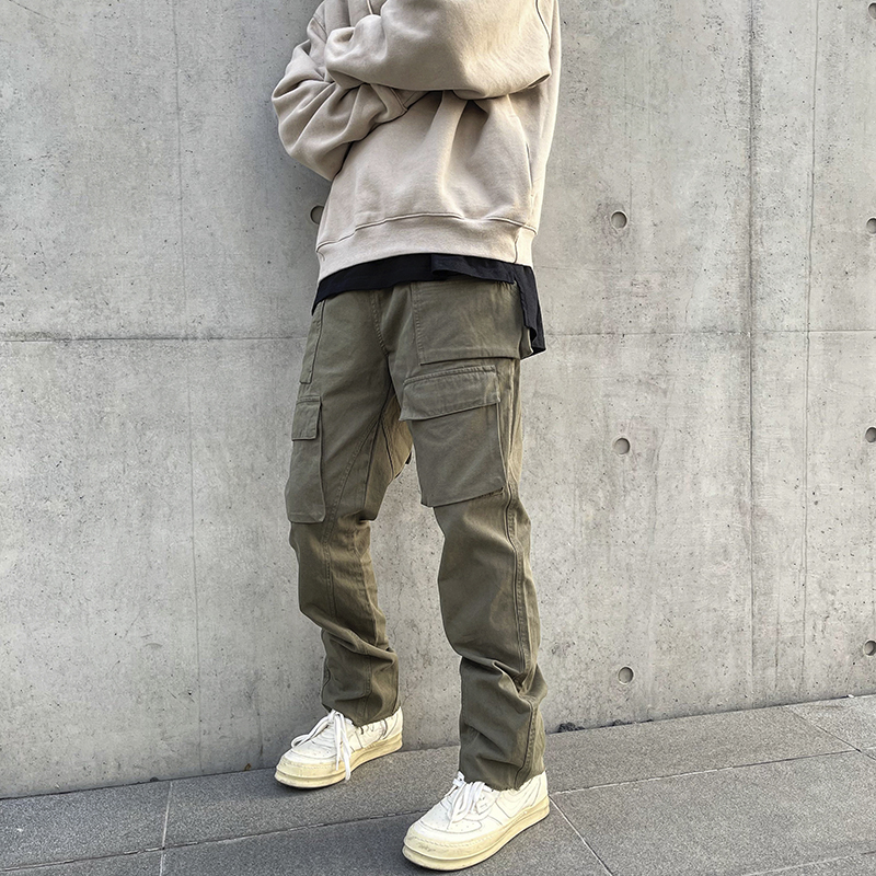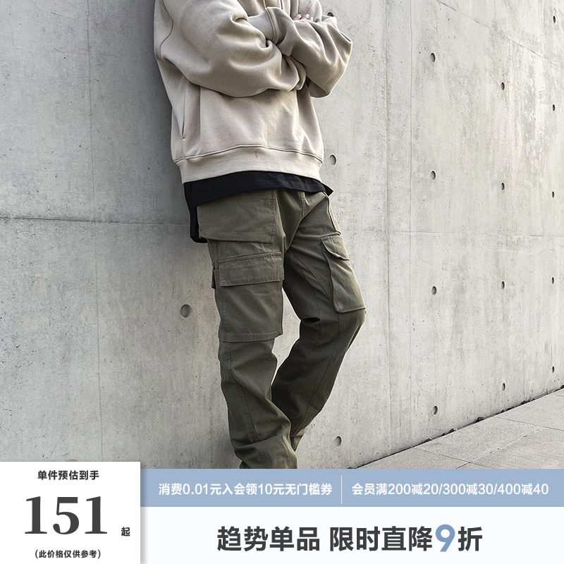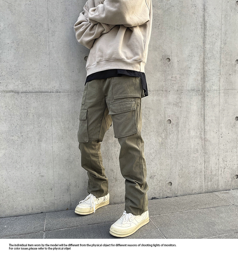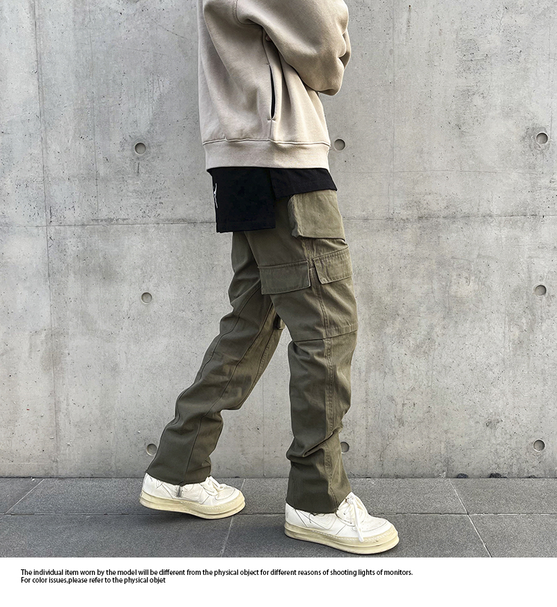 王一博同款vibe風復古做舊重工多口袋炮彈工裝褲高街微喇叭褲男潮