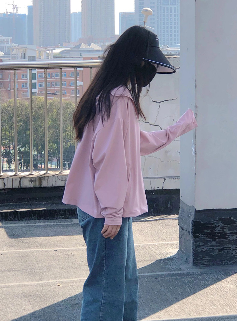 超好看粉色連帽防曬服女夏季寬鬆高級感時尚氣質獨特休閒百搭上衣