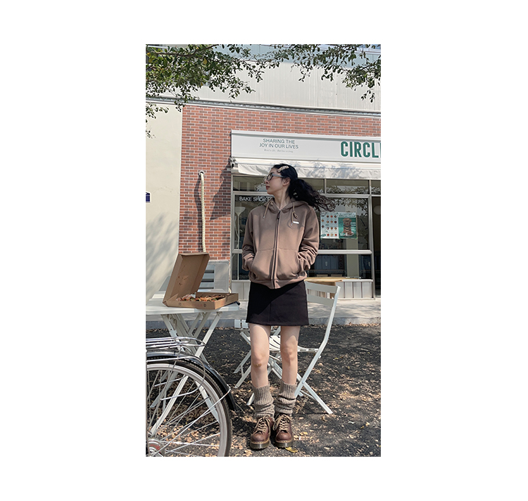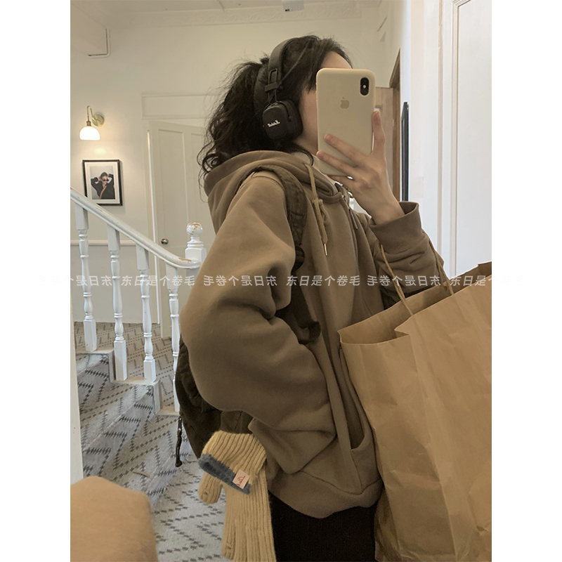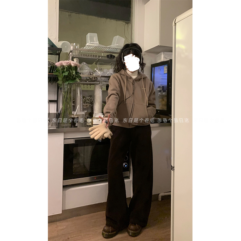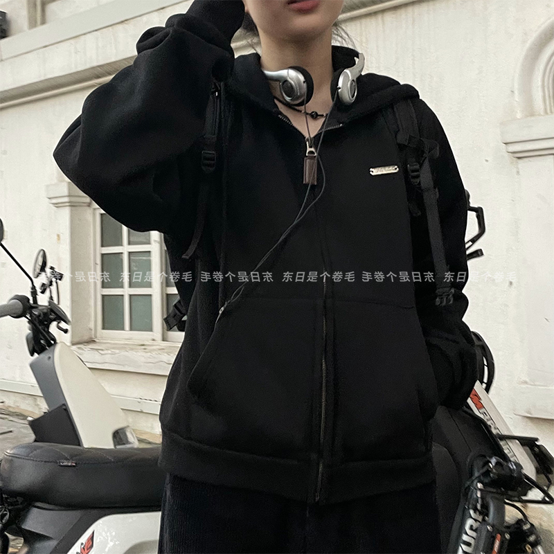 東日是個捲毛 復古摩登 短款加絨連帽運動衫開衫女春季美式復古外套
