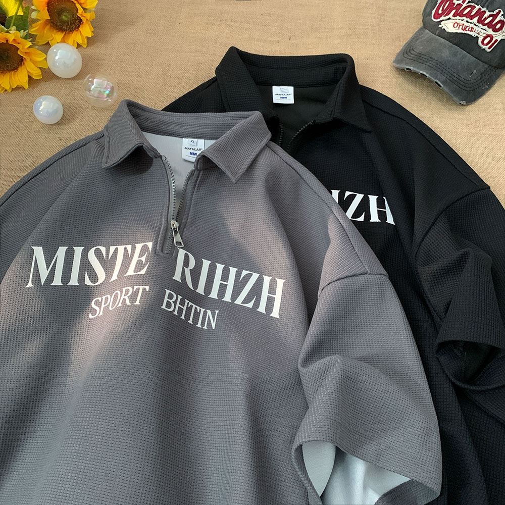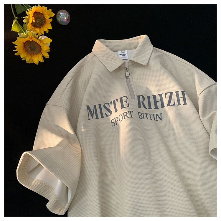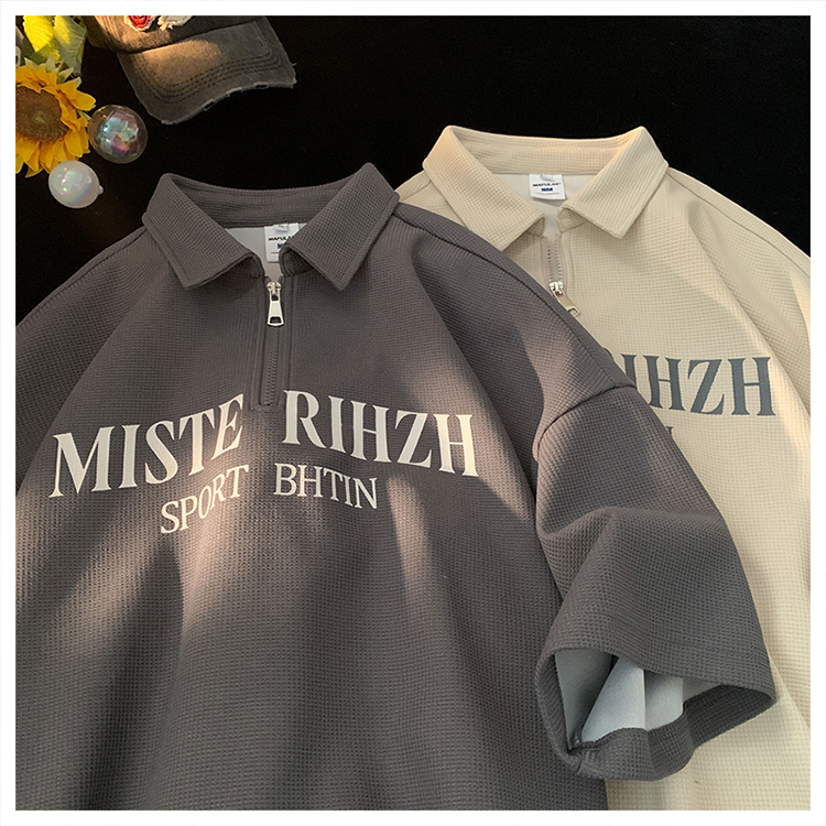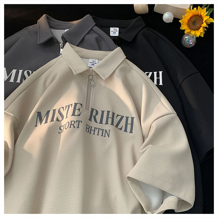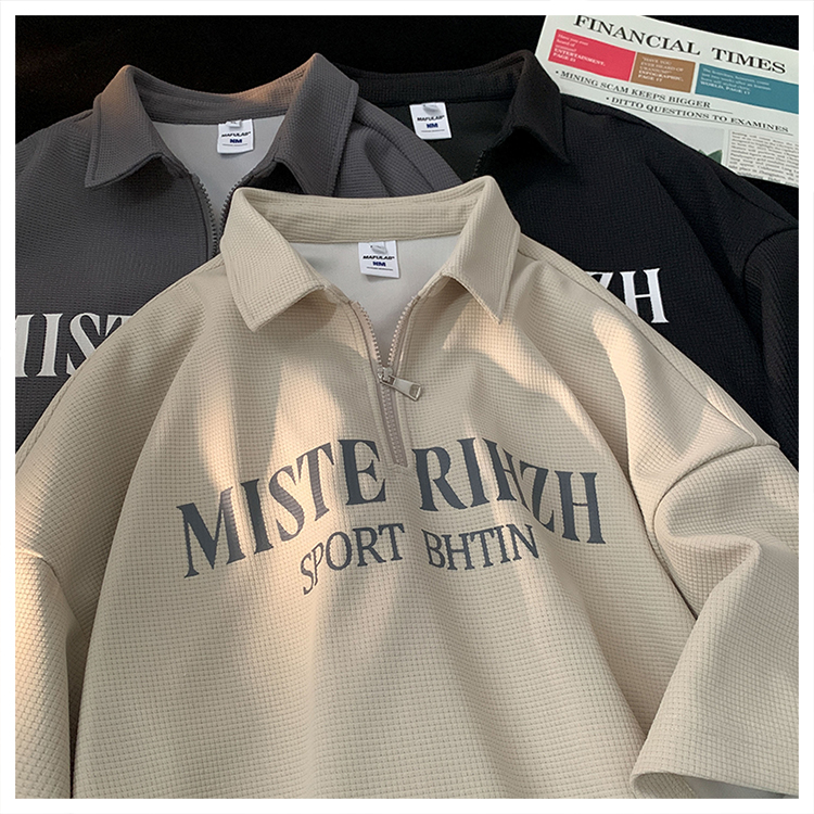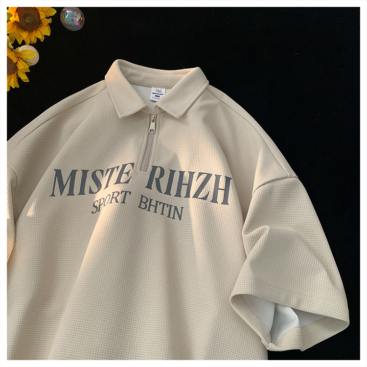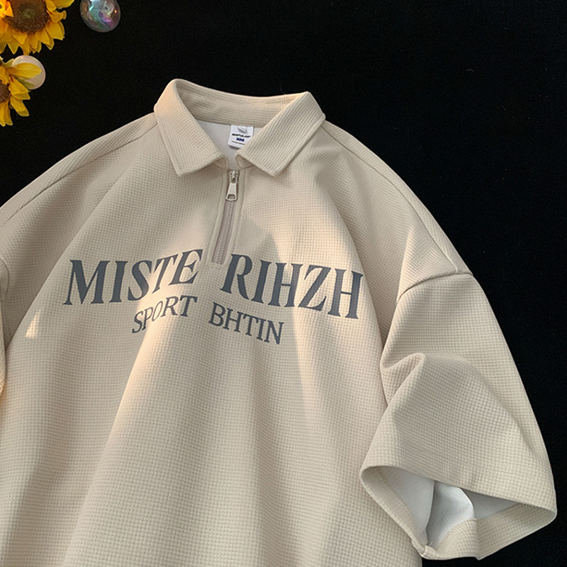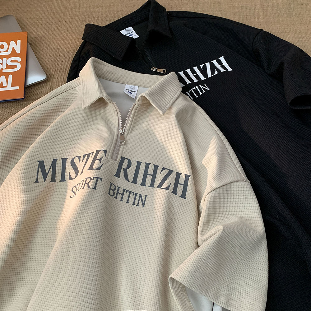 HUIMO 美式復古ins半拉鍊POLO衫短袖男女夏季潮流穿搭半袖T恤衫