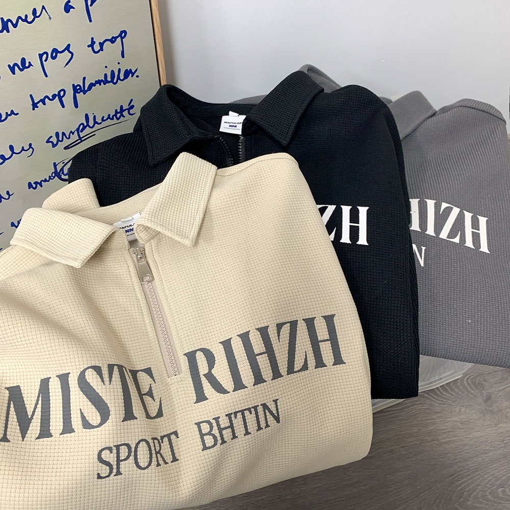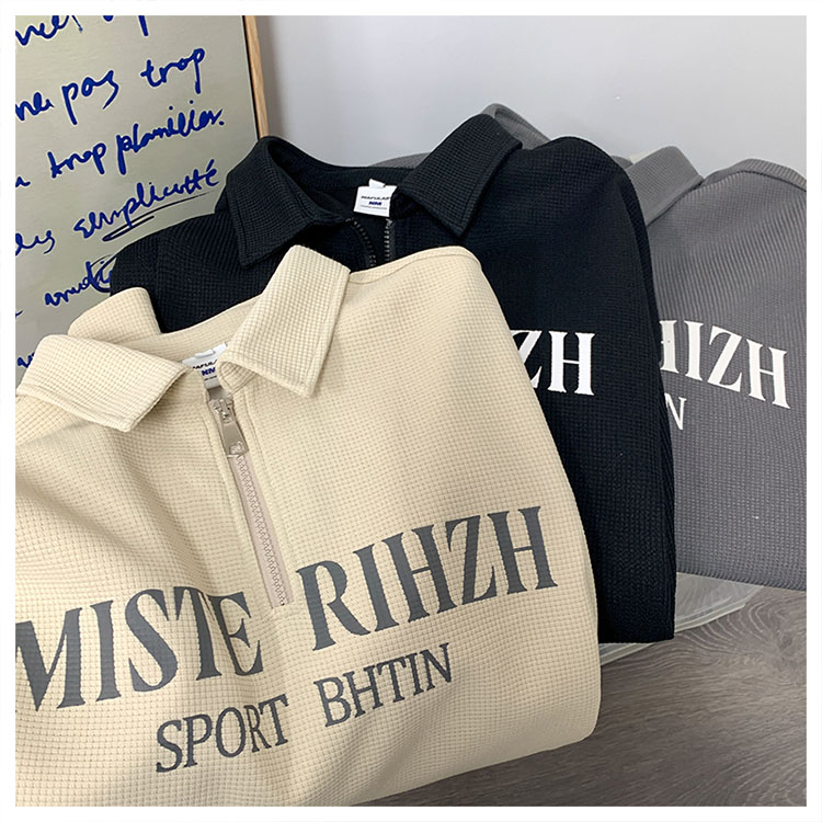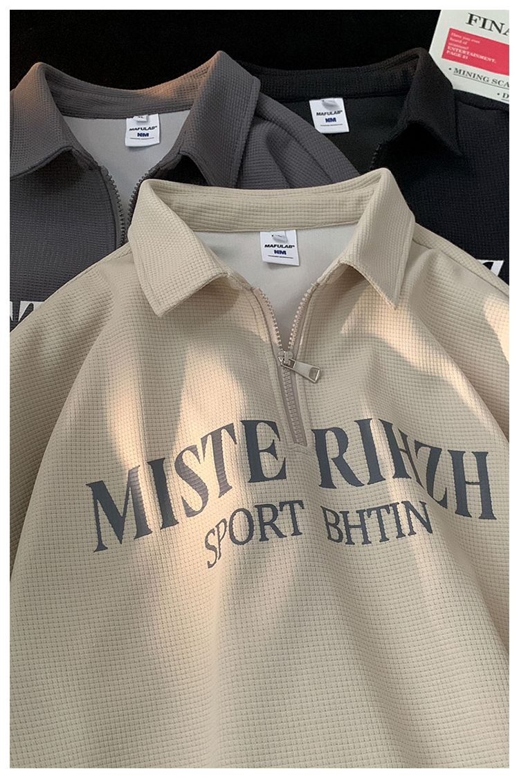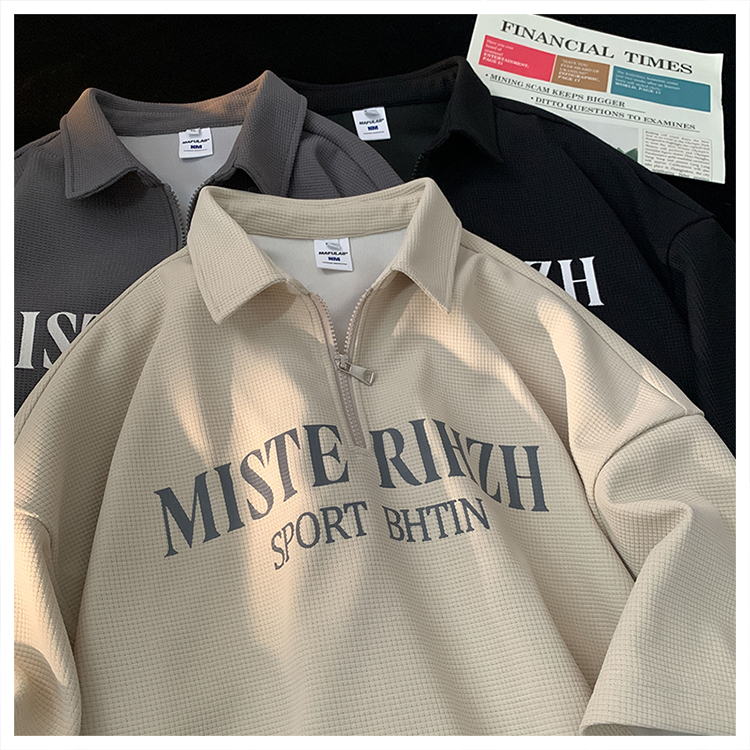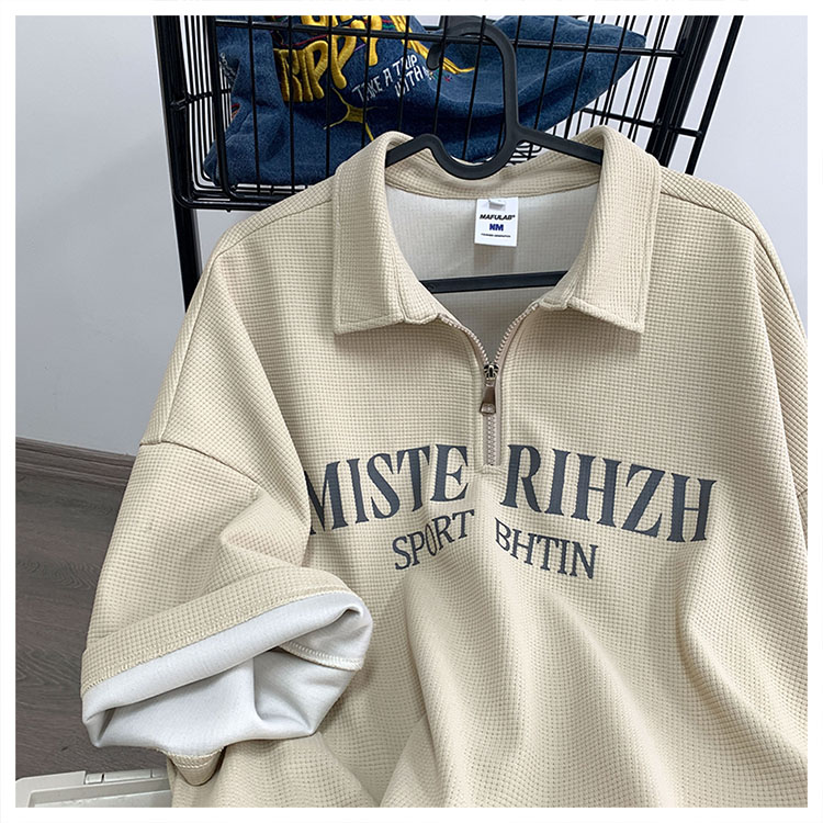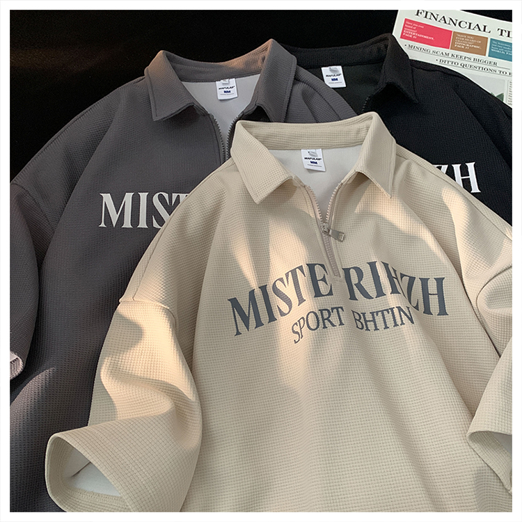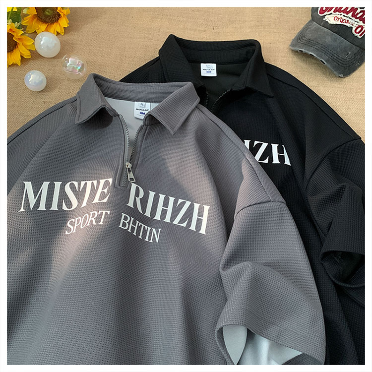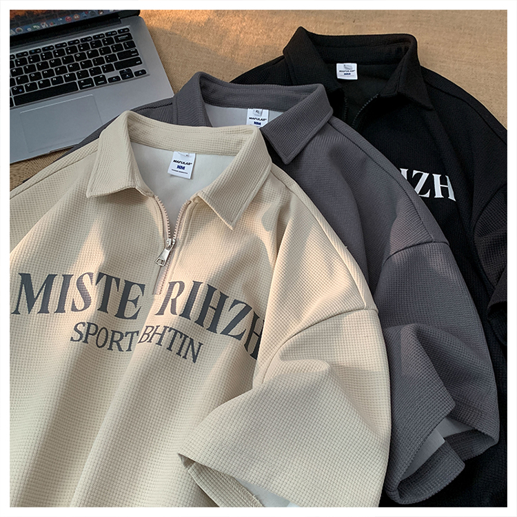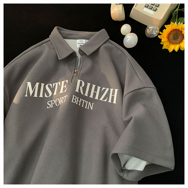 HUIMO 美式復古ins半拉鍊POLO衫短袖男女夏季潮流穿搭半袖T恤衫