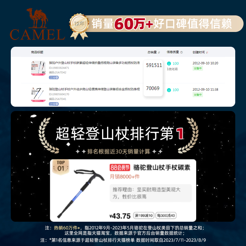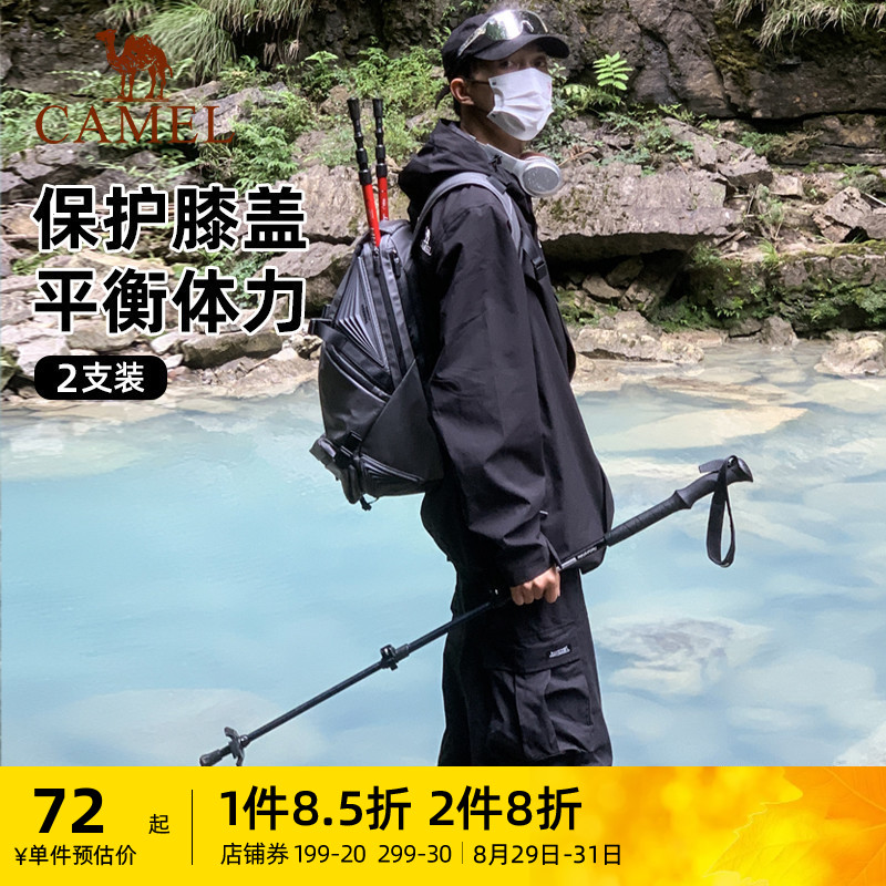 【2支裝】駱駝登山杖碳素輕量伸縮拐扙摺疊防身棍碳纖維行山手杖