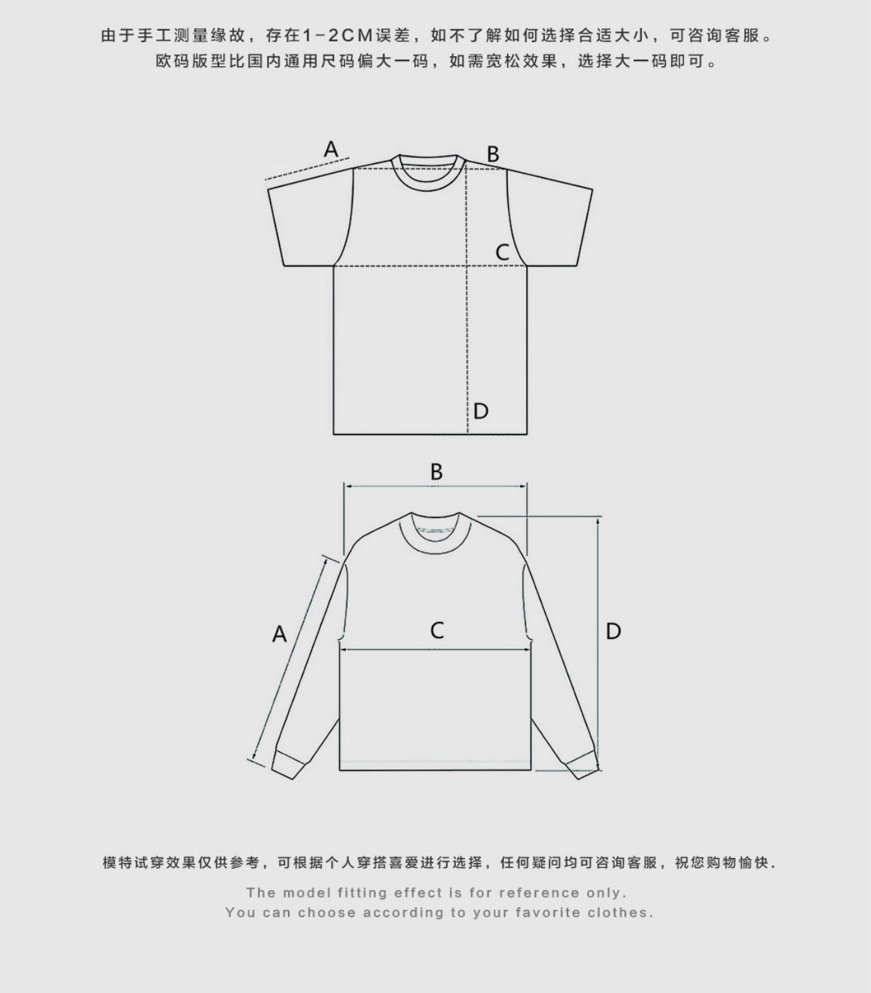 顏色 黑色短袖,黑色長袖,黑色短袖做舊,黑色長袖做舊,白色短袖,白色長袖