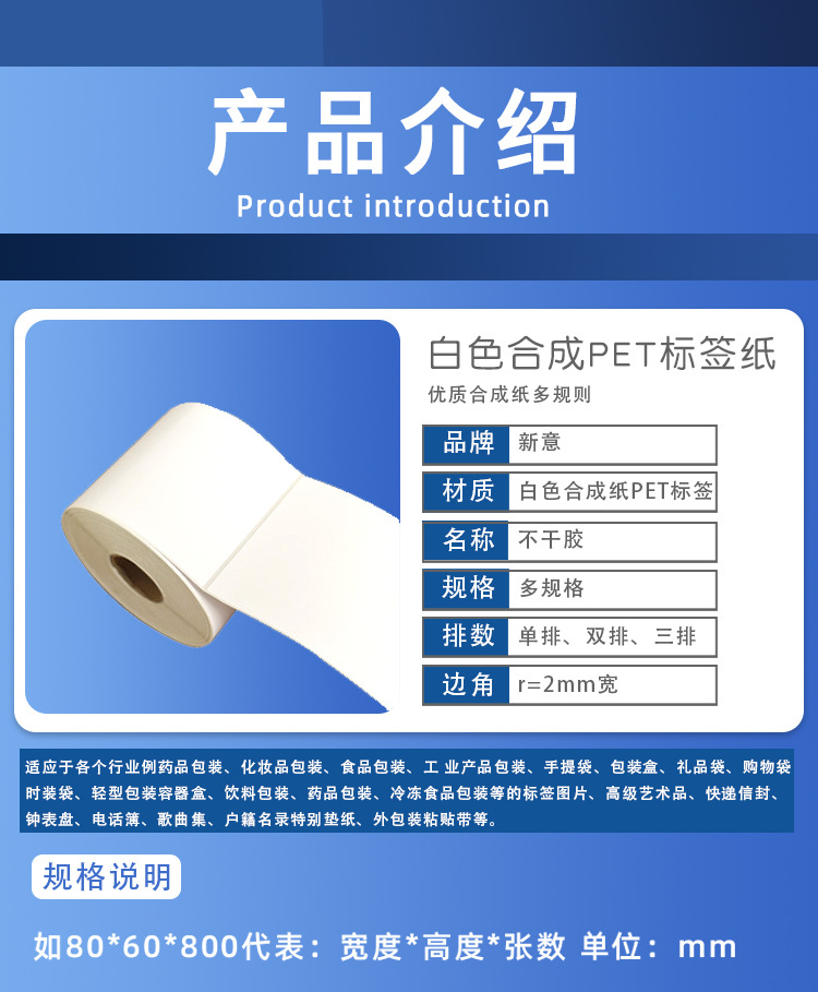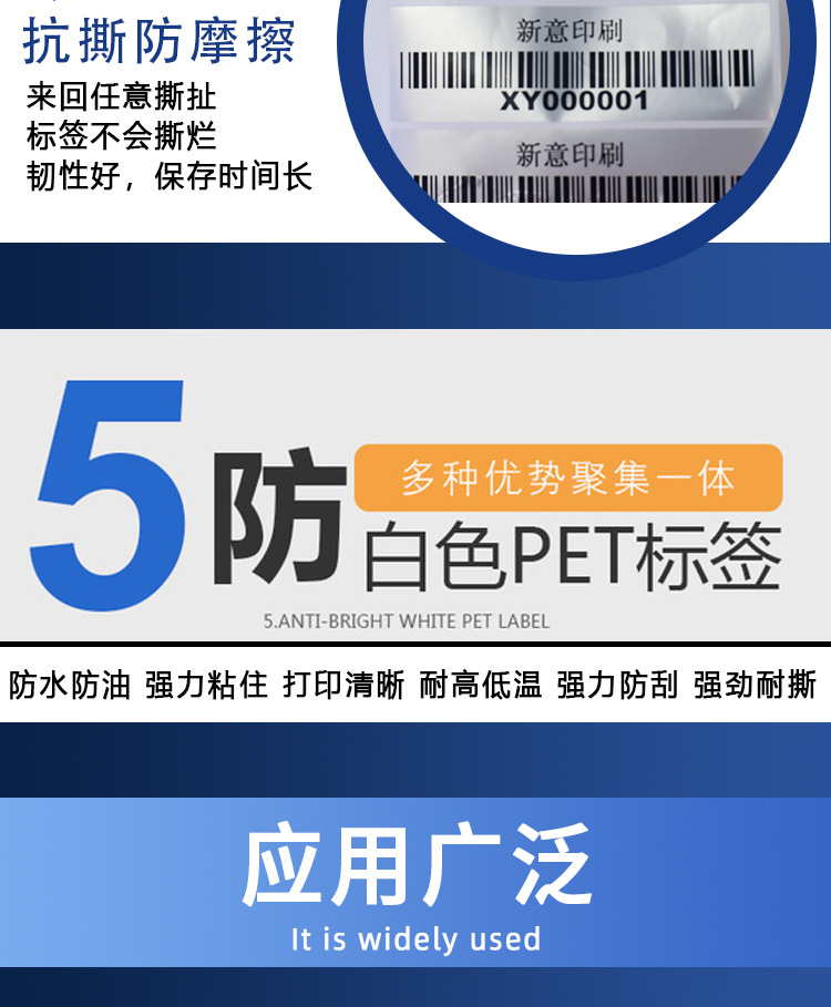 空白不干胶标签纸 防水防油撕不烂PVC合成纸标签PET条码纸打印纸