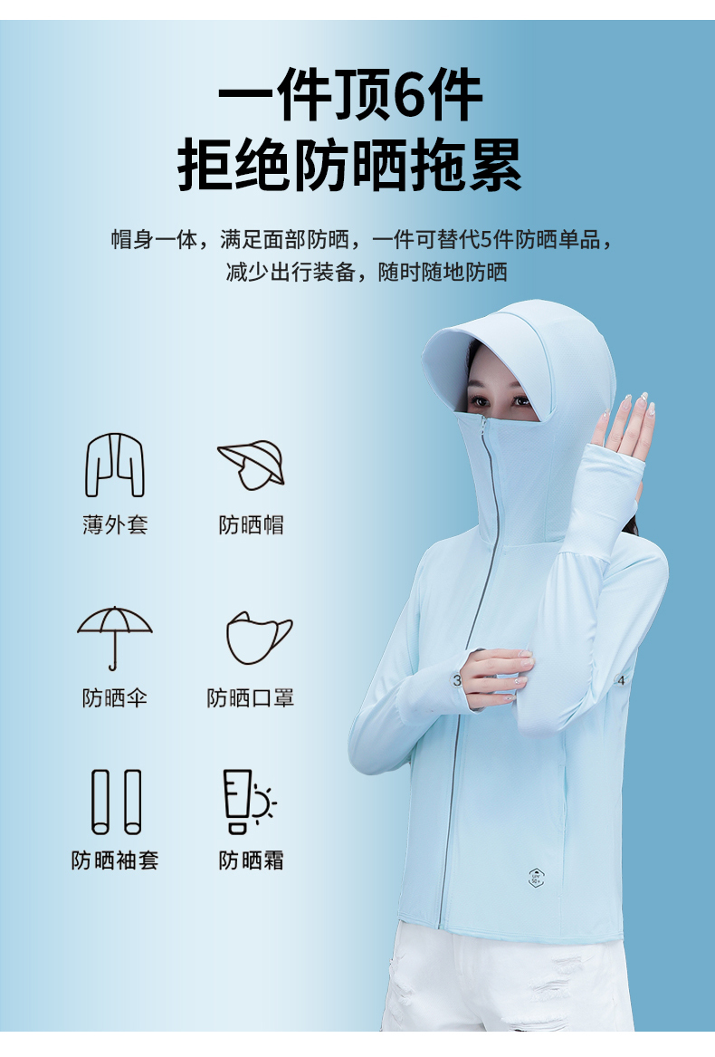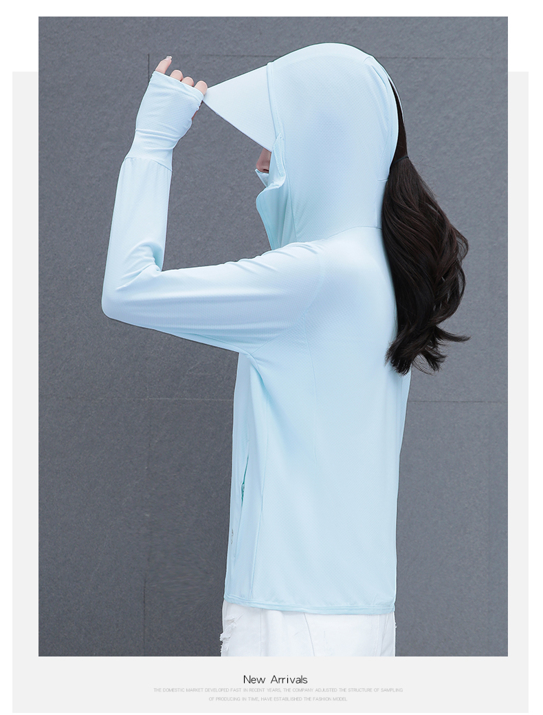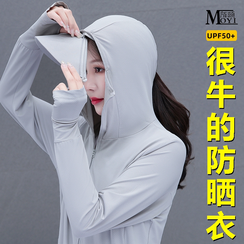 UPF50+冰絲夏季防曬衣女戶外輕薄款抗UV防曬服皮膚外套大帽簷