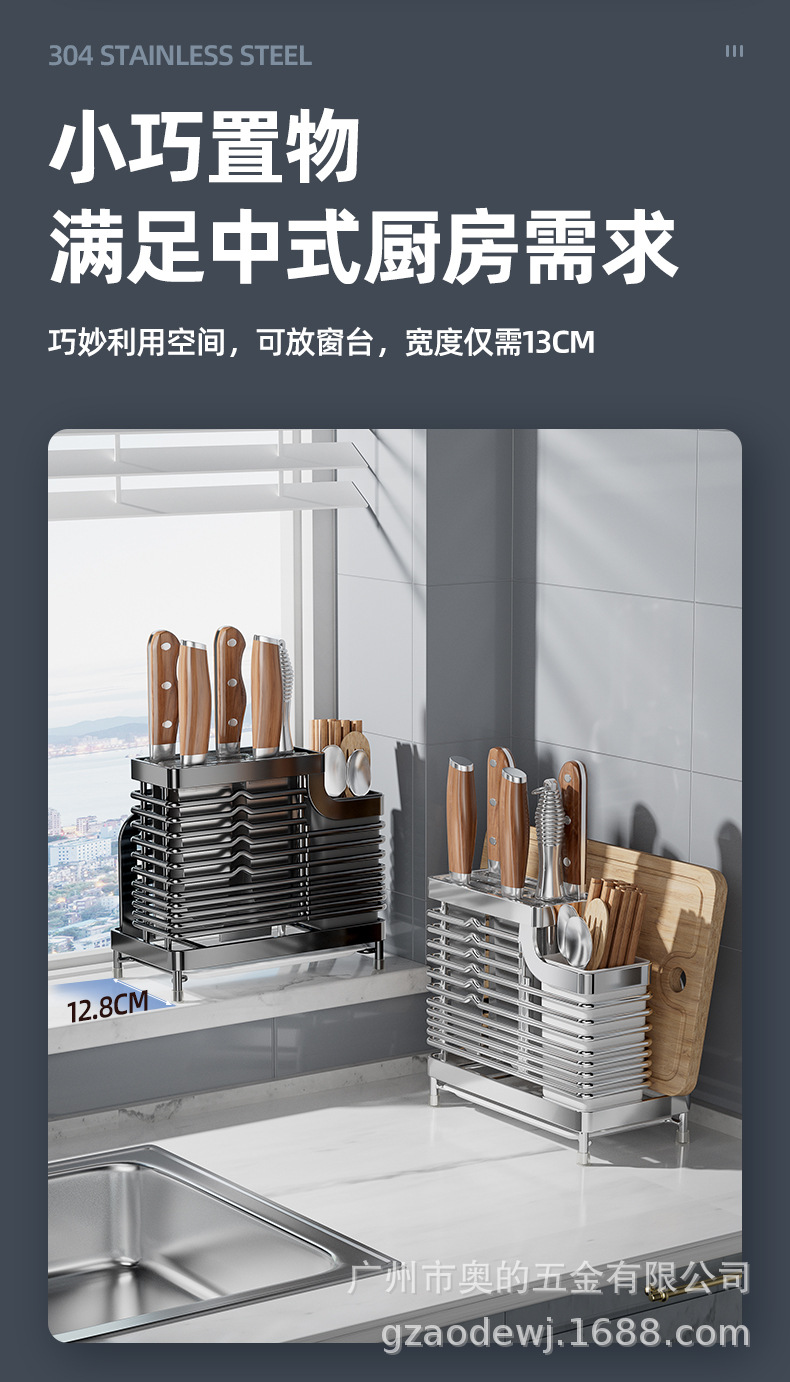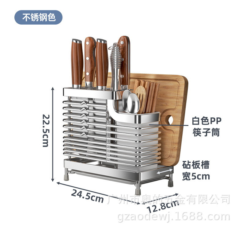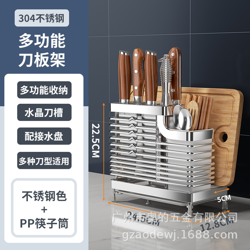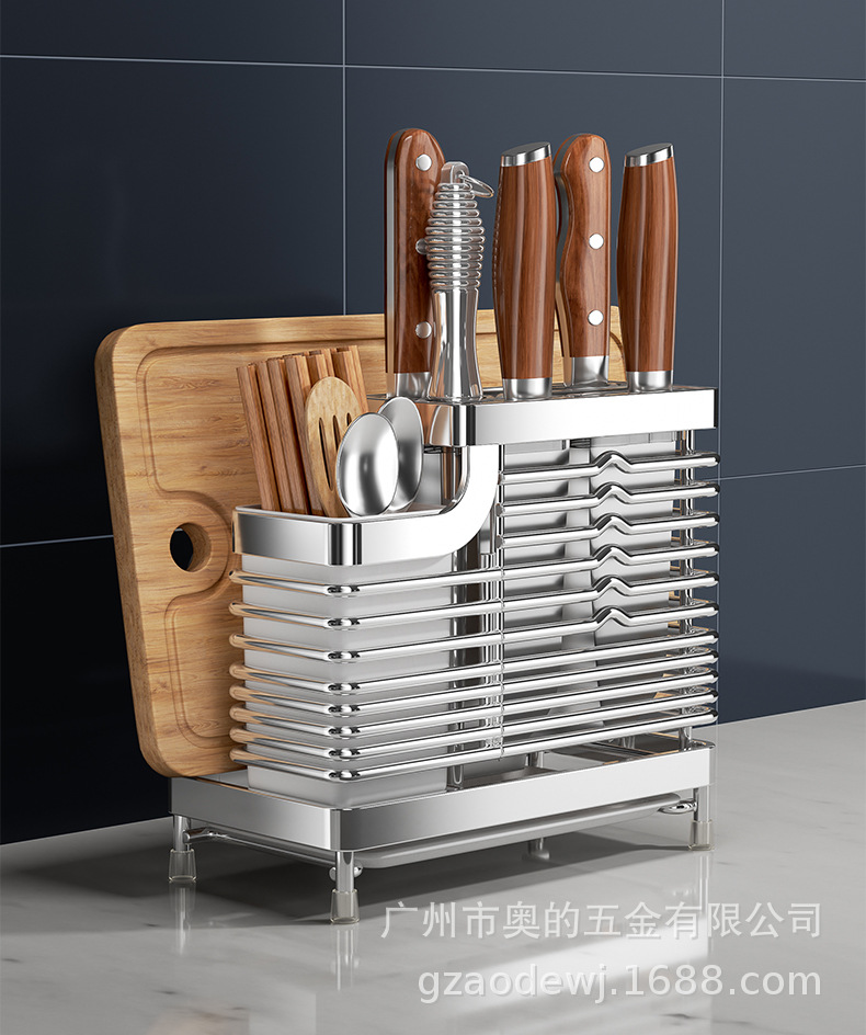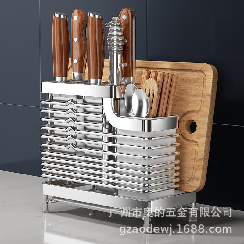 奥的304不锈钢刀架厨房用品筷子筒刀座筷笼一体多功能菜刀收纳架