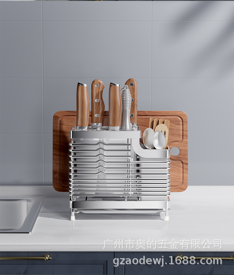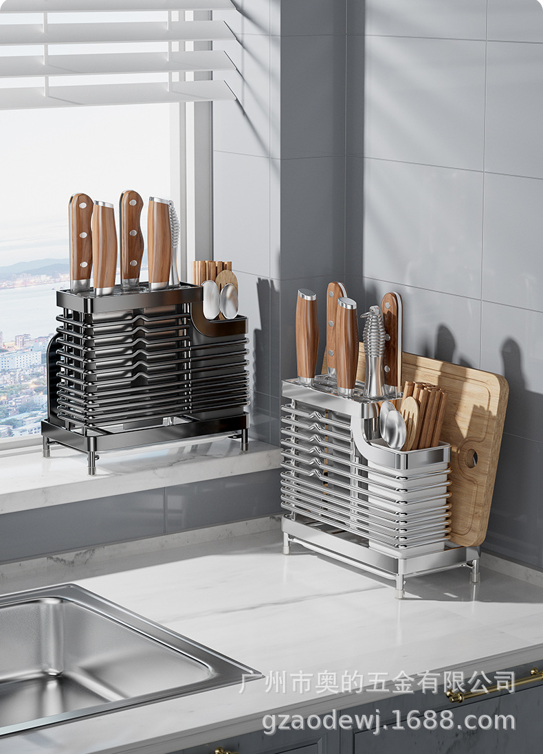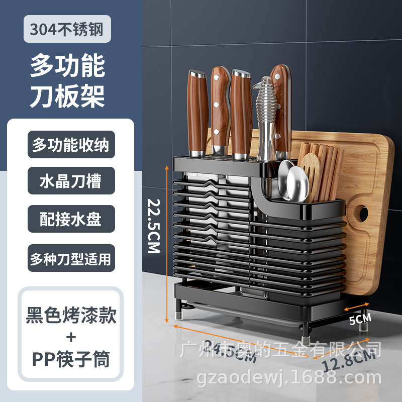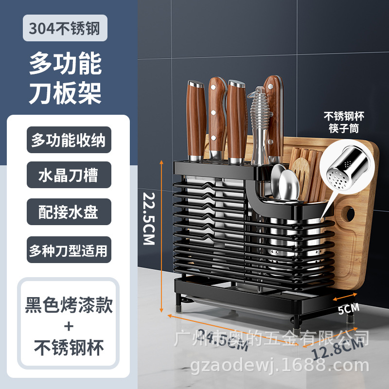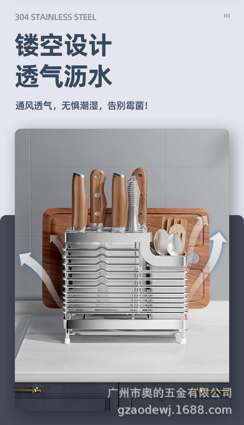 奥的304不锈钢刀架厨房用品筷子筒刀座筷笼一体多功能菜刀收纳架