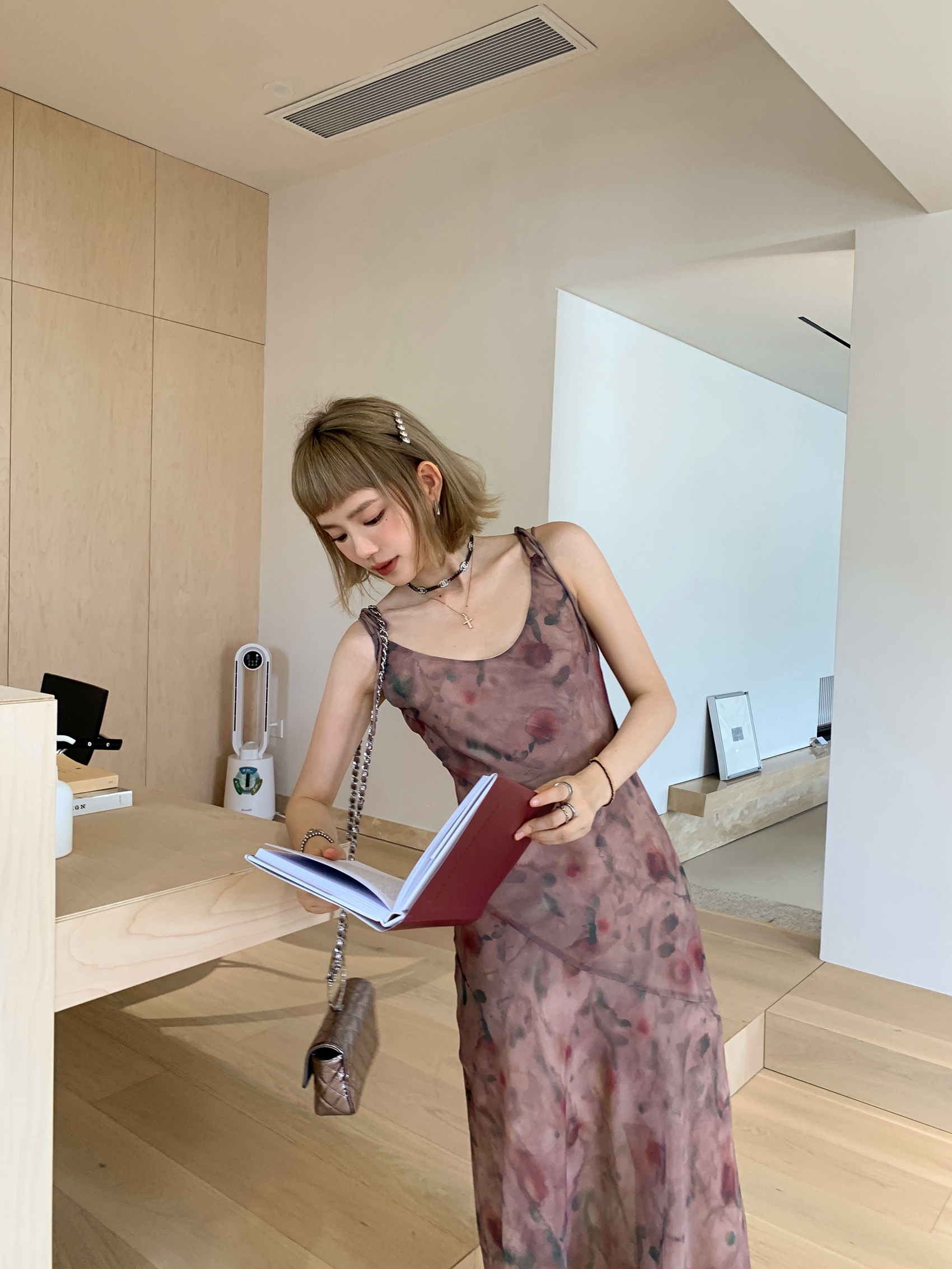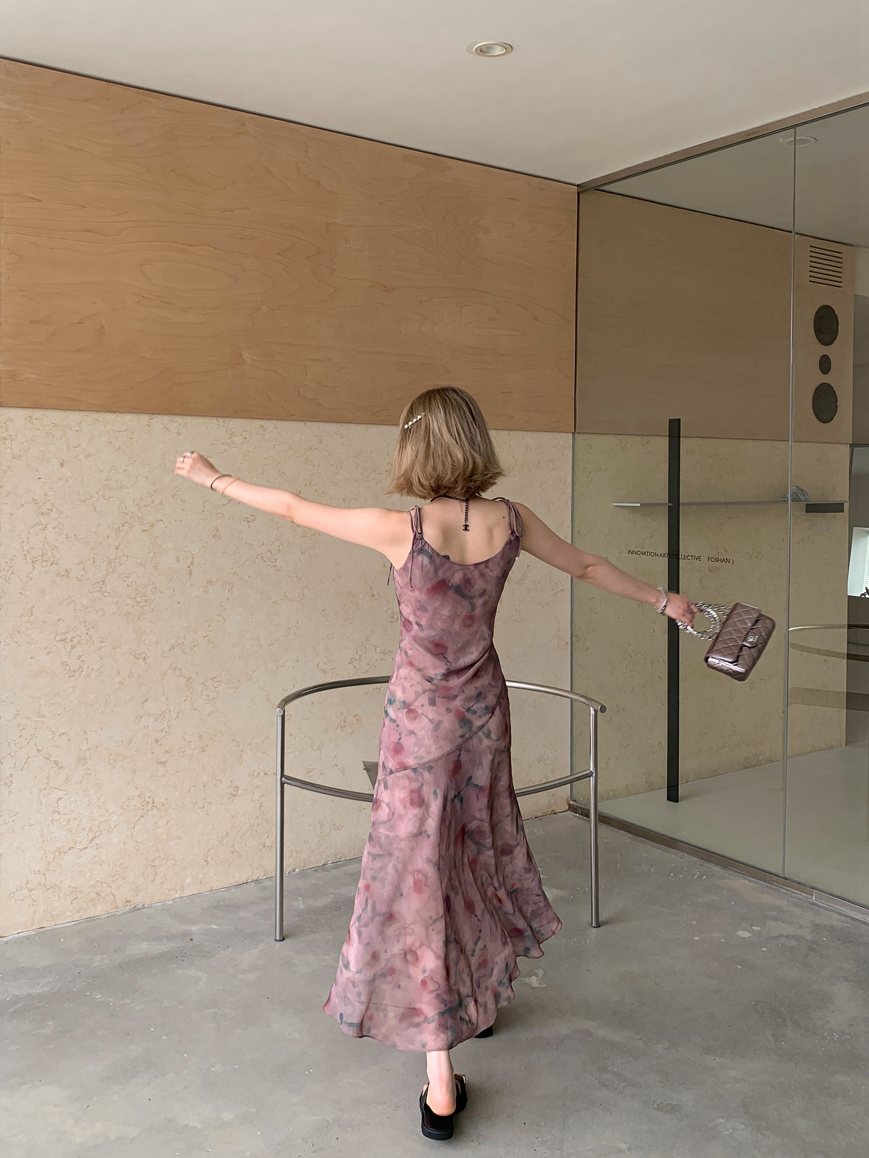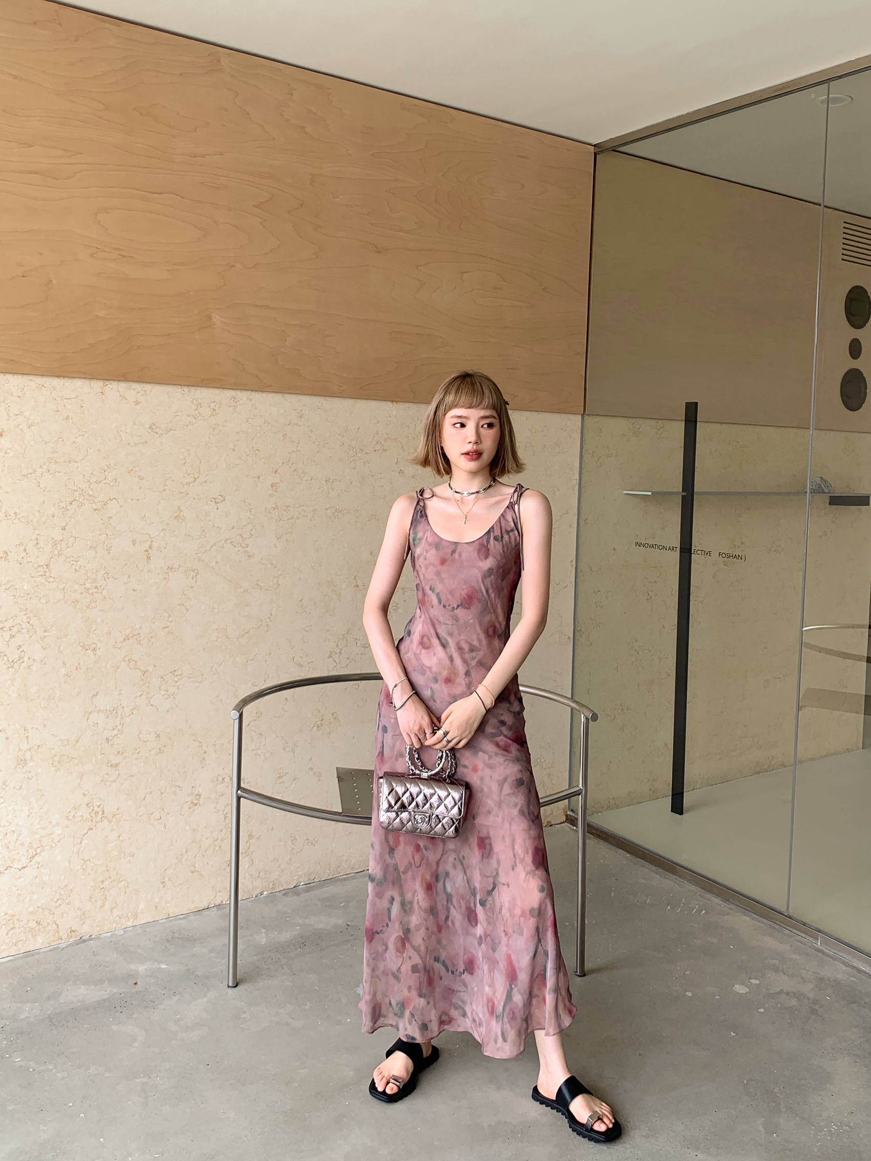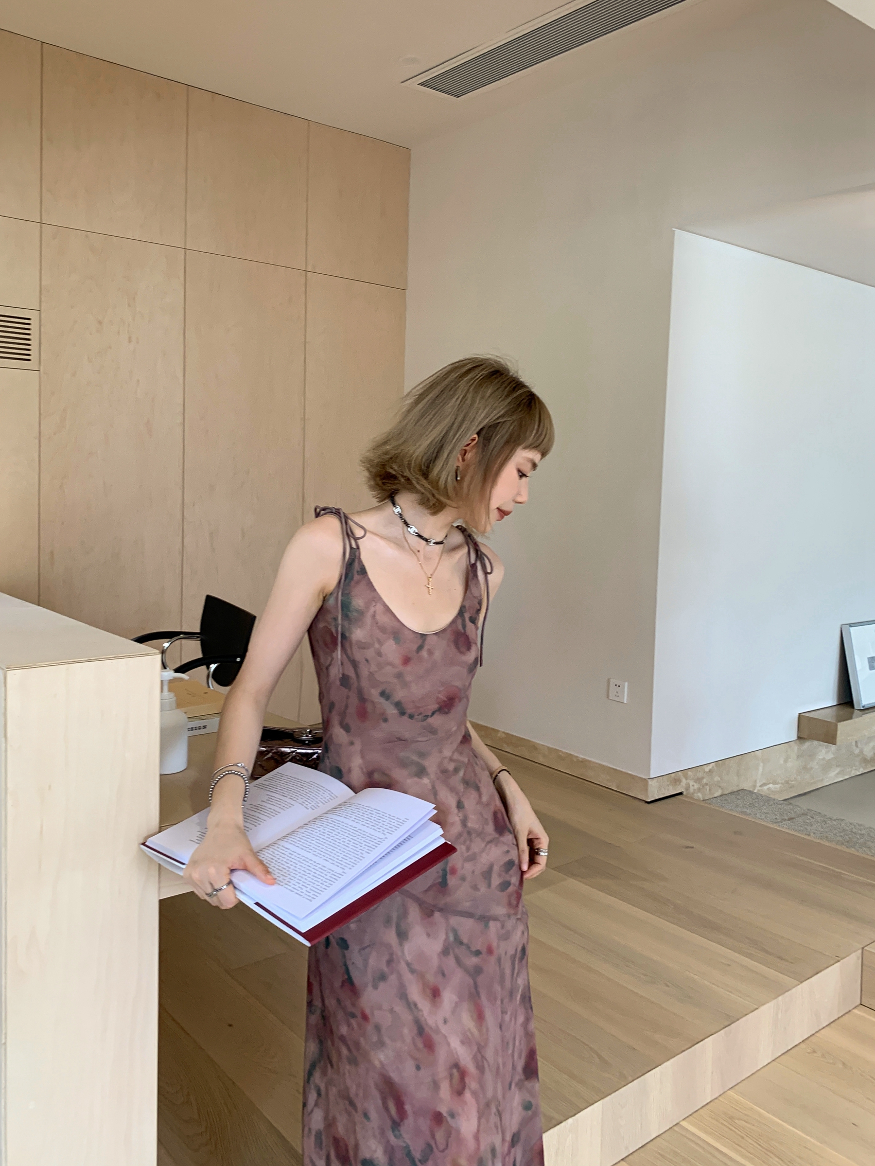 Echoes 「夏日邂逅」暈染印花吊帶洋裝女雪紡收腰修身顯瘦長裙