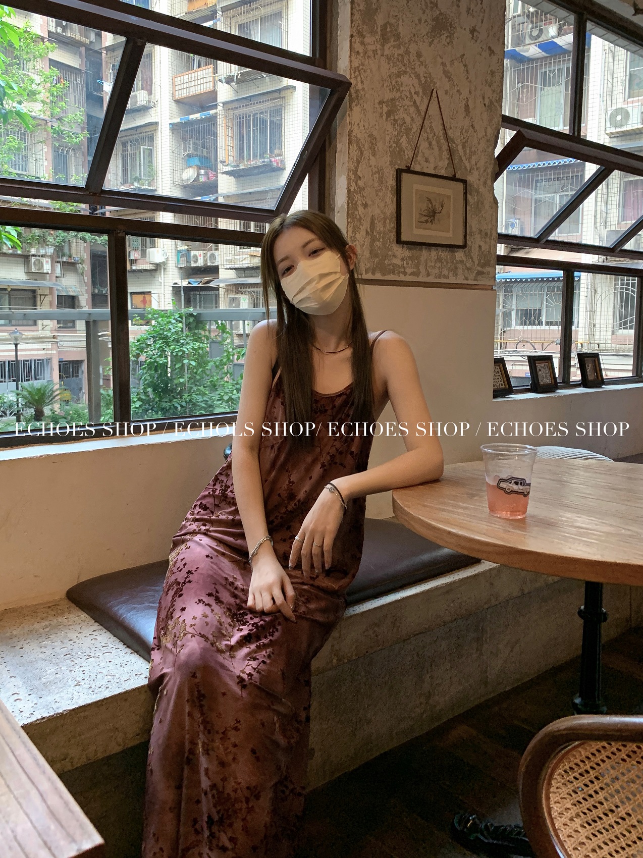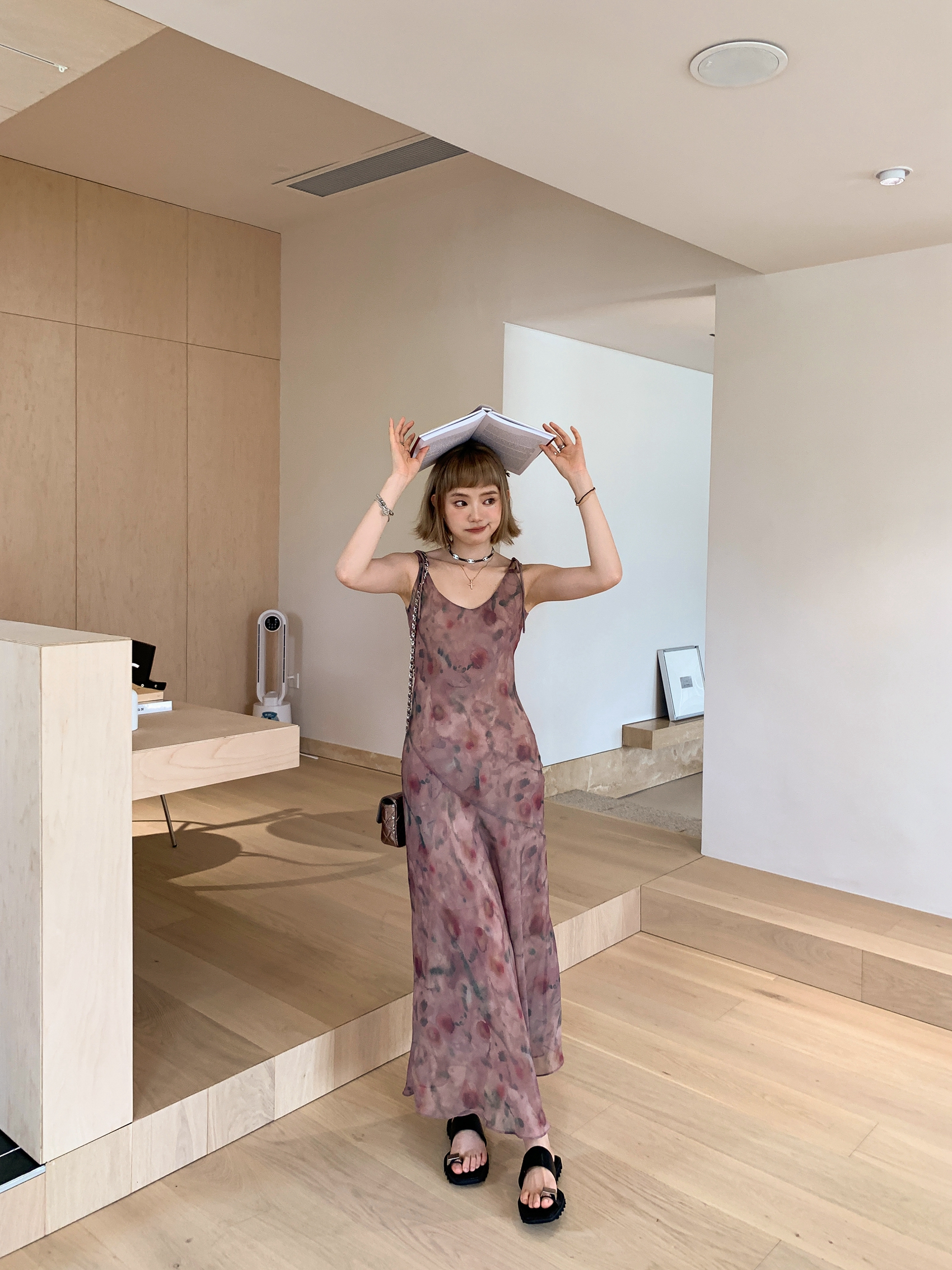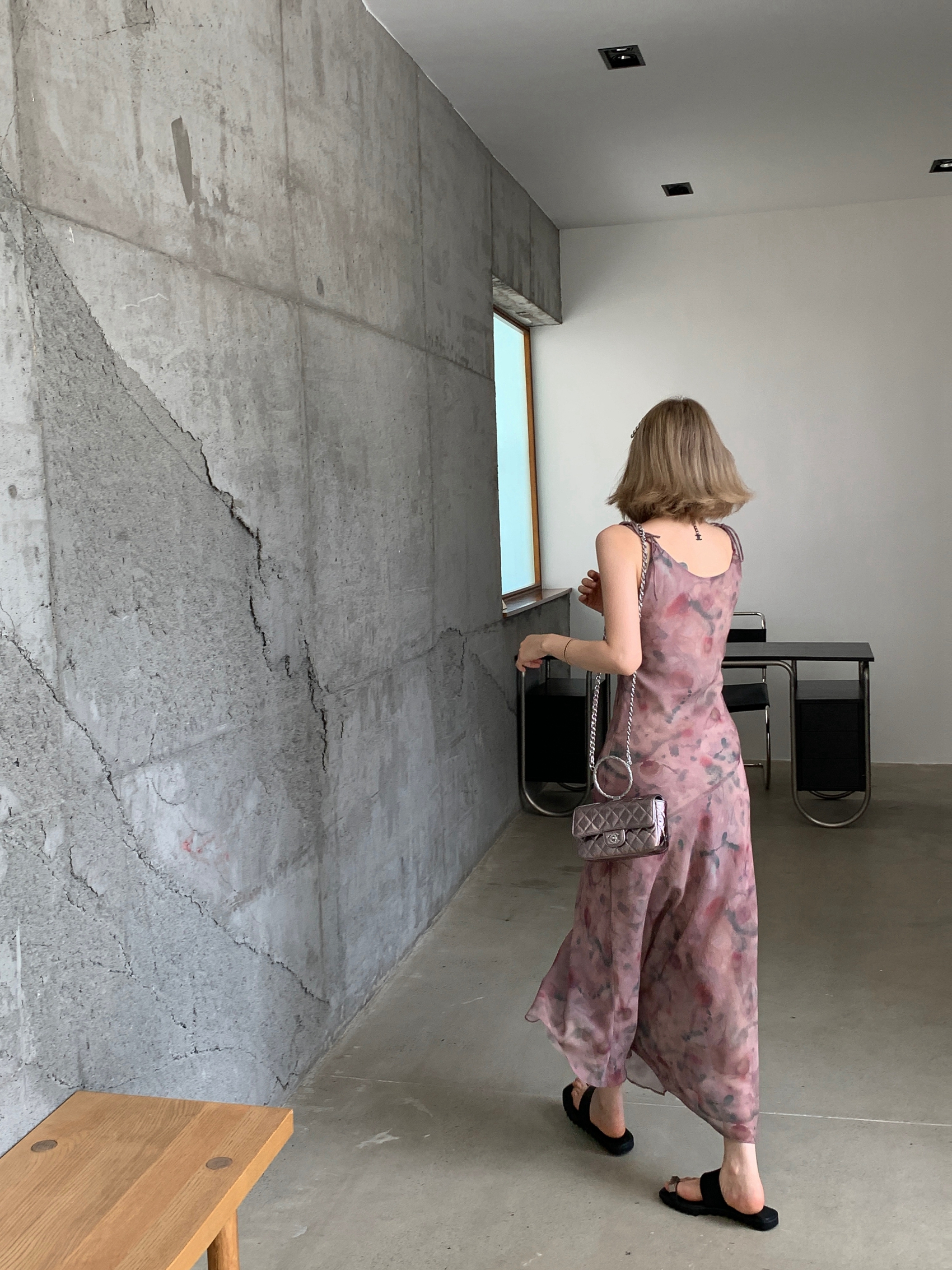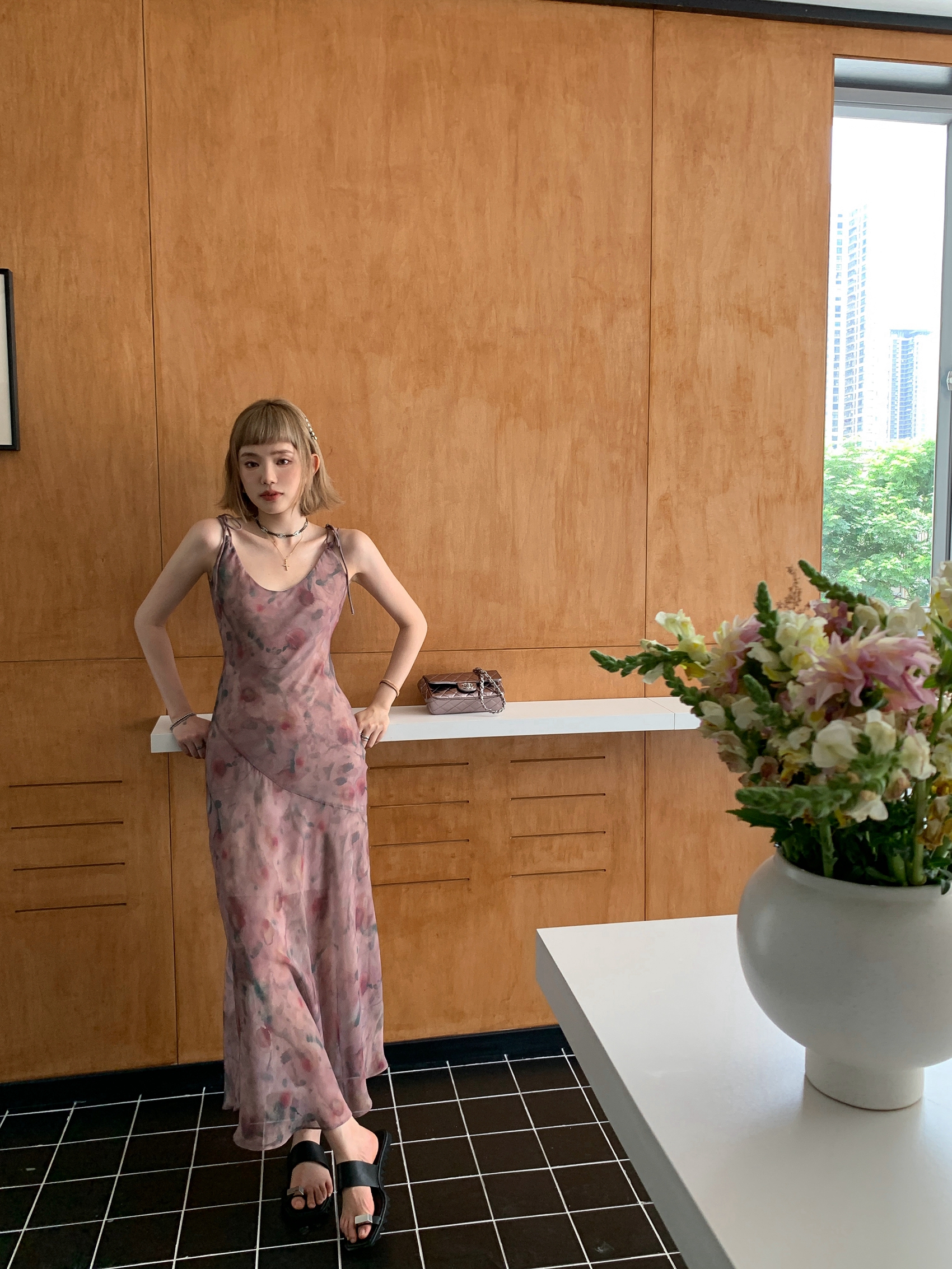 Echoes 「夏日邂逅」暈染印花吊帶洋裝女雪紡收腰修身顯瘦長裙