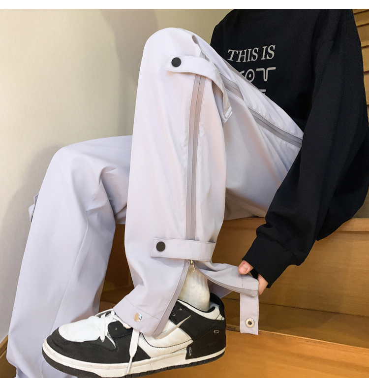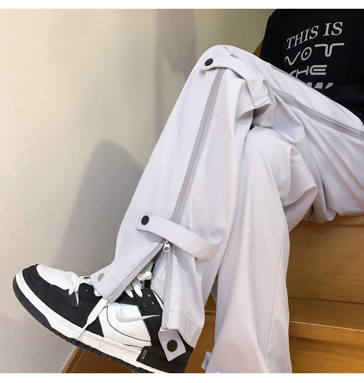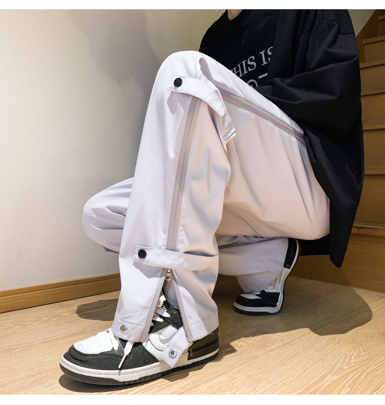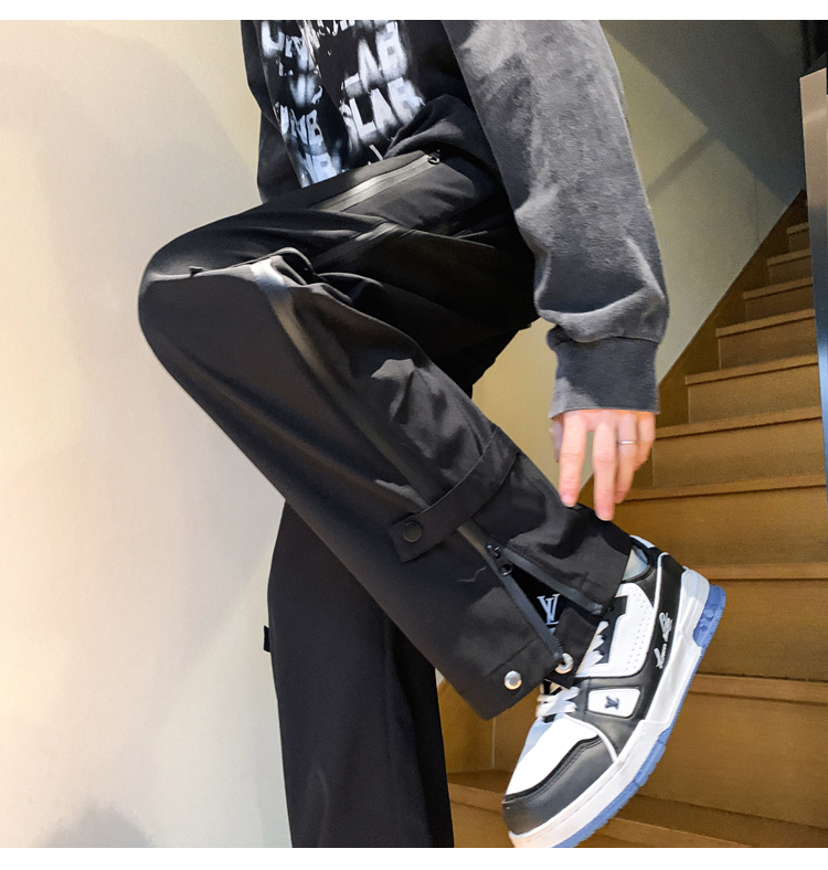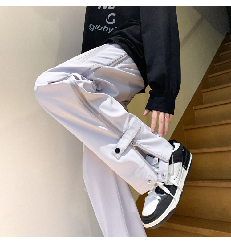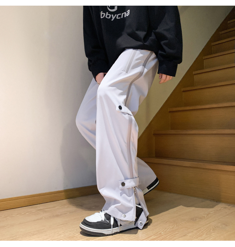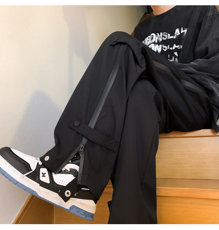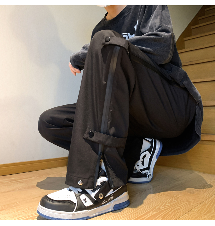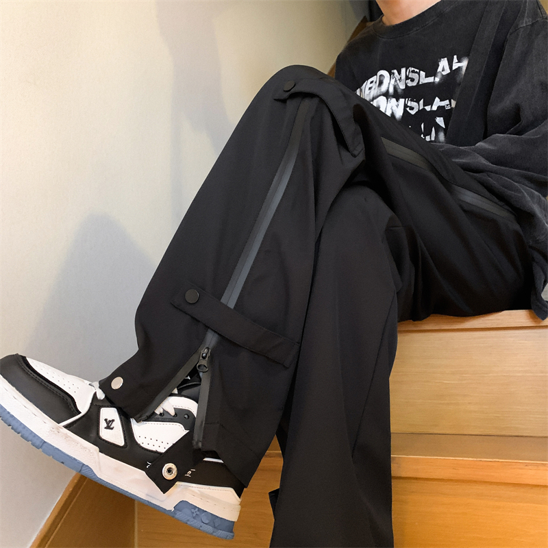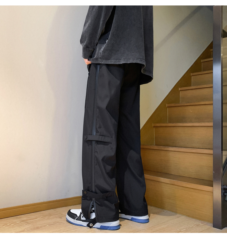 美式機能防水衝鋒褲女夏季拉鍊設計開叉直筒休閒百搭潮牌高街褲子