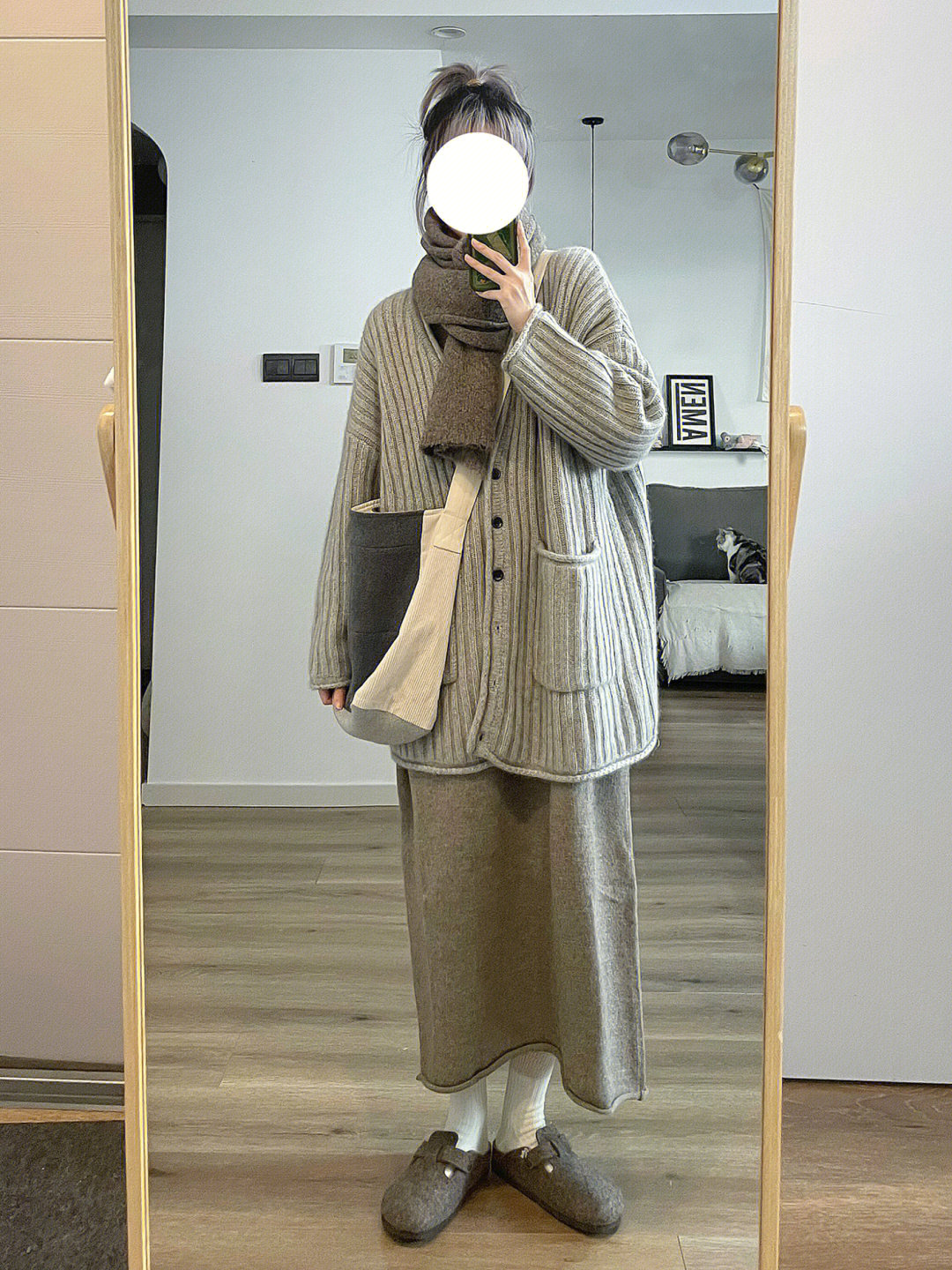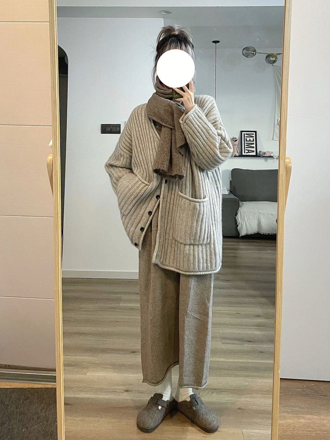 韓系溫柔軟糯毛衣女日系復古vintage坑條大口袋慵懶風bf針織開衫