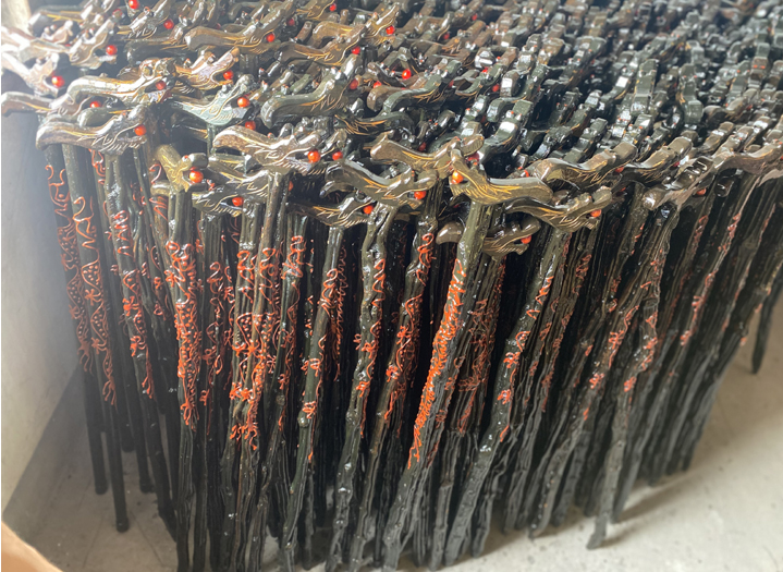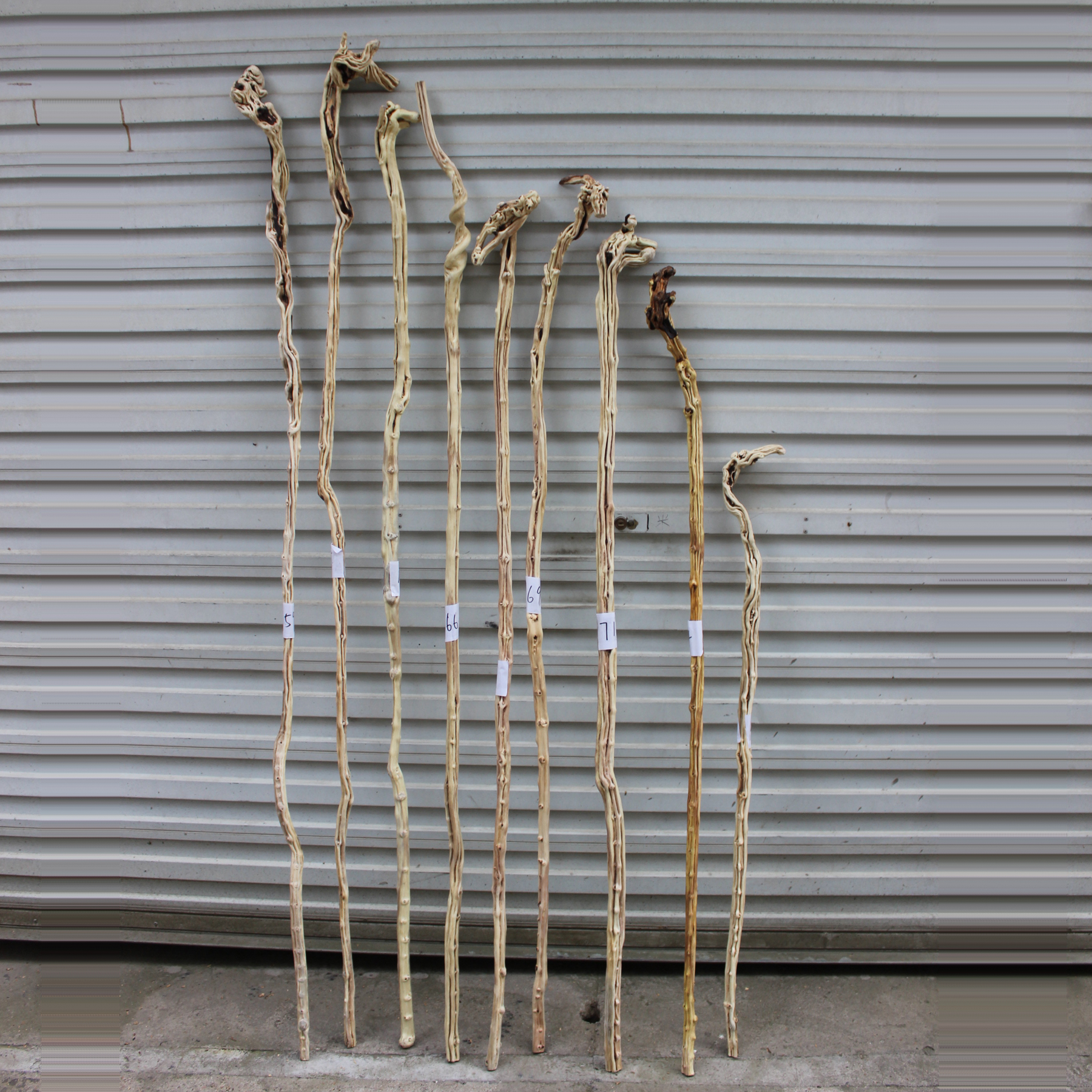 取材于大自然的山林中,受日、月、雨、雾数十载育成,具有盘根错节,多钉刺、硬、韧、有弹性,天然形态各异万千。丛中择优而得稀罕的奇藤木。经汤(防蛀)、火(定形)、檫(光滑)纯手工制作