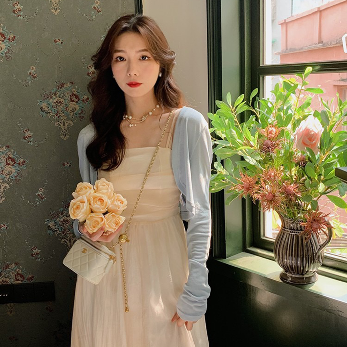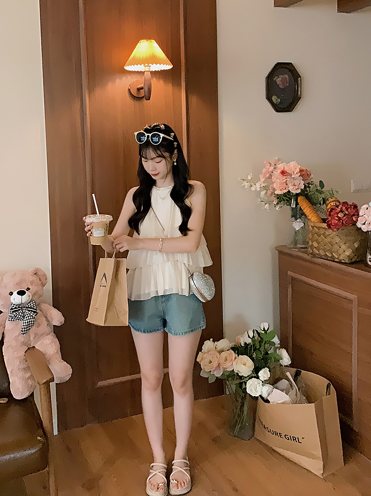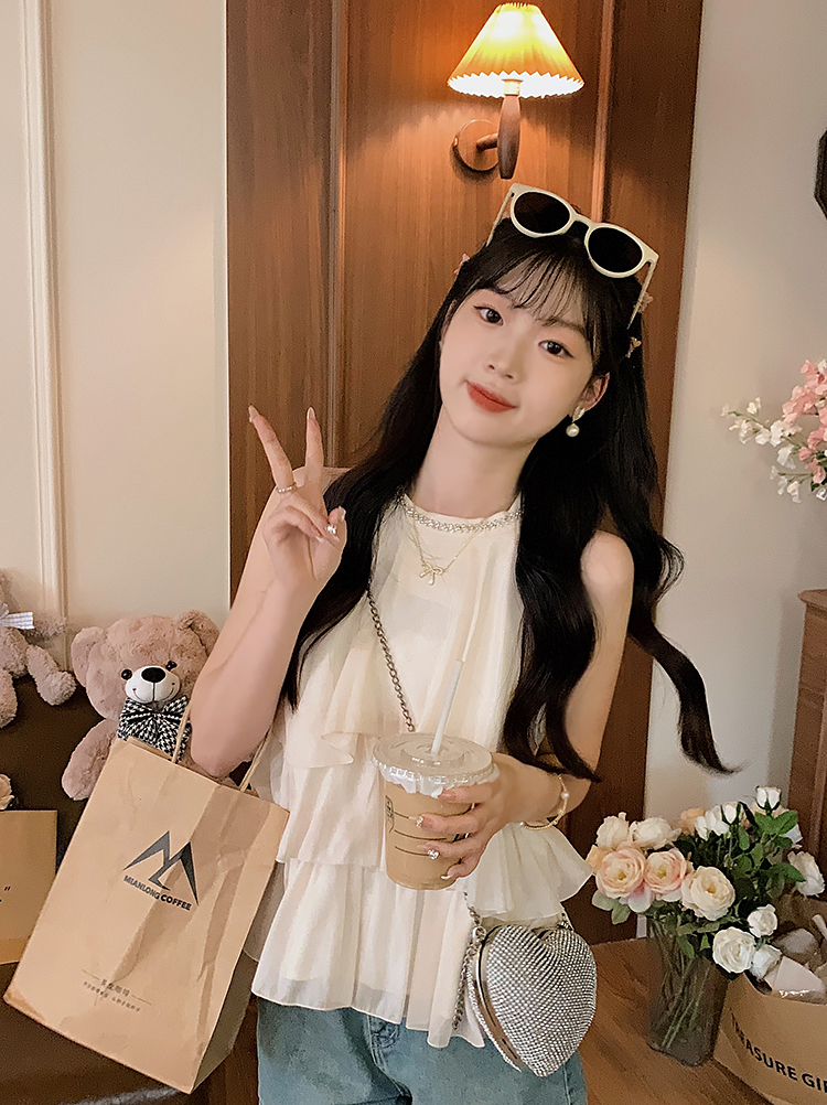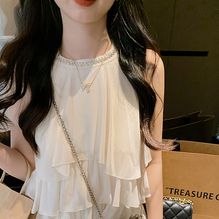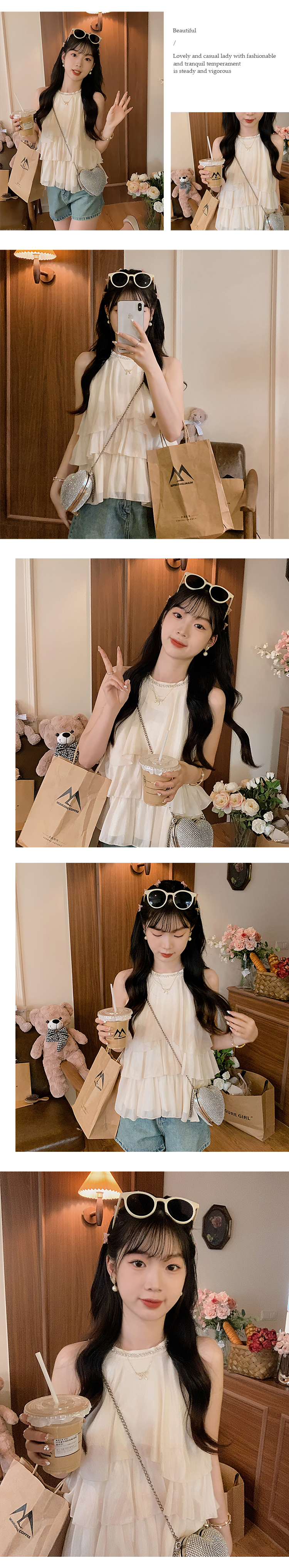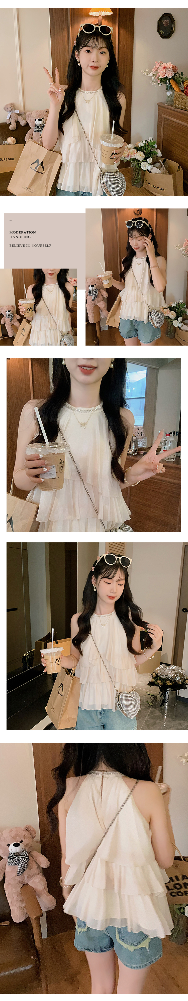 安璃 ANLI 精緻水鑽掛頸露肩仙氣蛋糕襯衫時髦百搭甜美氣質上衣