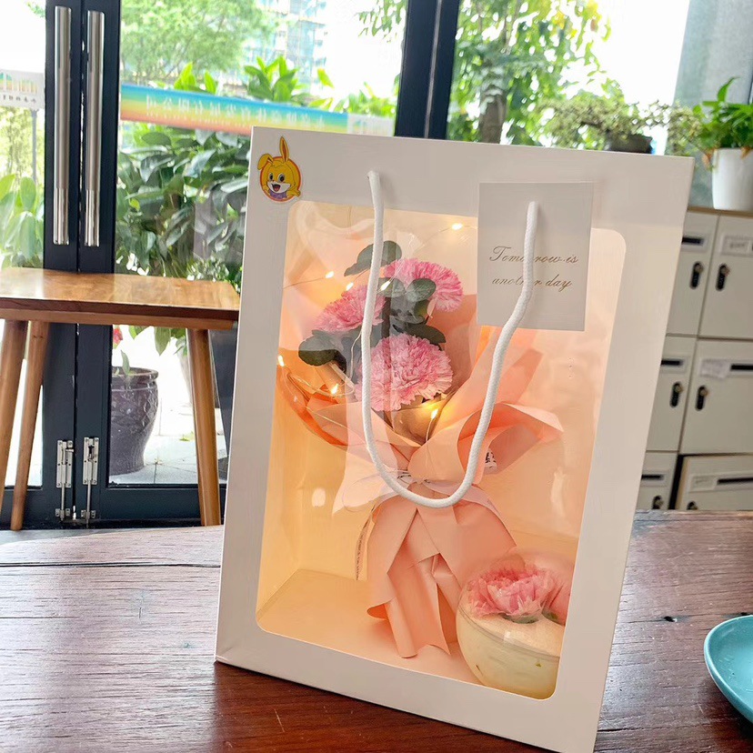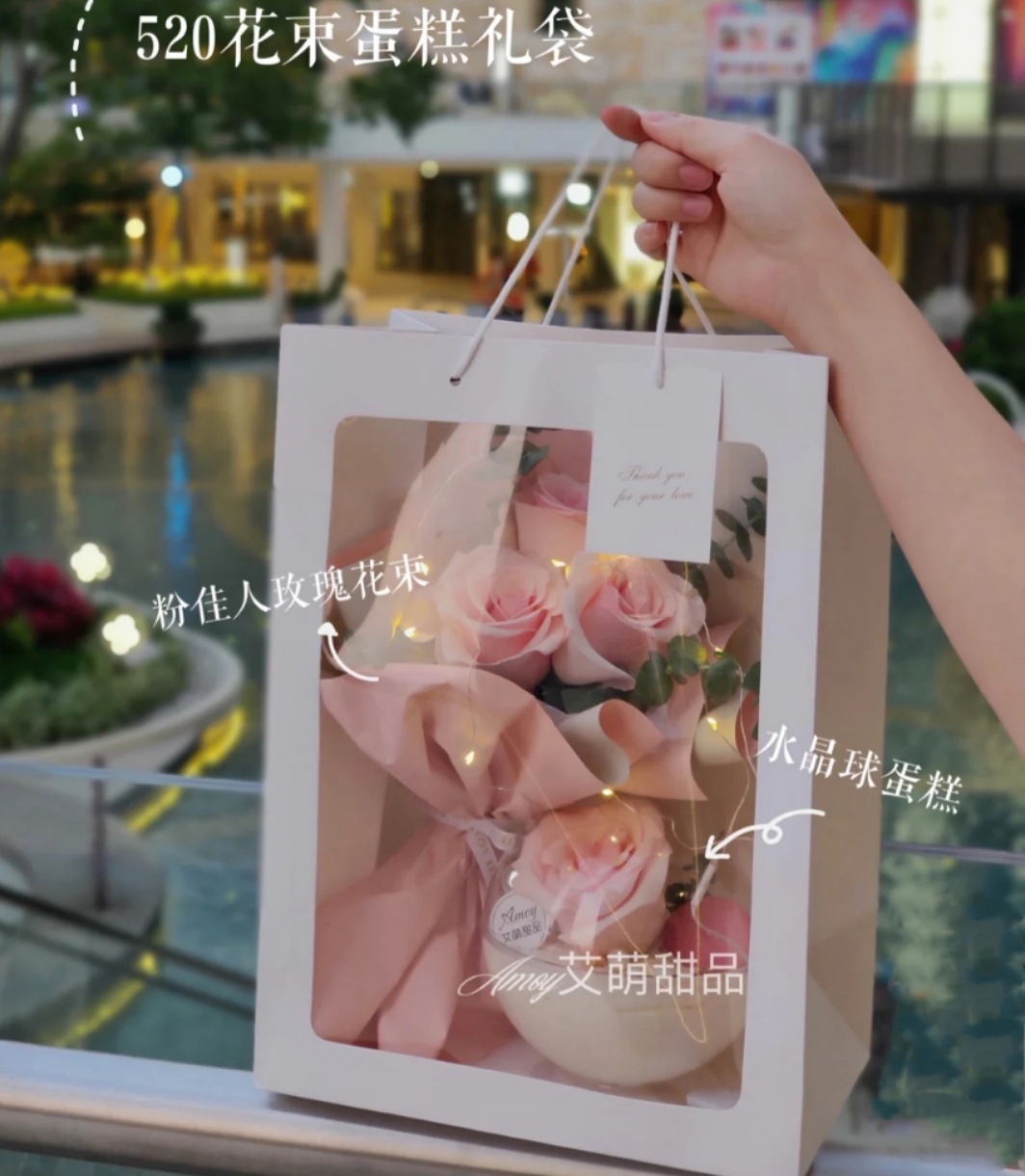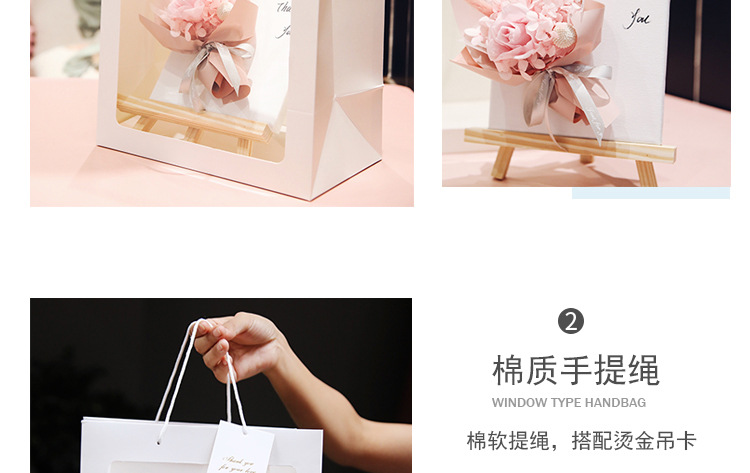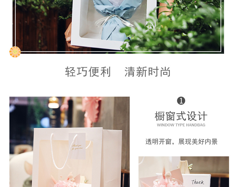 透明橱窗手提袋花店花束包装袋网红ins开窗袋情人节糖果袋 礼品袋