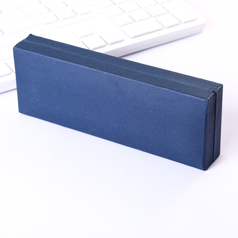 蓝色商务钢笔盒纸质包装盒可印刷logo礼品盒绒布笔盒签字笔文具盒