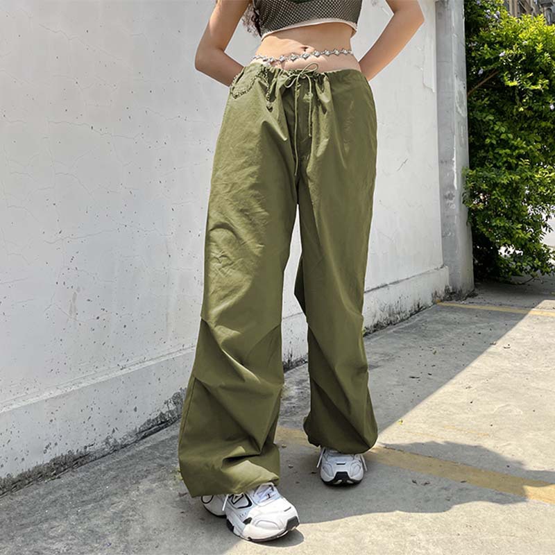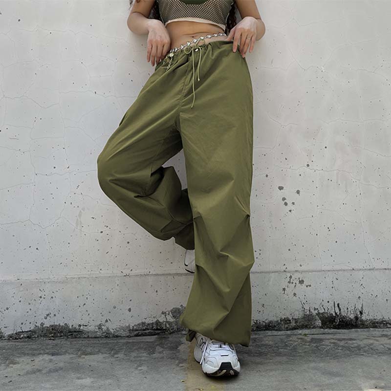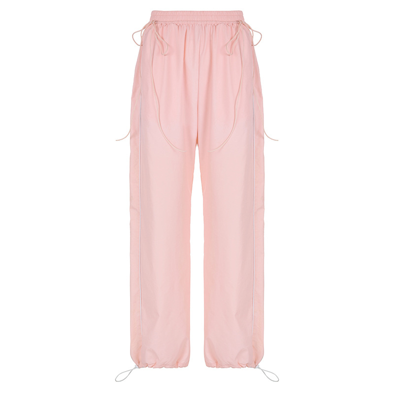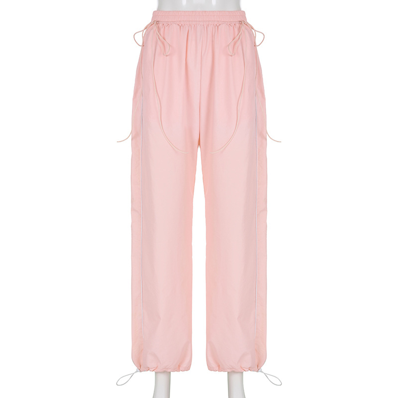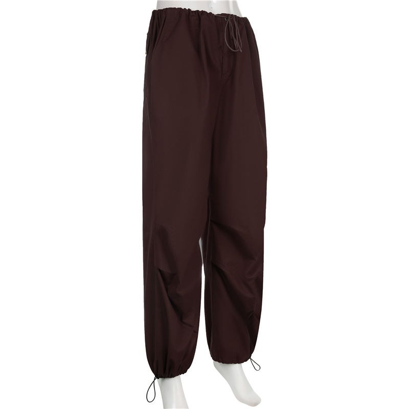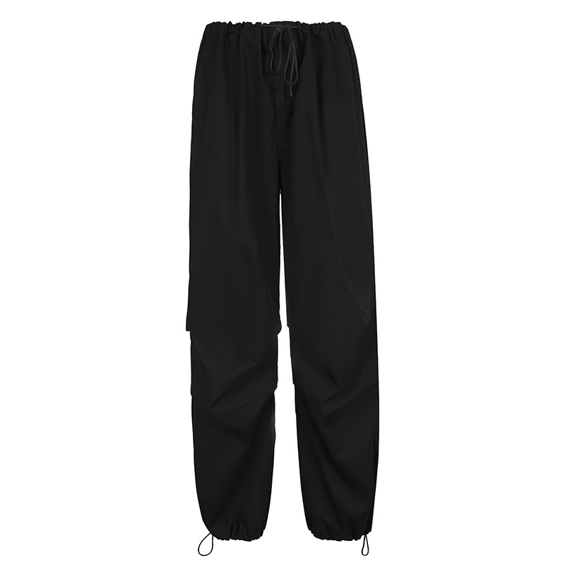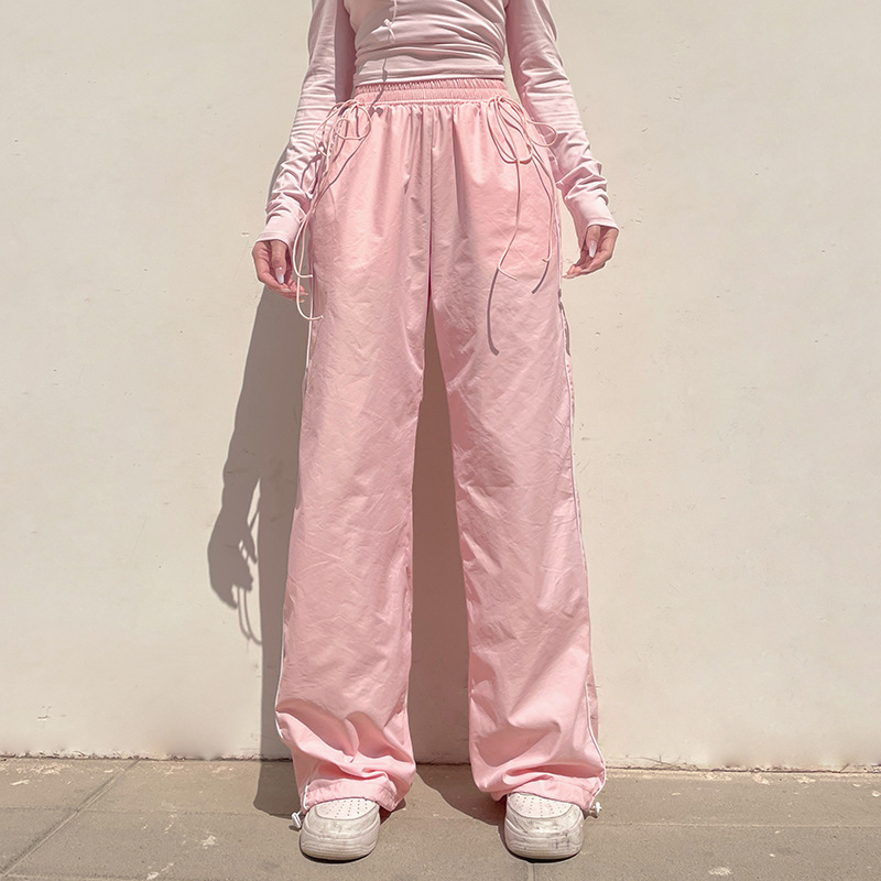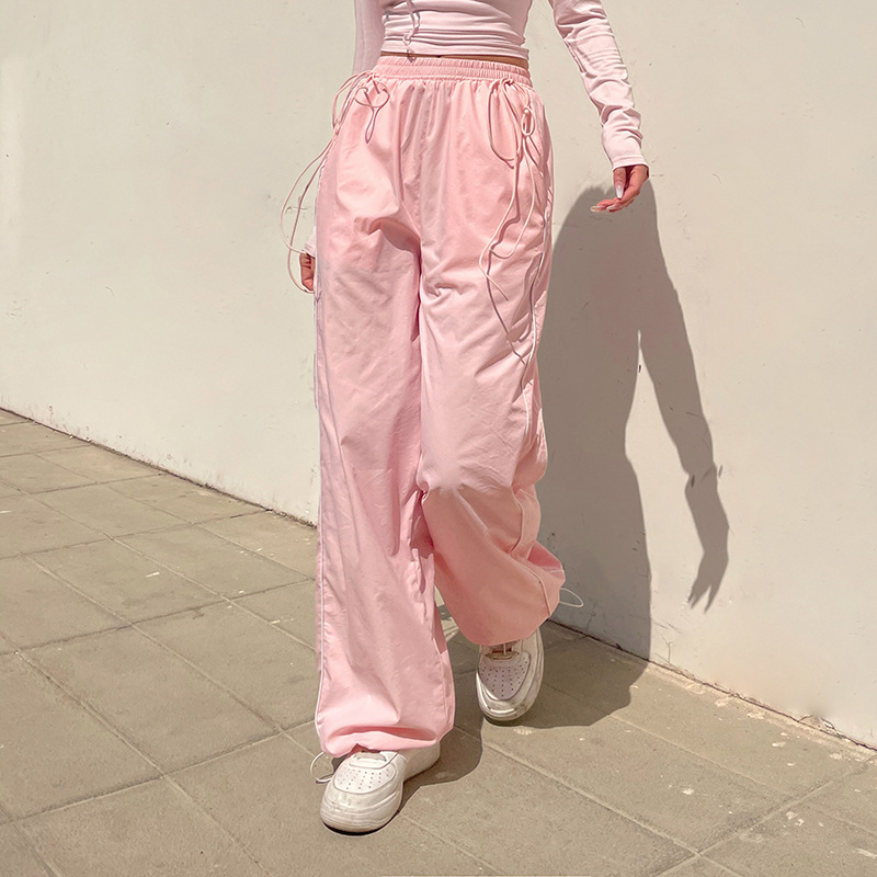 街头复古休闲风抽绳系带裤腰宽松阔腿裤辣妹帅气舞蹈运动束脚长裤
