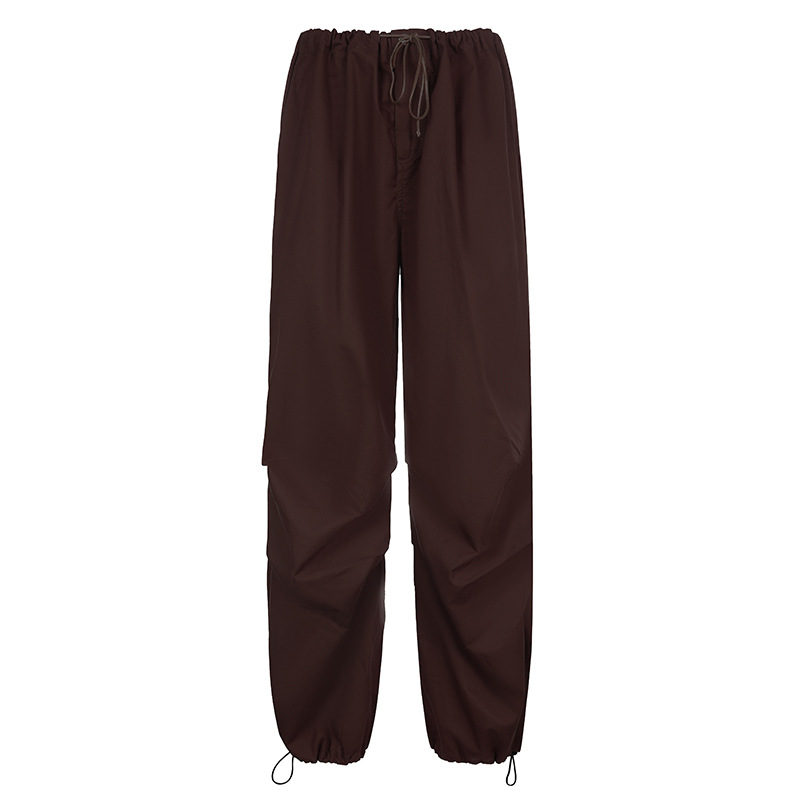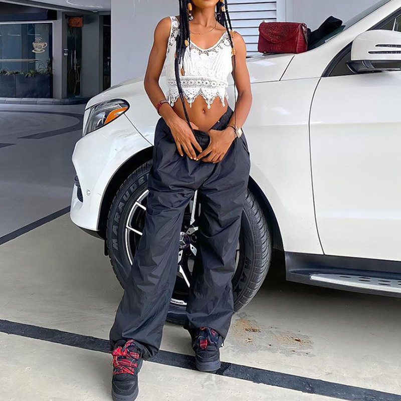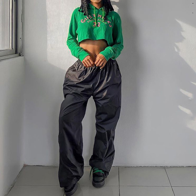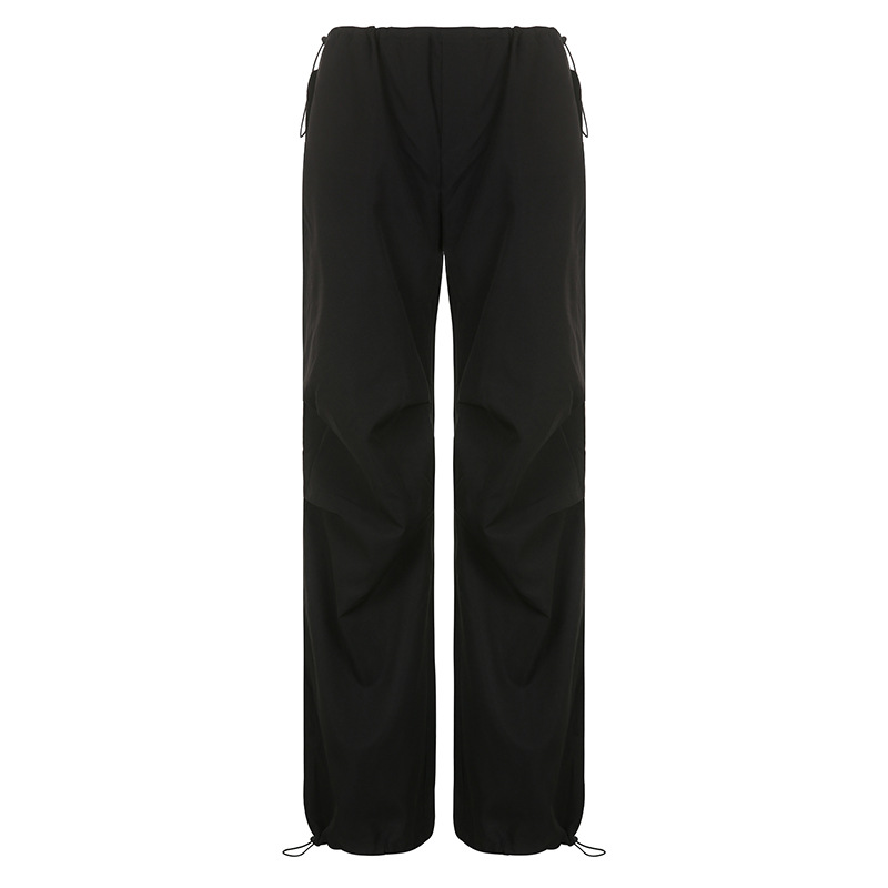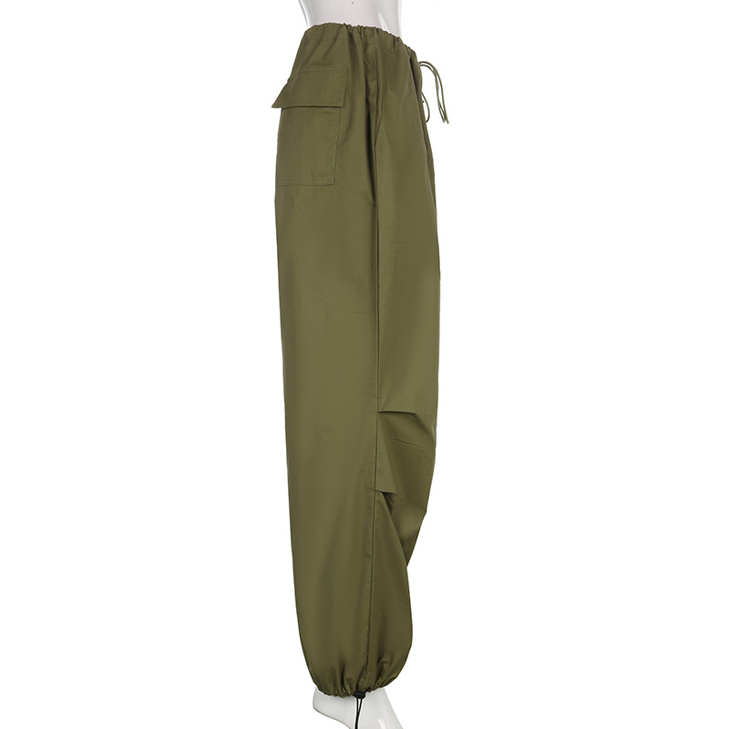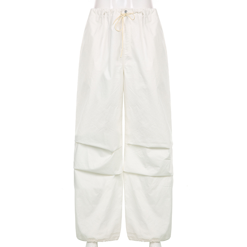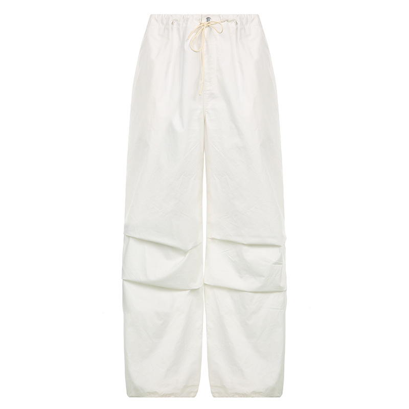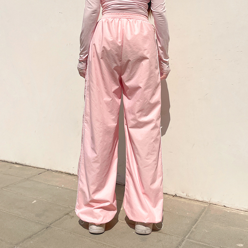 街头复古休闲风抽绳系带裤腰宽松阔腿裤辣妹帅气舞蹈运动束脚长裤