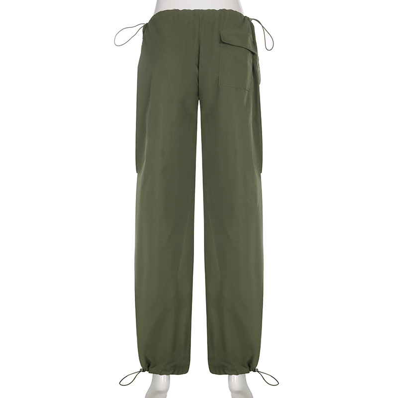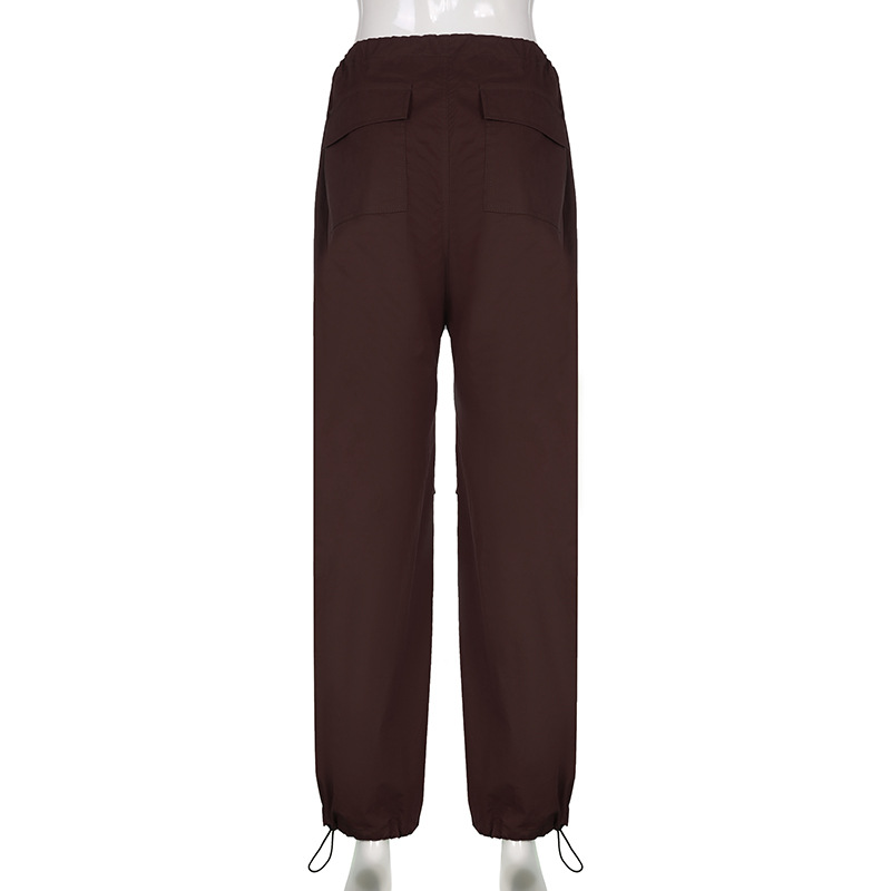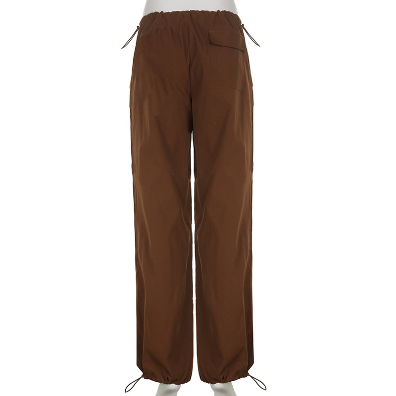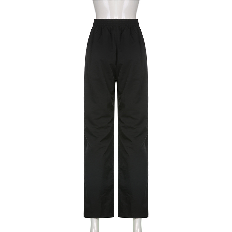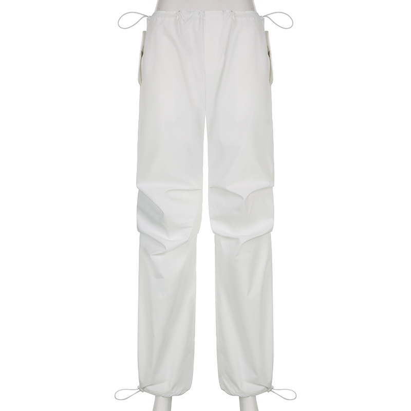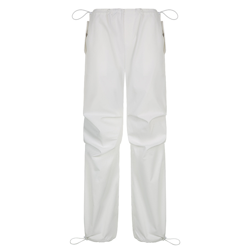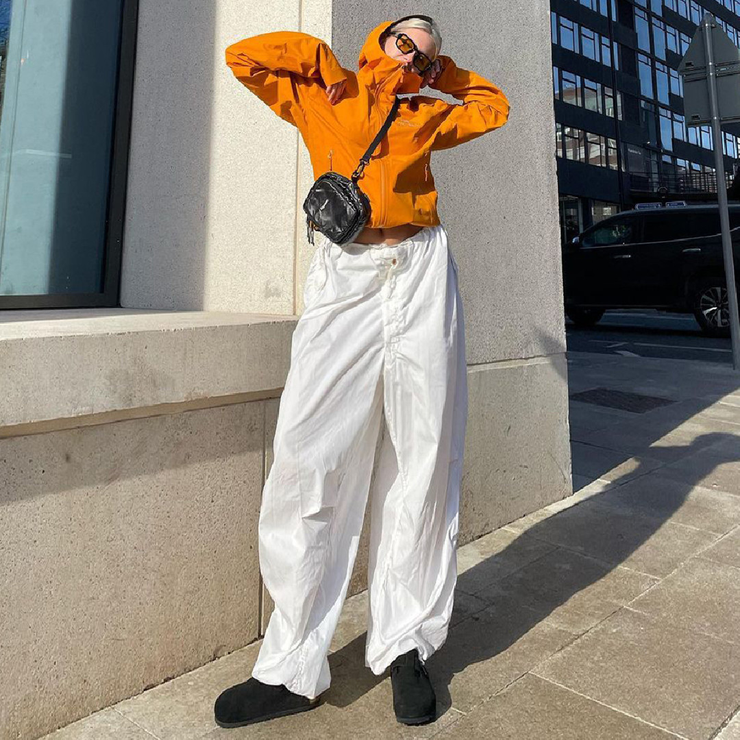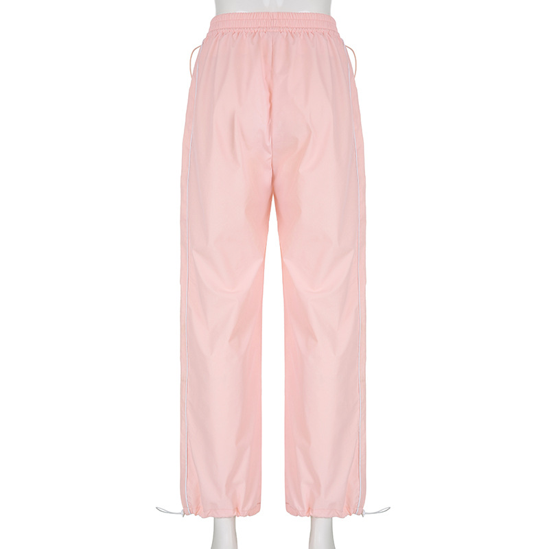 街头复古休闲风抽绳系带裤腰宽松阔腿裤辣妹帅气舞蹈运动束脚长裤