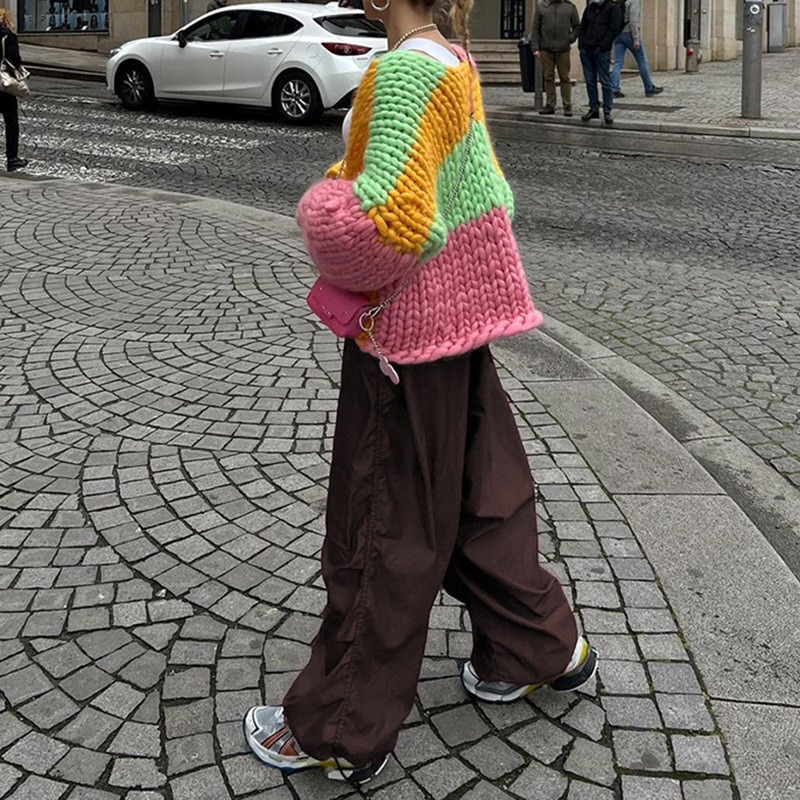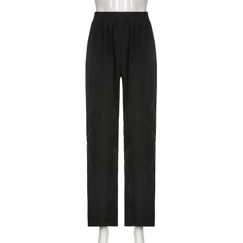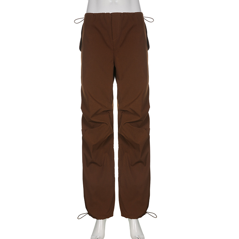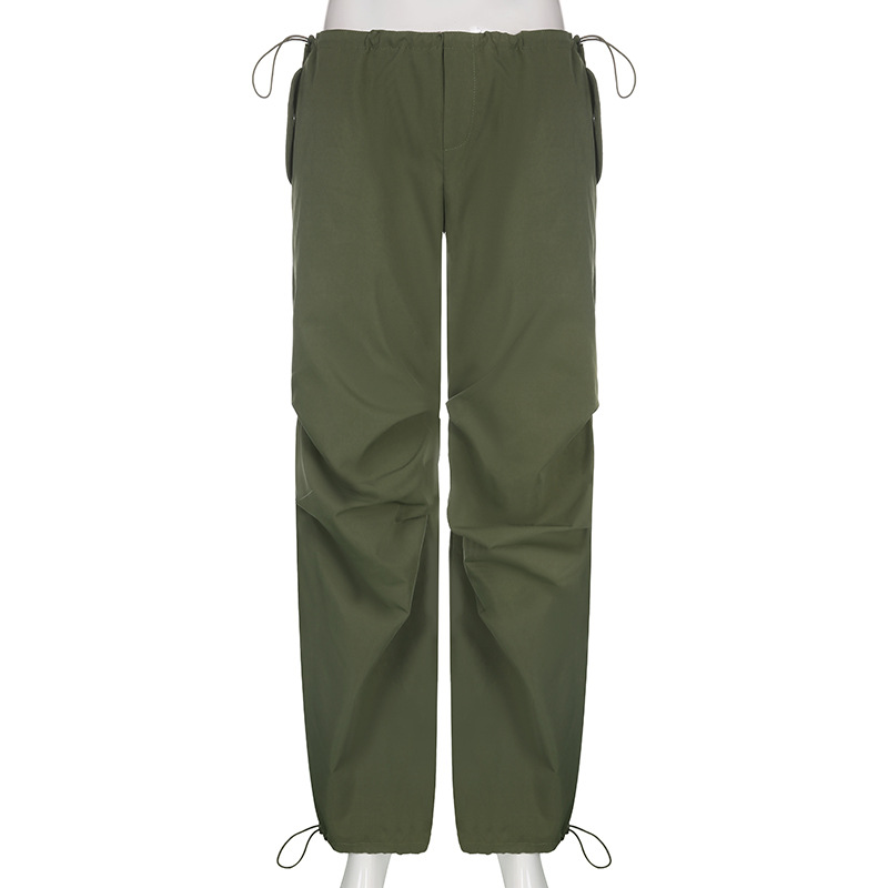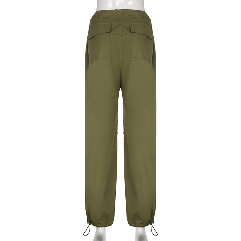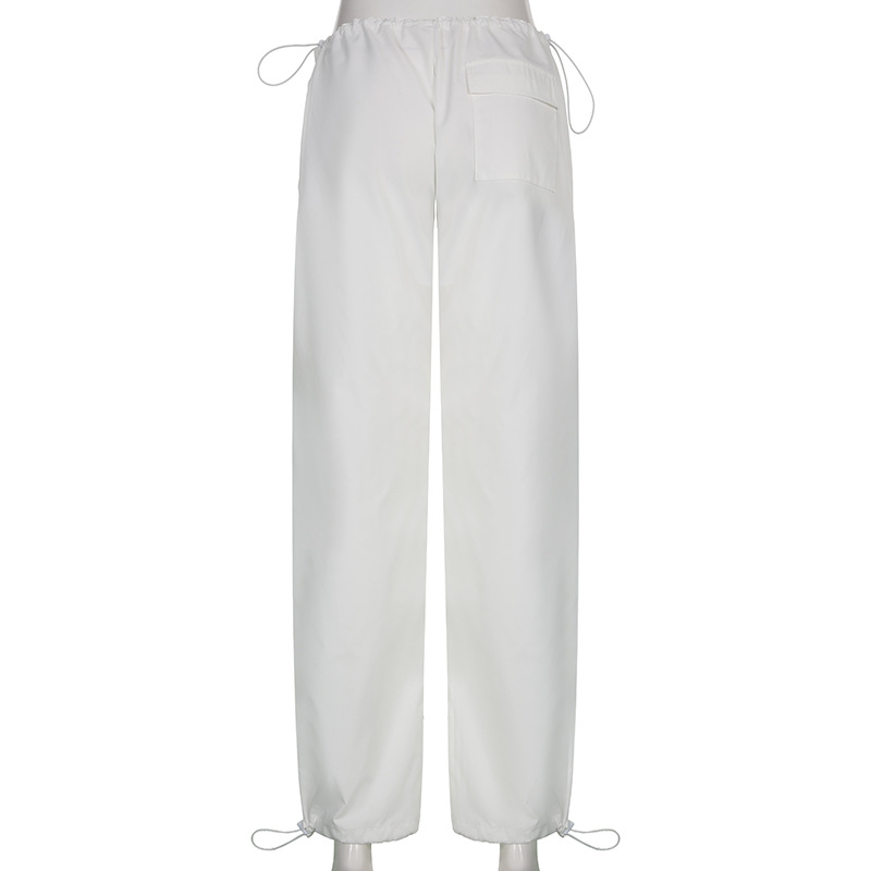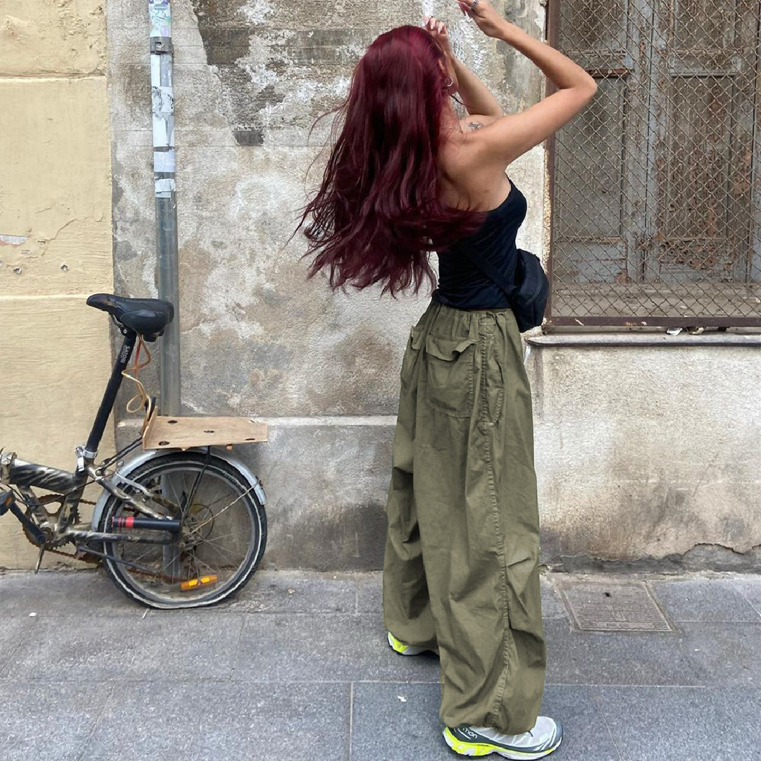 街头复古休闲风抽绳系带裤腰宽松阔腿裤辣妹帅气舞蹈运动束脚长裤