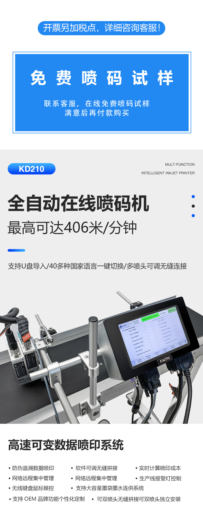 规格 KD210-1喷码机+原装黑色快干墨盒,KD210-2喷码机+原装黑色快干墨盒,KD210-3喷码机+原装黑色快干墨盒,KD210-4喷码机+原装黑色快干墨盒,KD210-5喷码机+原装黑色快干墨盒,KD210-6喷码机+原装黑色快干墨盒,原装黑色快干墨盒,原装红色快干墨盒,原装绿色快干墨盒,原装黄色快干墨盒,原装蓝色快干墨盒,光电传感器,支架,传送带(1500*190*750mm),传送带(700*360*220mm),编码器,警报灯,Z型防撞支架