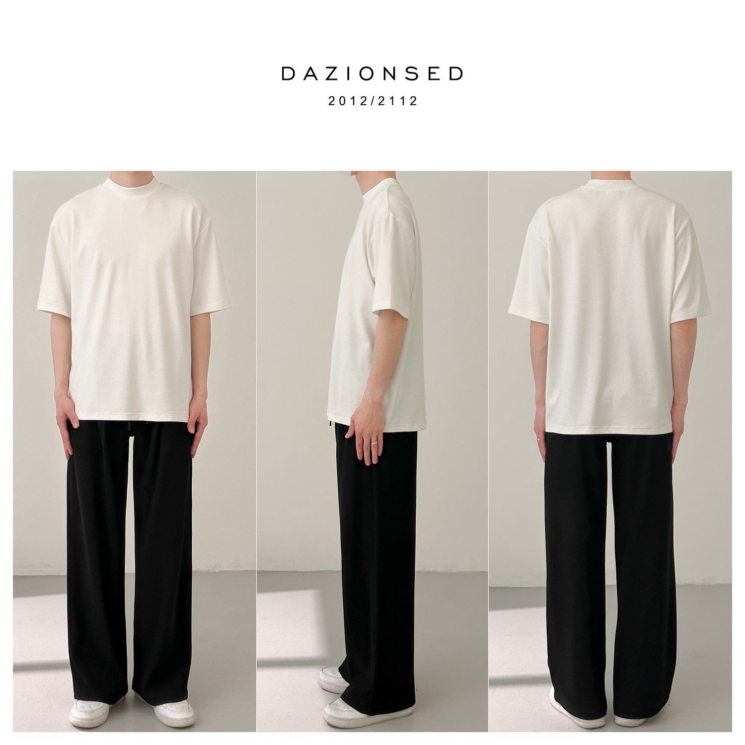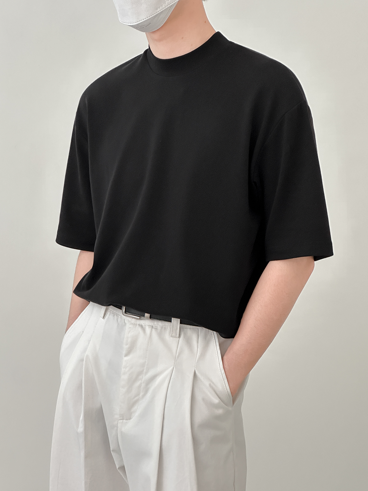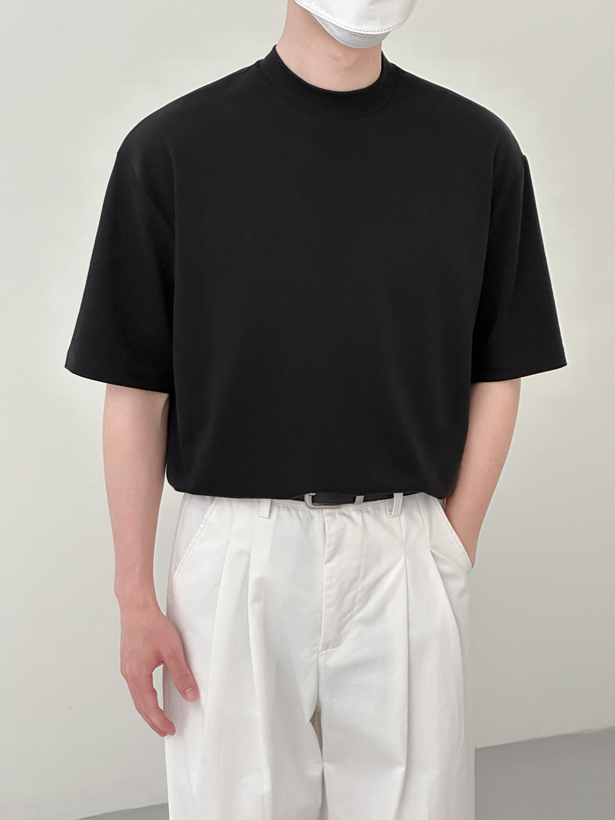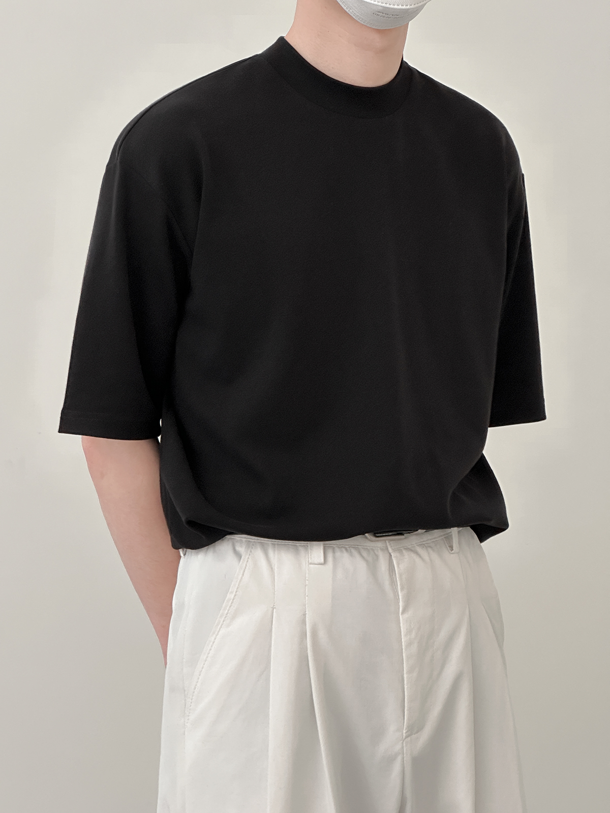 DAZO 高級感純色半高領短袖T恤男夏季小領口五分袖上衣寬鬆百搭潮