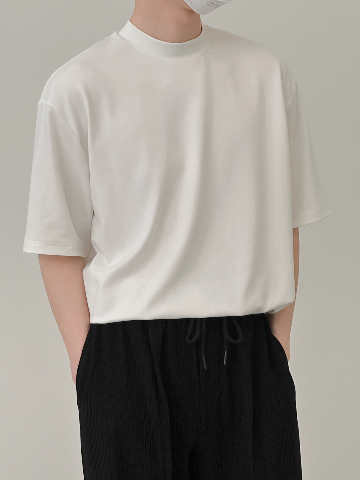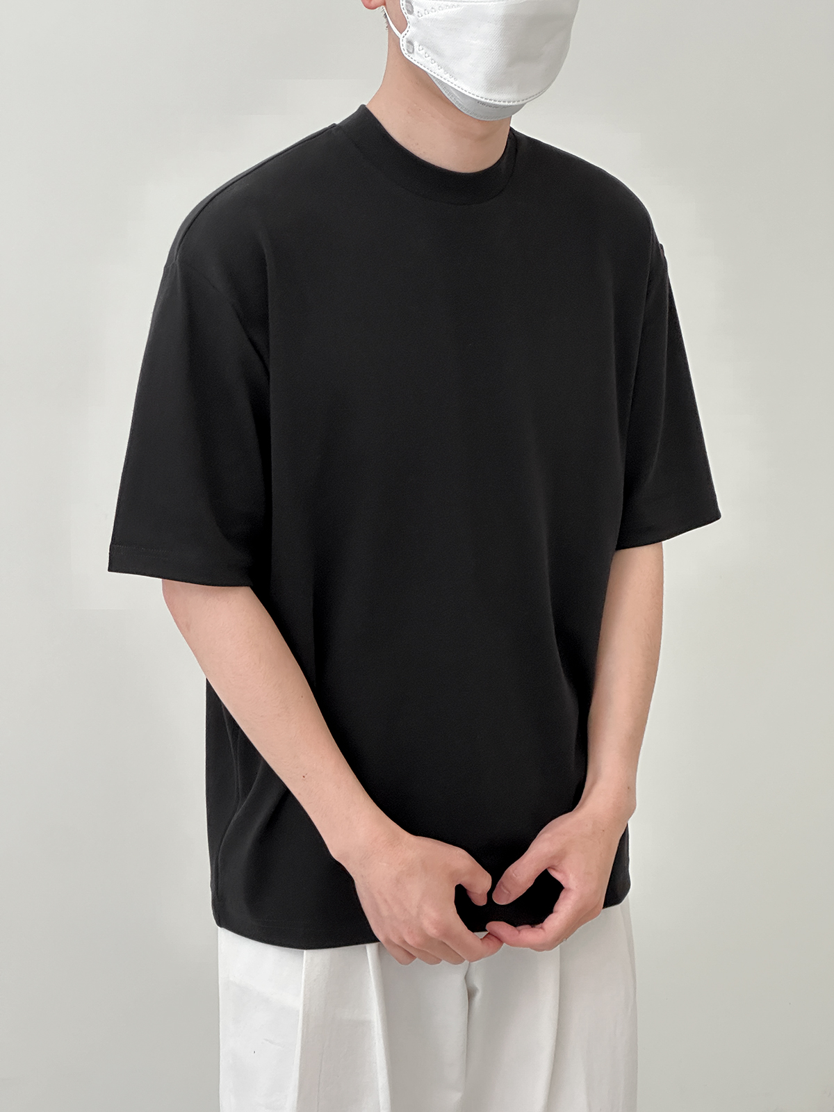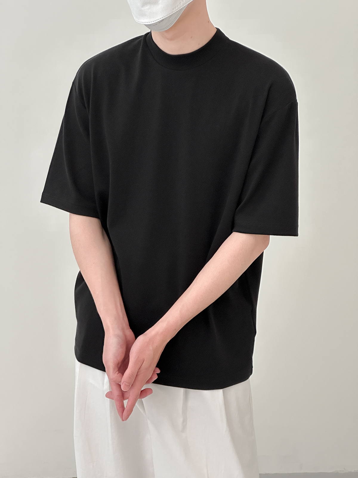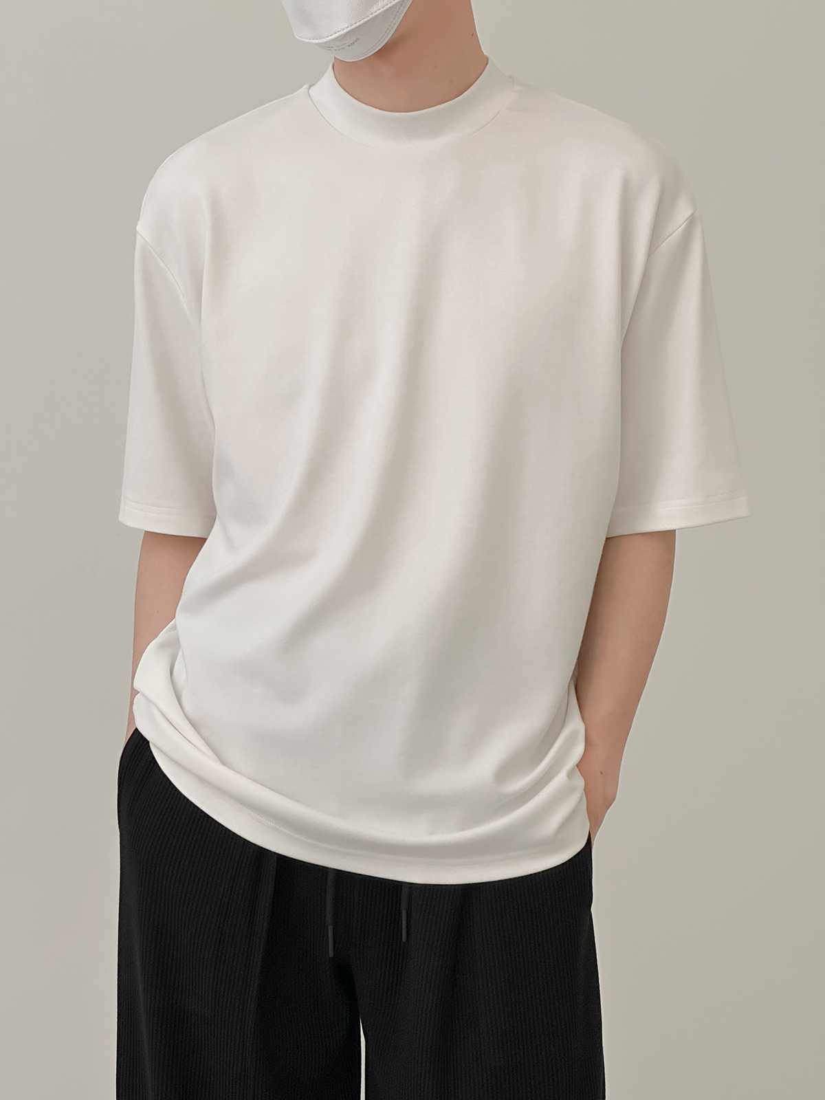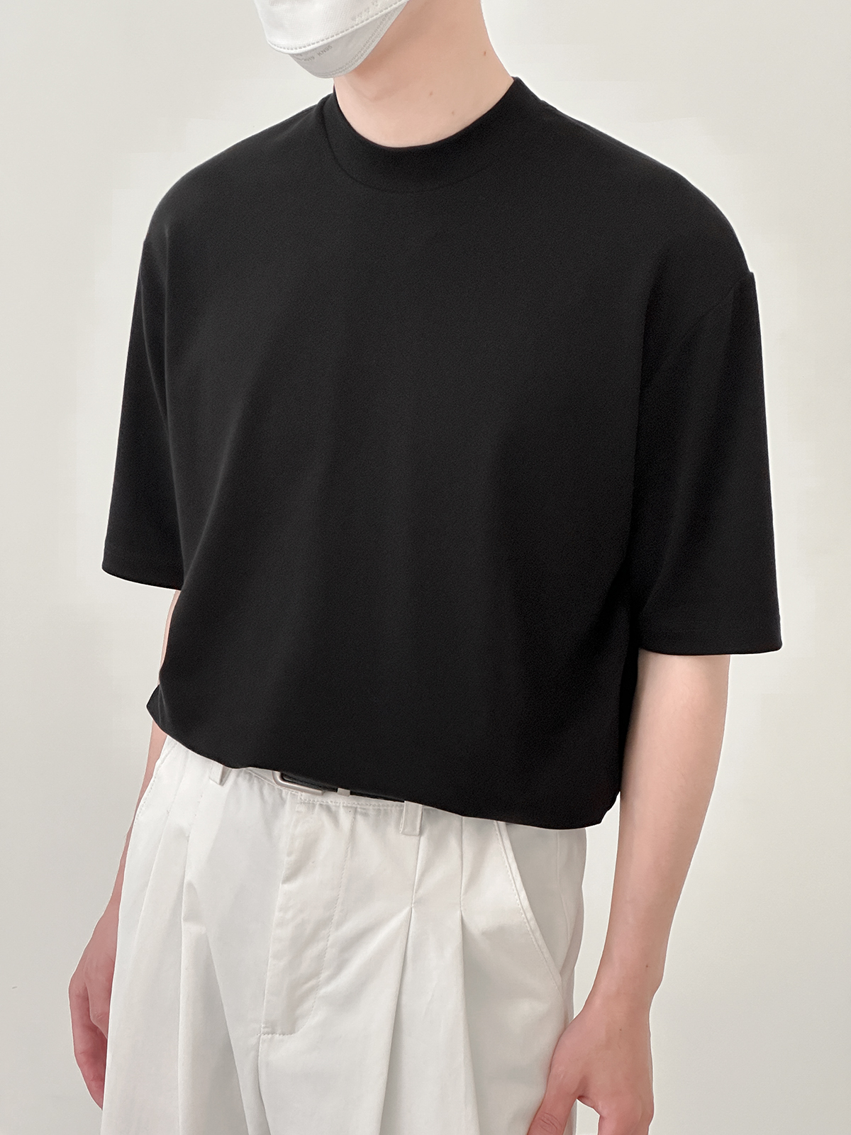 DAZO 高級感純色半高領短袖T恤男夏季小領口五分袖上衣寬鬆百搭潮