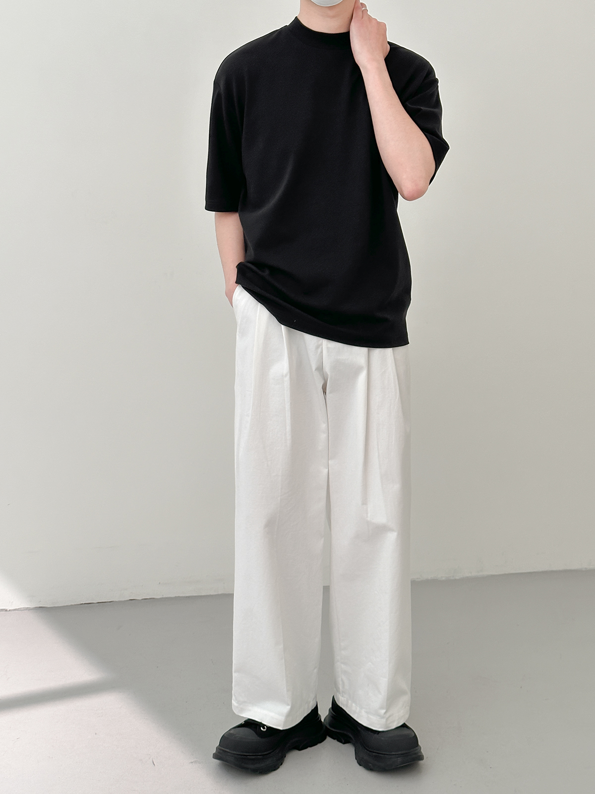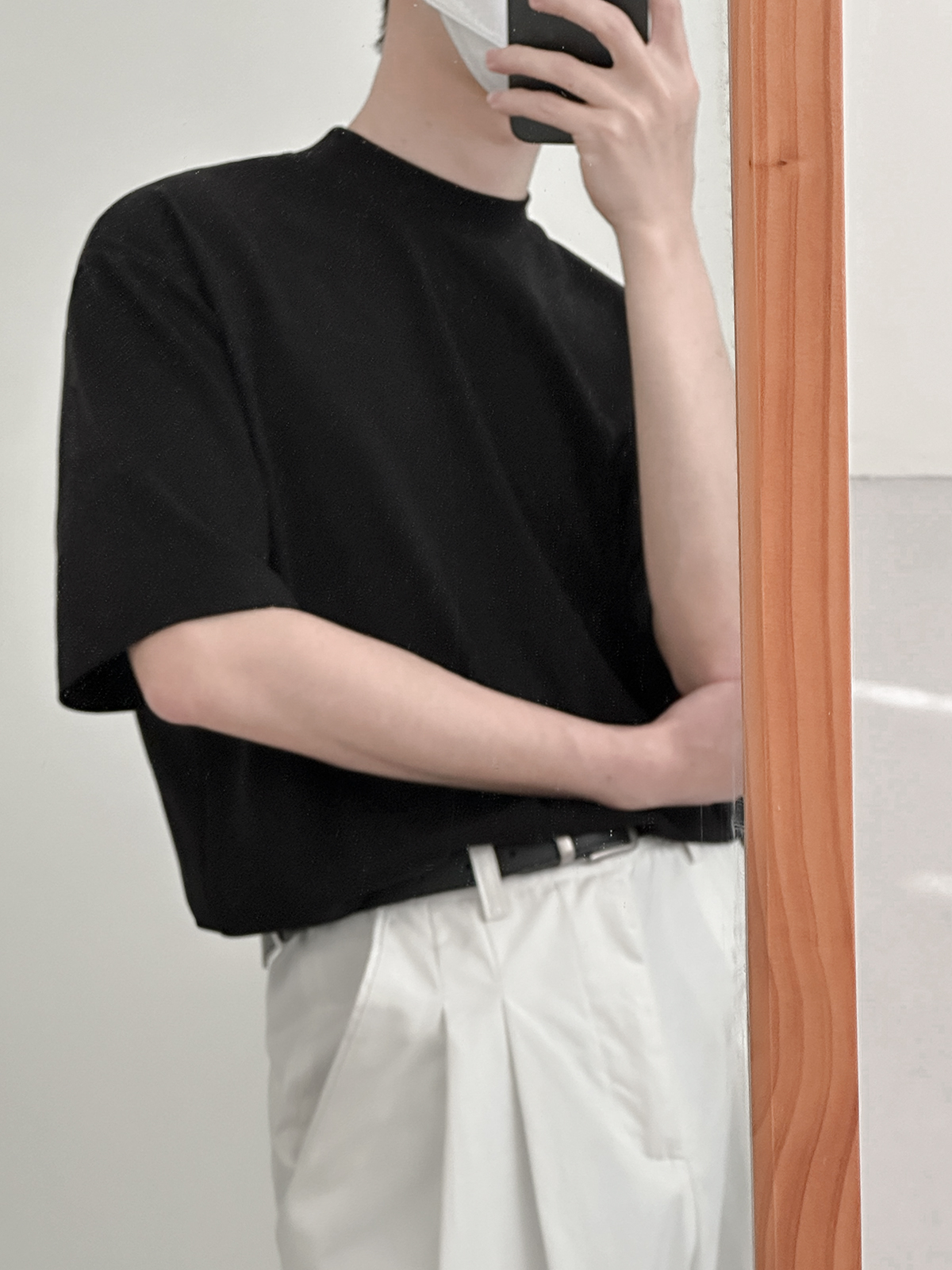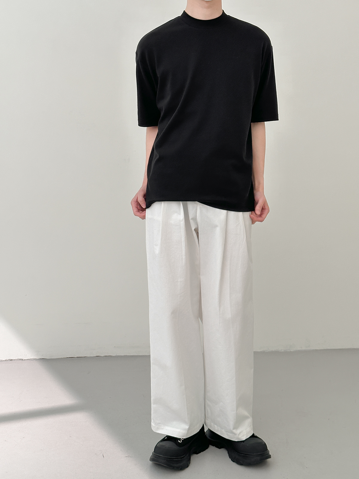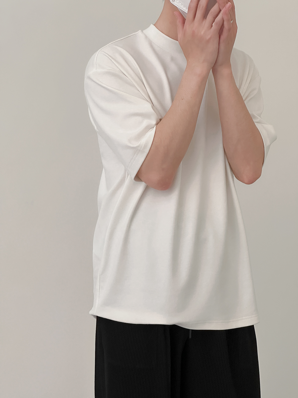 DAZO 高級感純色半高領短袖T恤男夏季小領口五分袖上衣寬鬆百搭潮