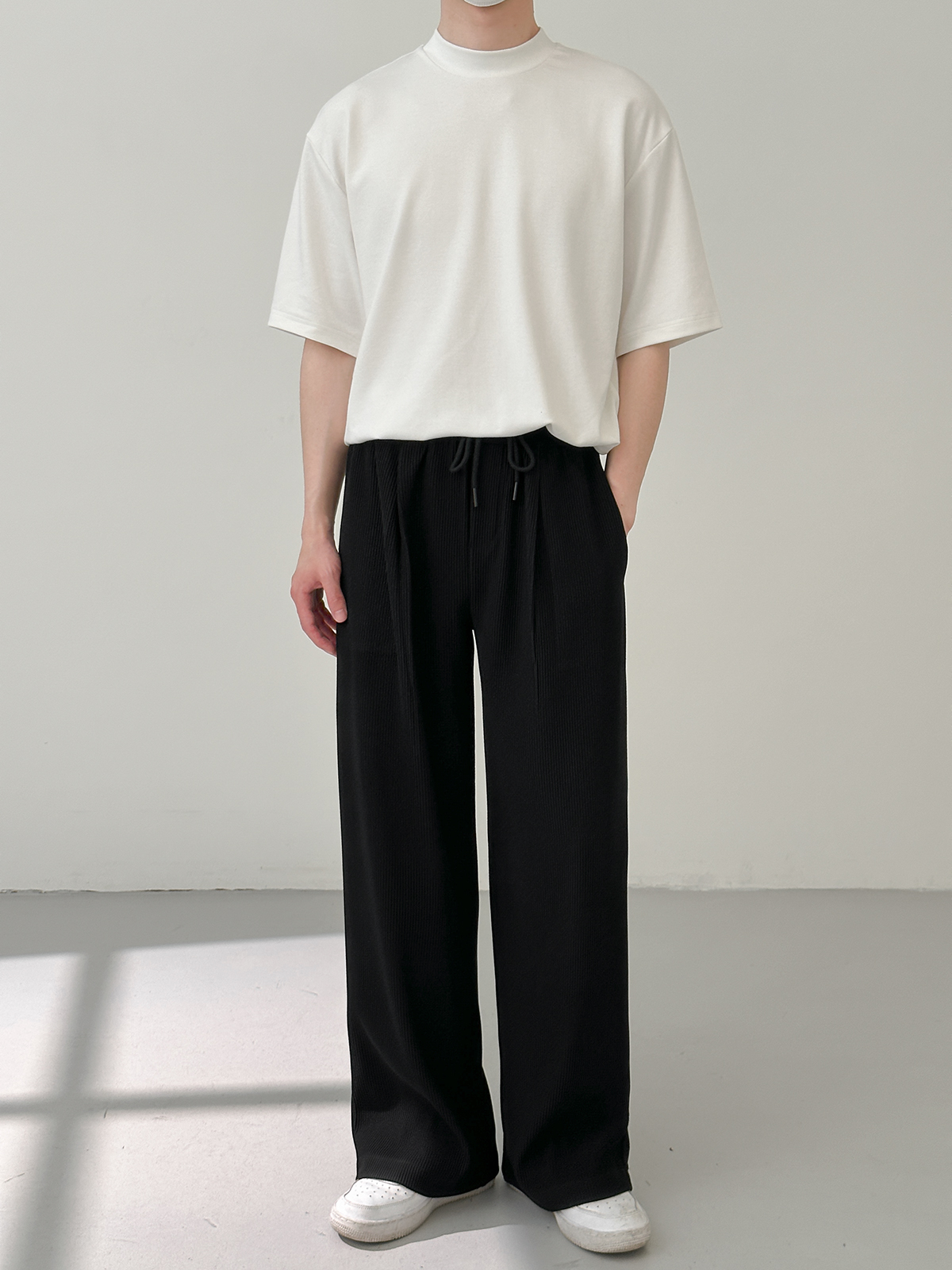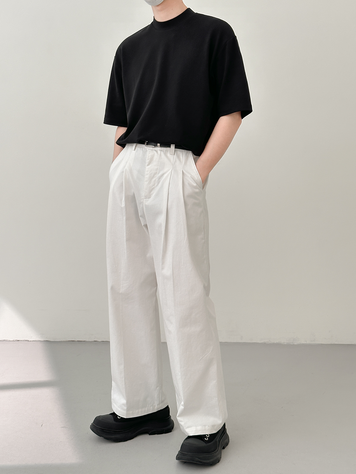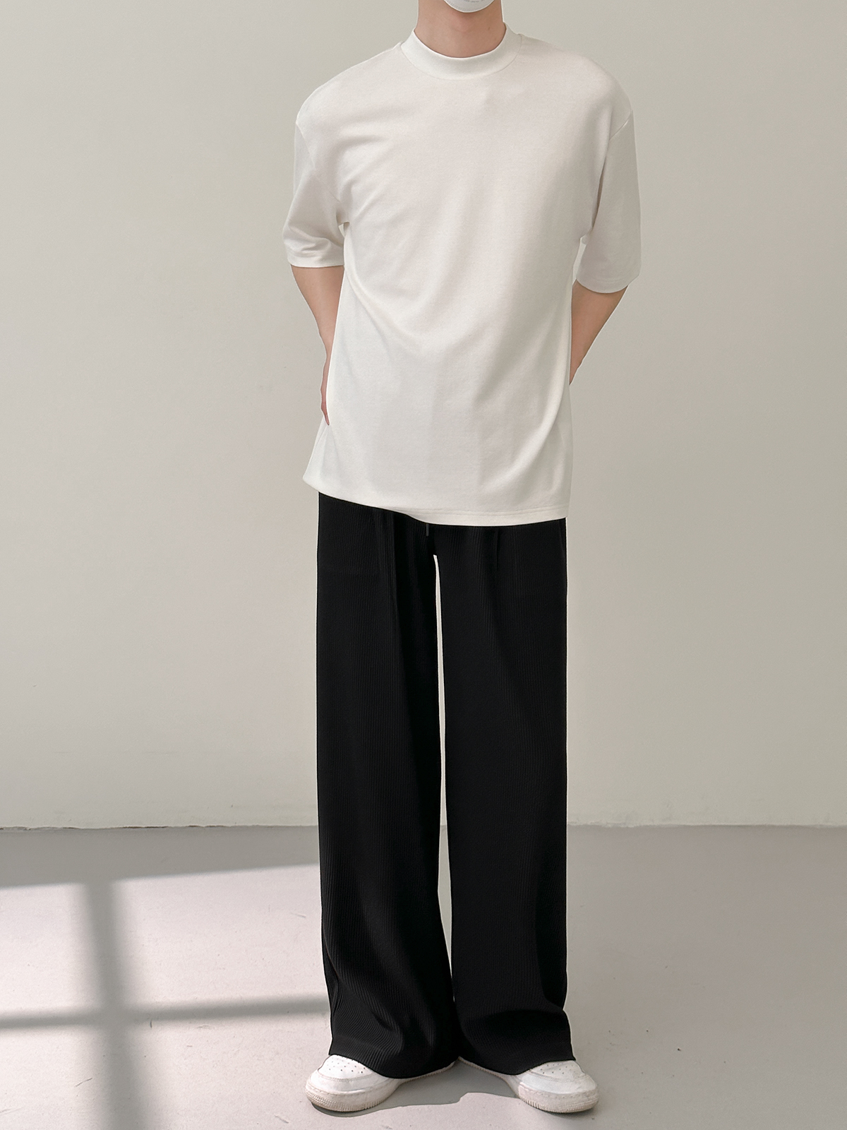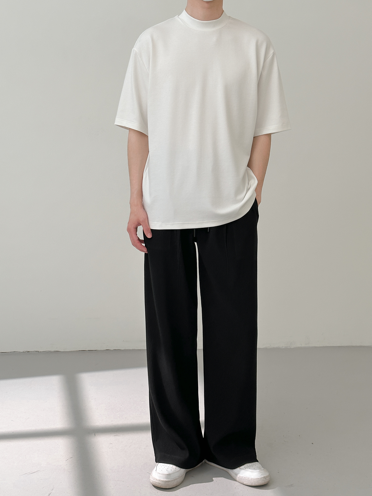 DAZO 高級感純色半高領短袖T恤男夏季小領口五分袖上衣寬鬆百搭潮
