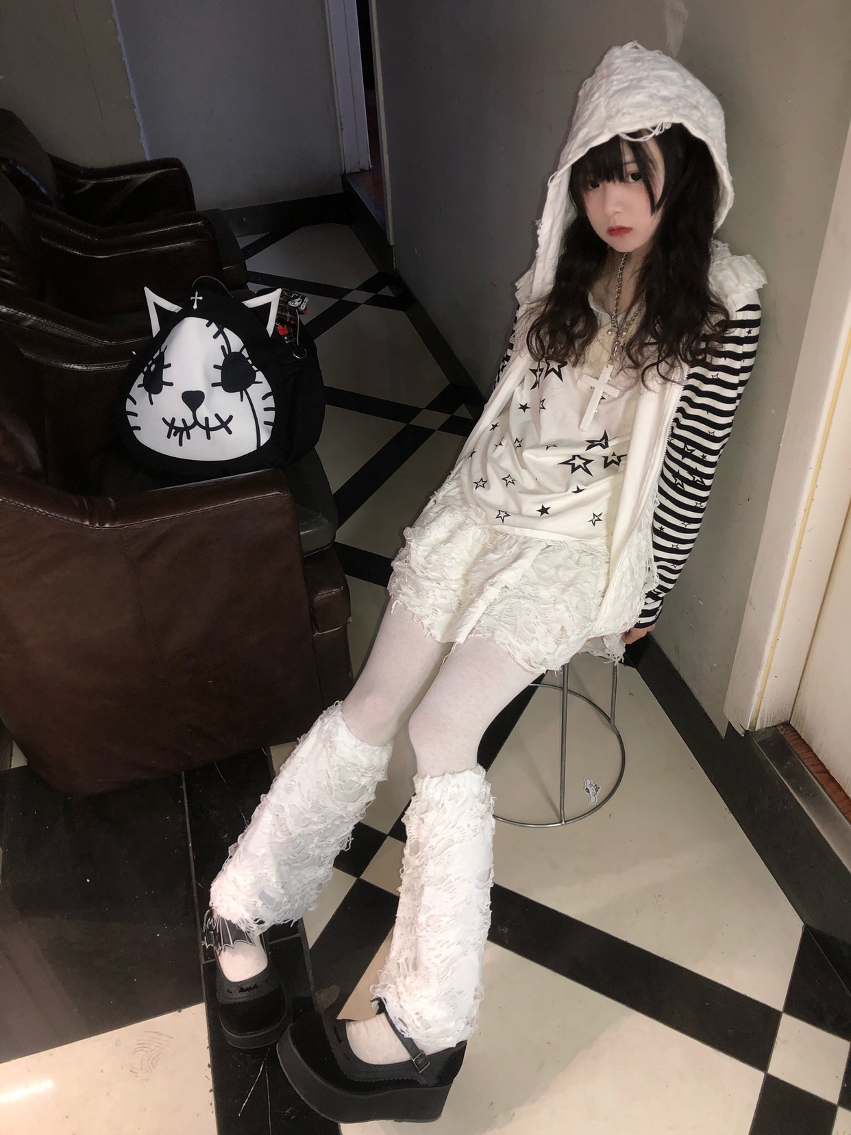 【嬰兒檔案】原創破洞原宿亞文化百搭連帽小外套蛋糕裙