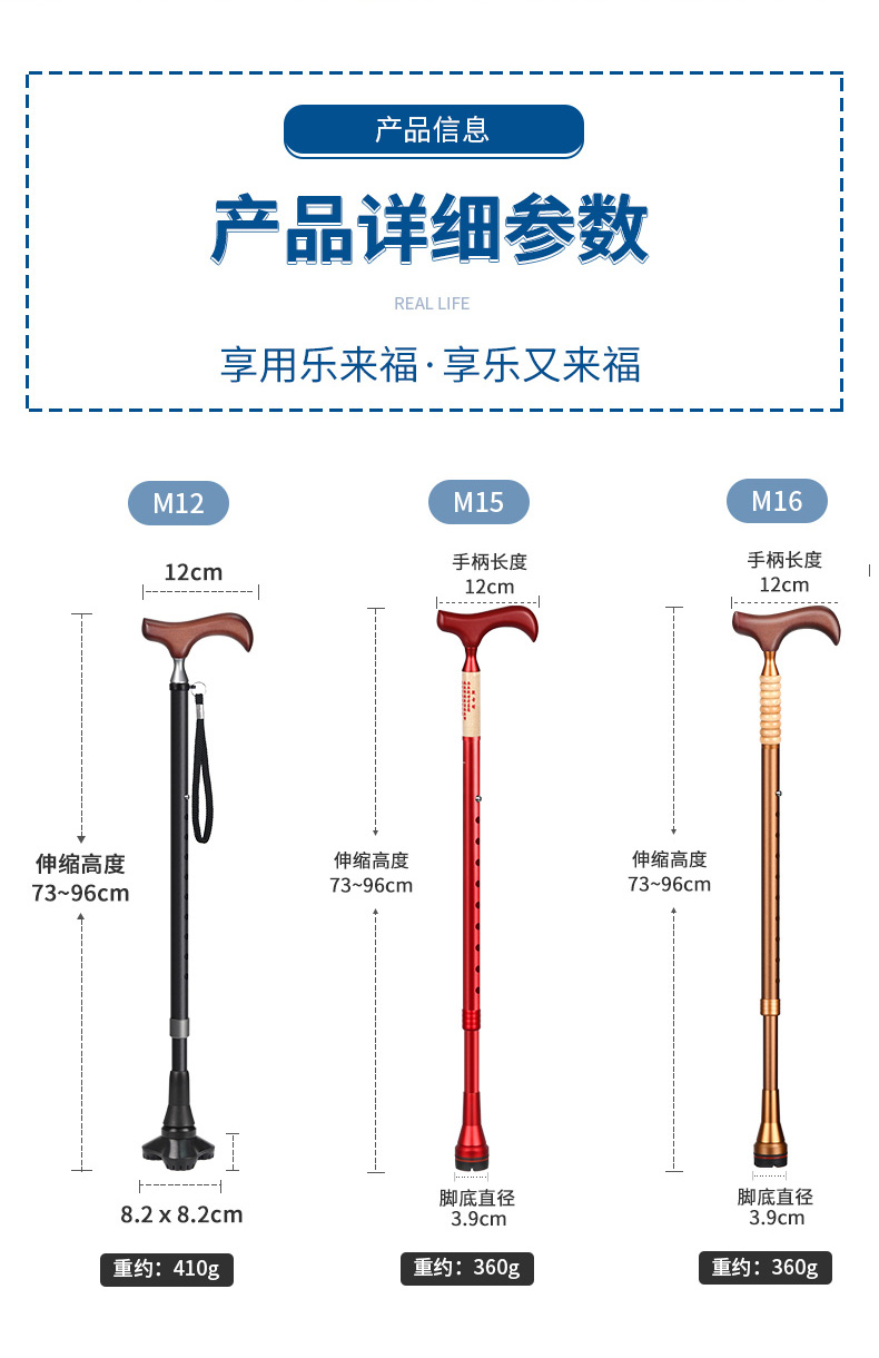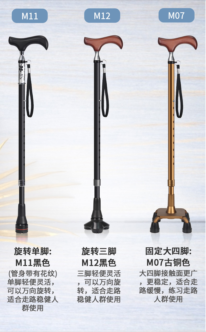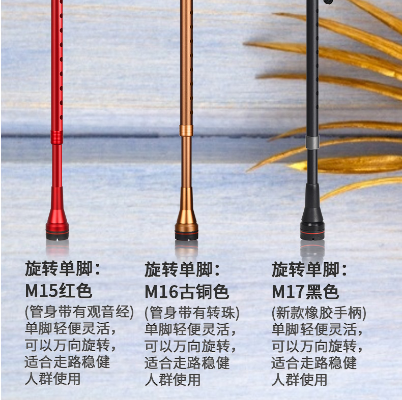 顏色分類 【M11進口柺杖】(實木手柄+印花管身)【360度萬向旋轉單腳】 【M15進口柺杖】(實木手柄+經文裝飾)【360度萬向旋轉單腳】 【M16進口柺杖】(實木手柄+木環裝飾)【360度萬向旋轉單腳】 【M12進口柺杖】(黑色管身)【360度萬向旋轉三腳底座】 【M12進口柺杖】(紅色管身)【360度萬向旋轉三腳底座】 【M12進口柺杖】(綠色管身)【360度萬向旋轉三腳底座】 【M12進口柺杖】(茶色管身)【360度萬向旋轉三腳底座】 【M07進口柺杖】(實木手柄)【鋁合金輕便穩固四腳底座】 【M17進口柺杖】(橡膠手柄)【360度萬向旋轉單腳】