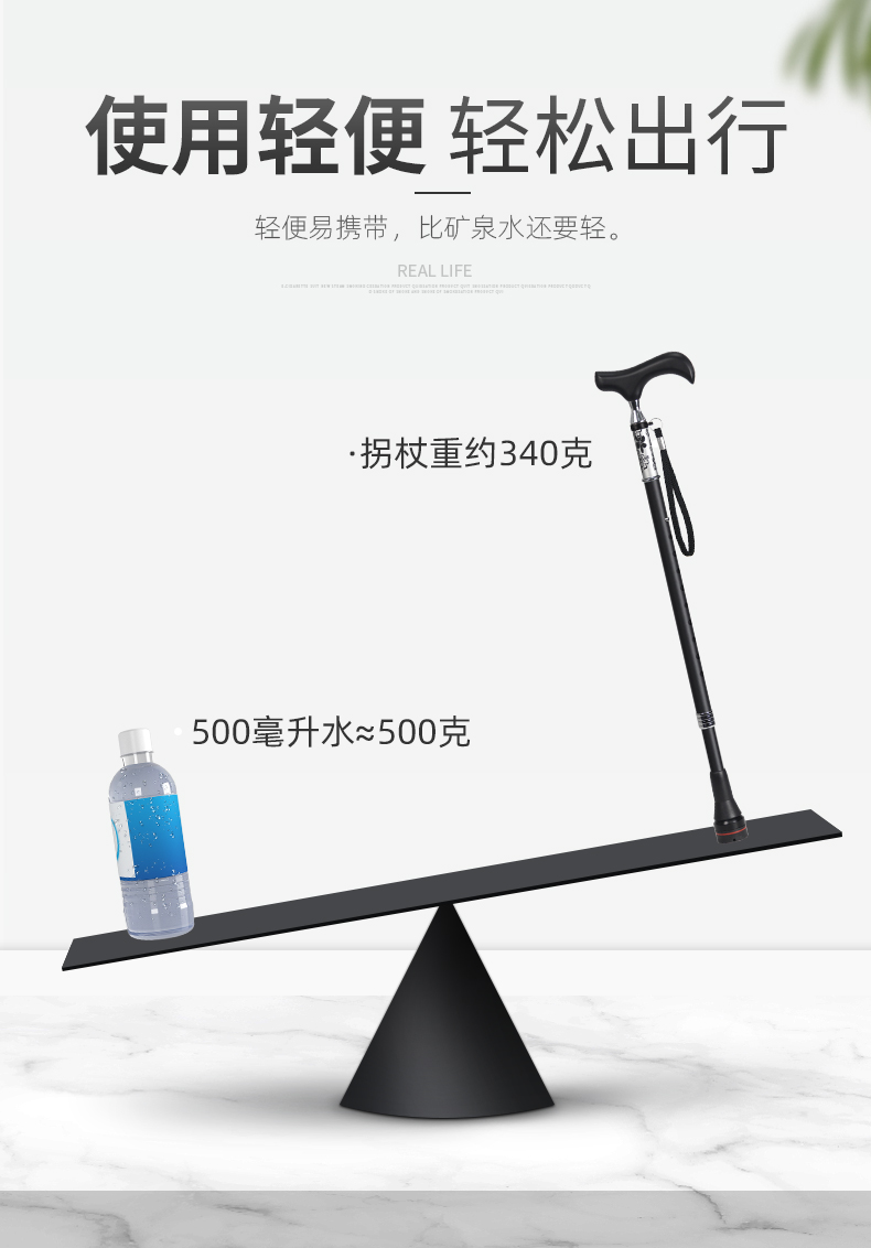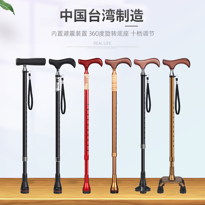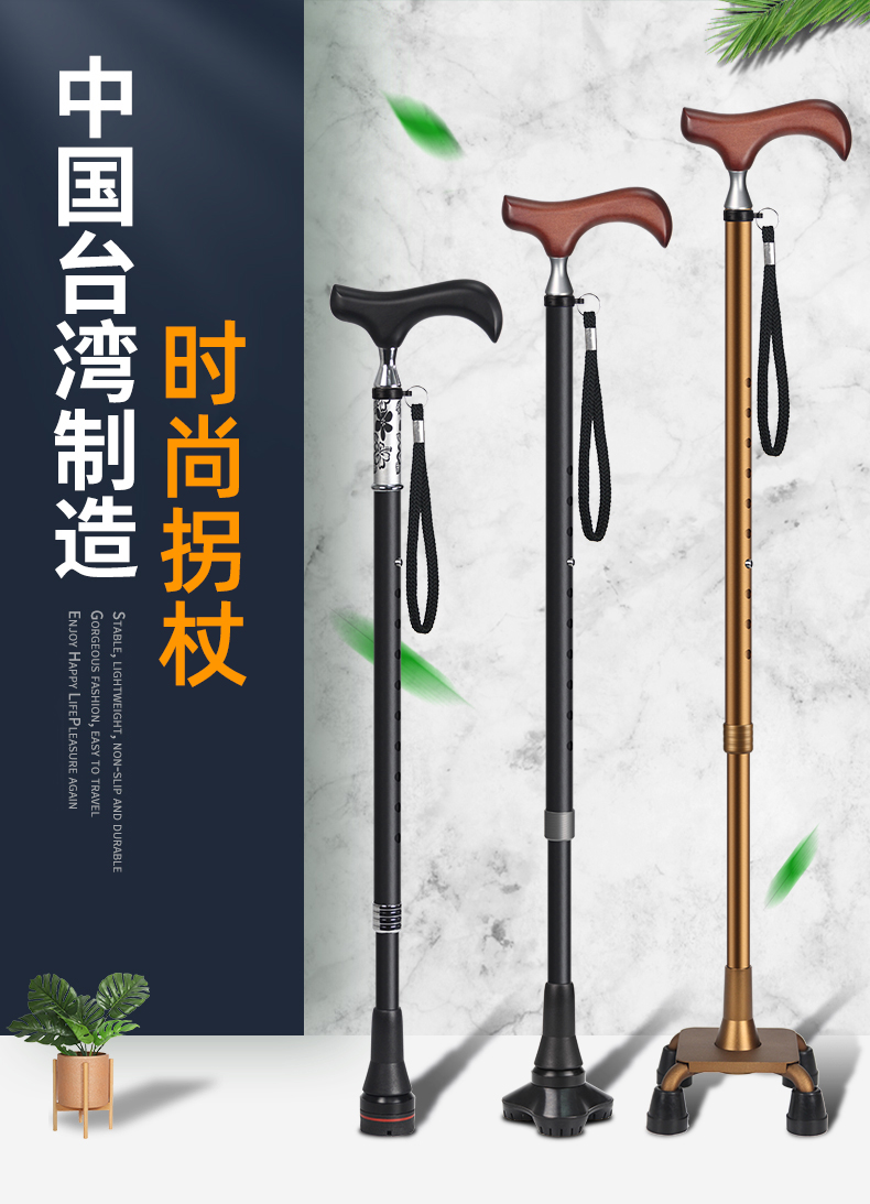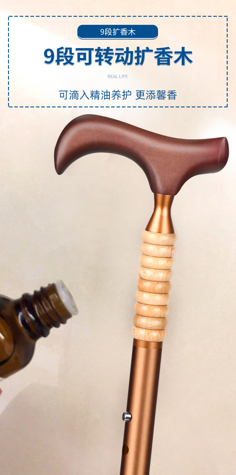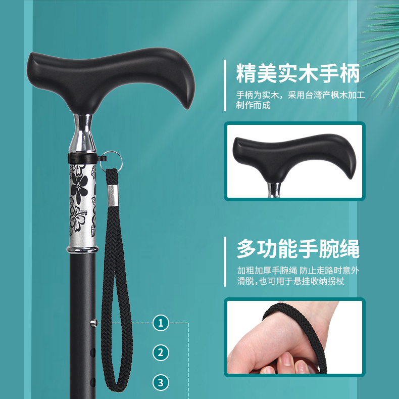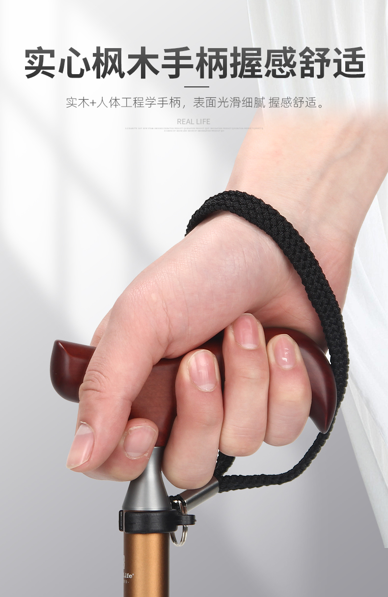 日本樂來福進口柺杖實木手柄鋁合金可攜式防滑柺棍萬向旋轉老人手杖