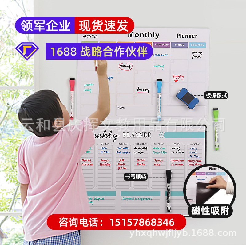 跨境磁性冰箱贴可擦写记事留言软白板创意可移磁力自律计划表批发