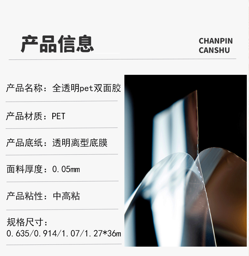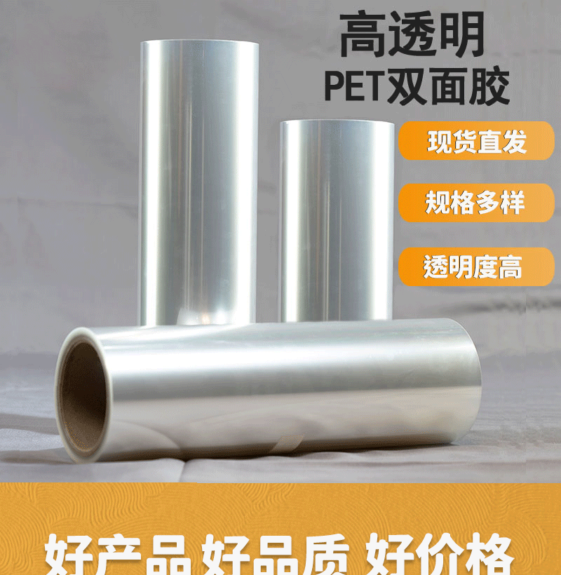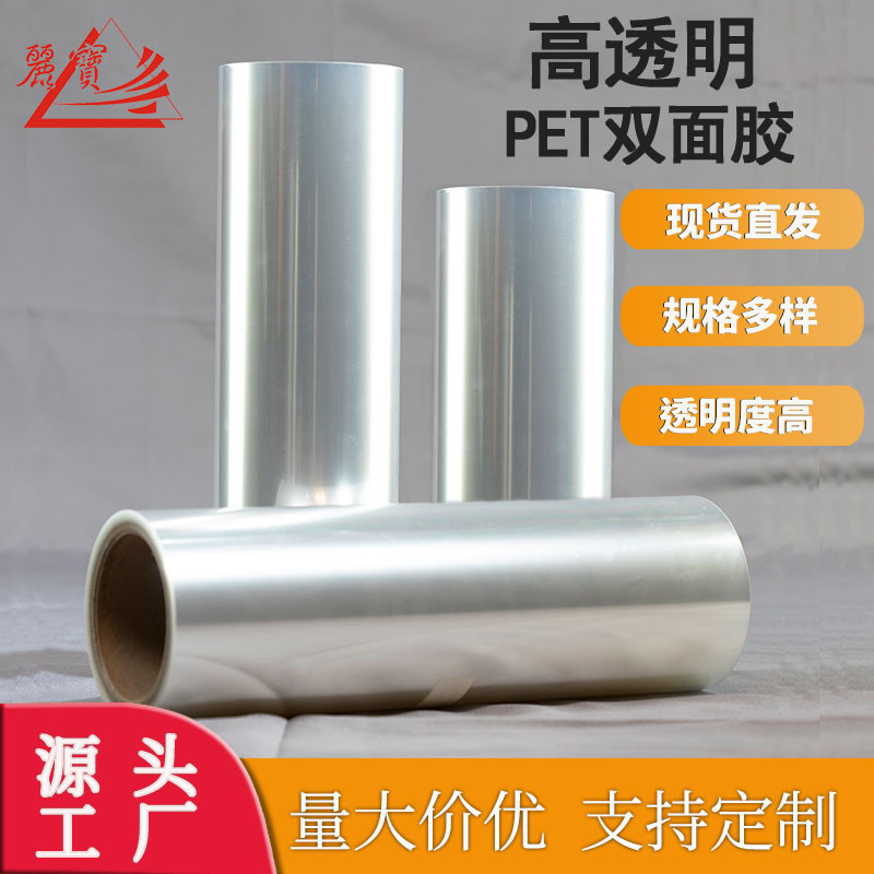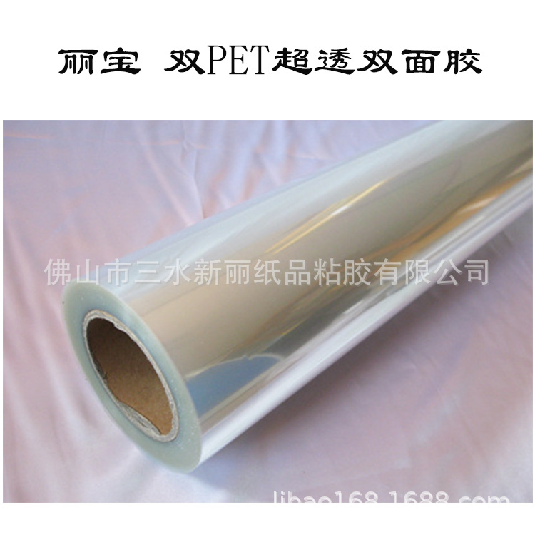 丽宝批发 全透明PET卷筒双面胶带卷材 玻璃/亚克力画用宽幅双透膜