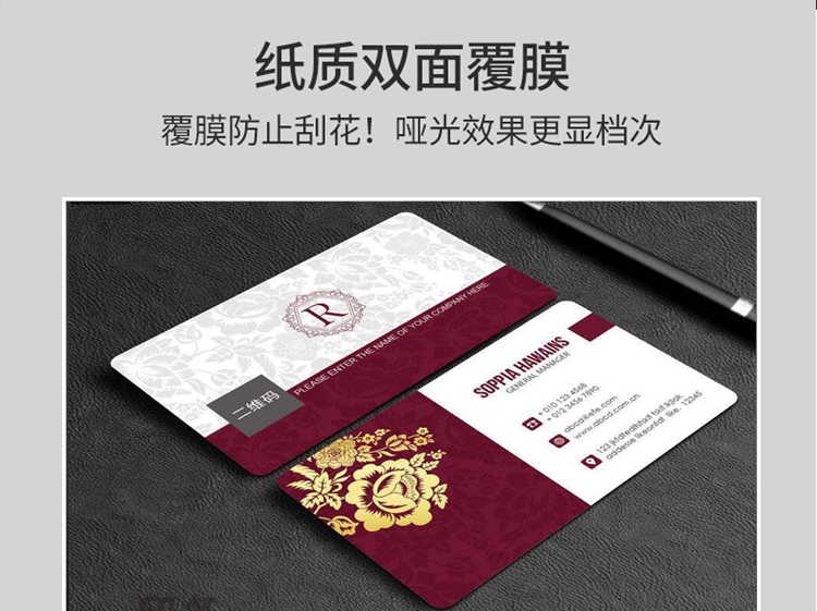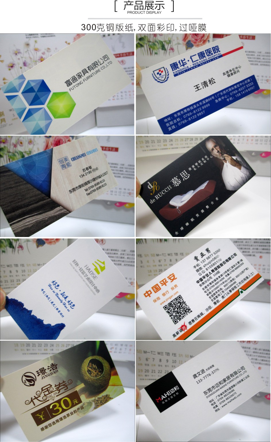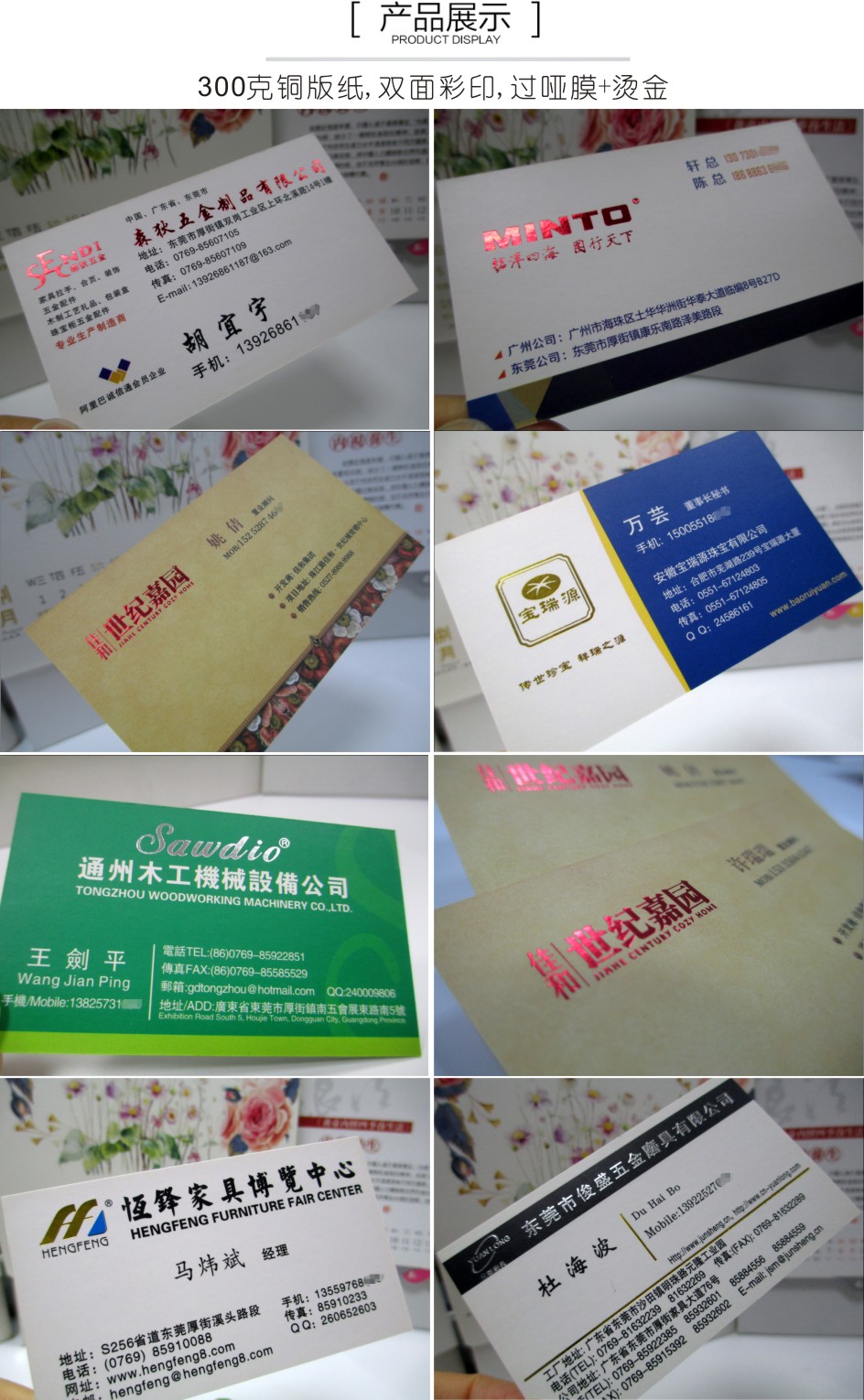 300g铜版纸双面防水过哑膜公司名片设计制作印刷彩色广告烫金名片