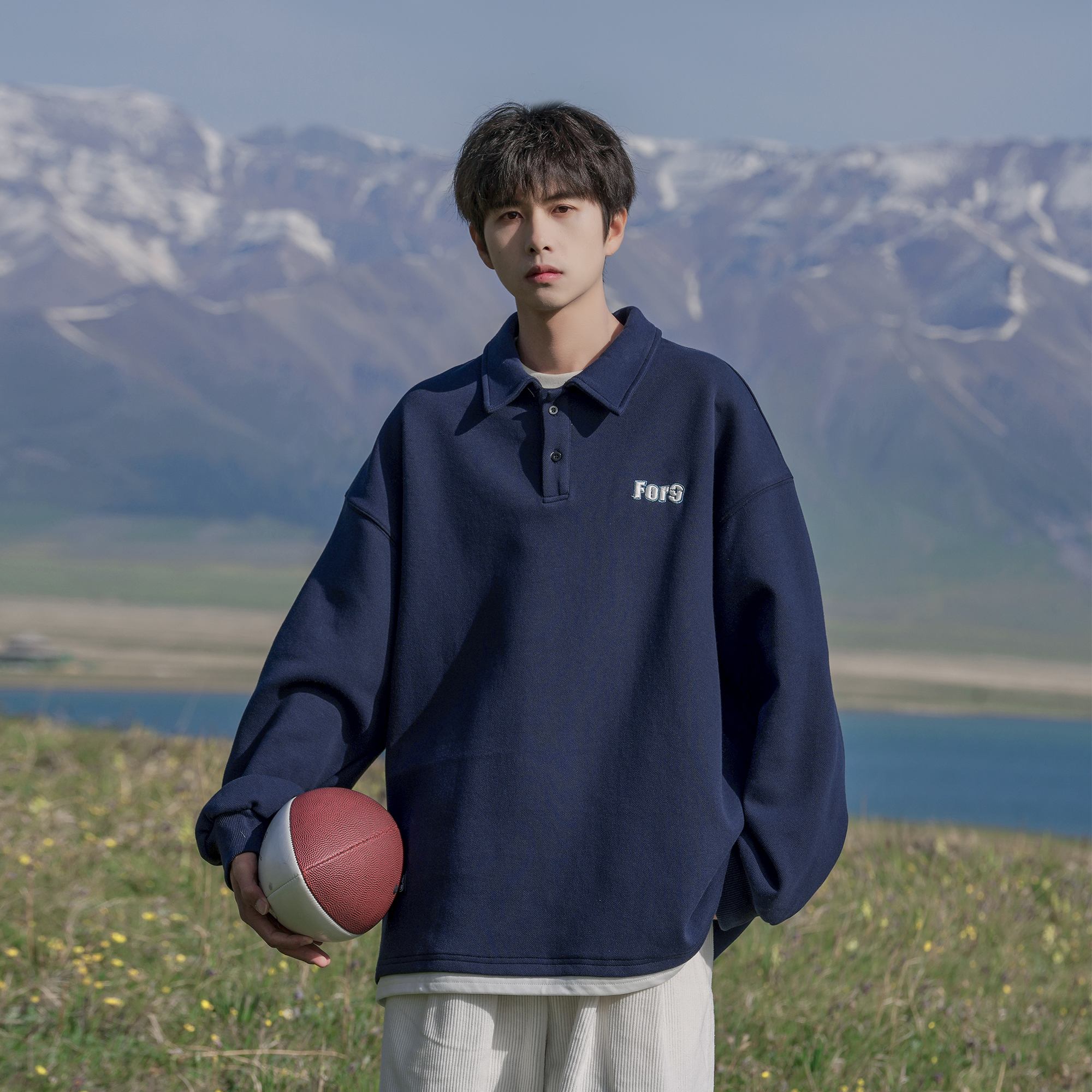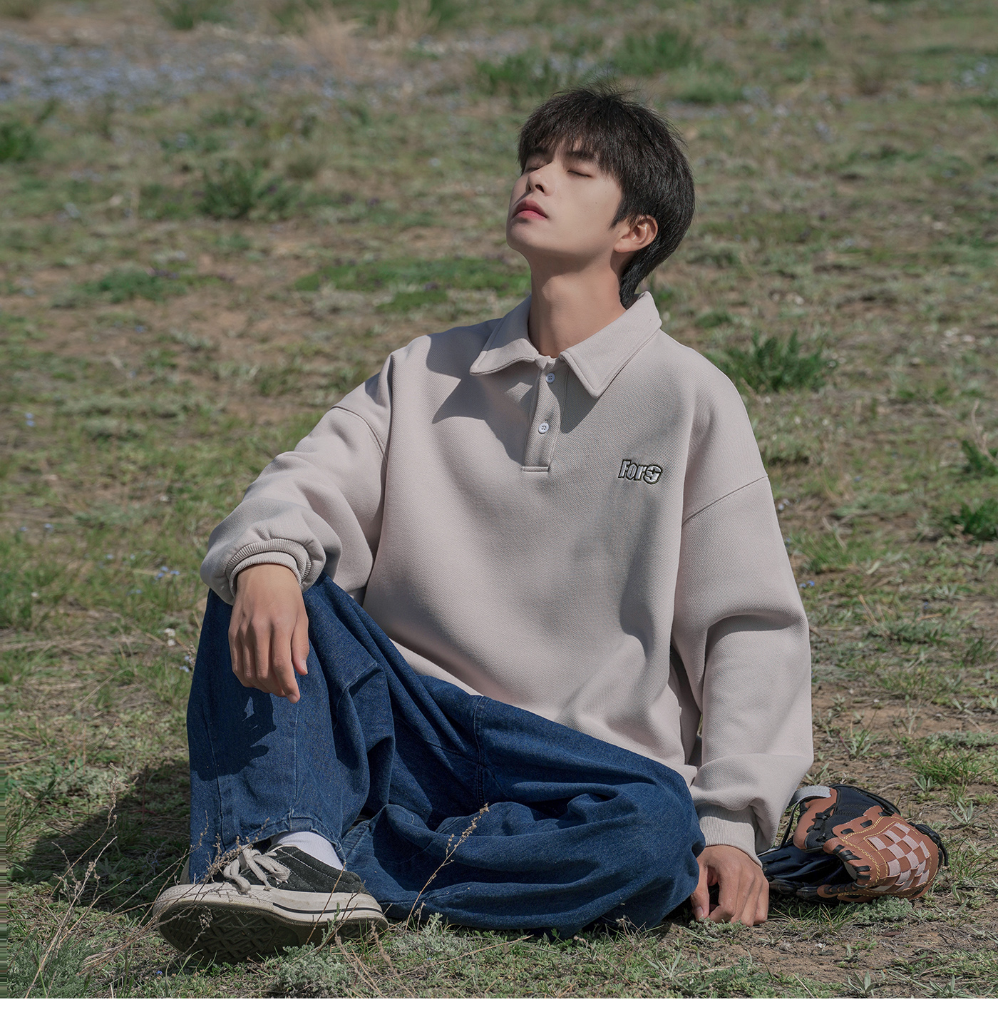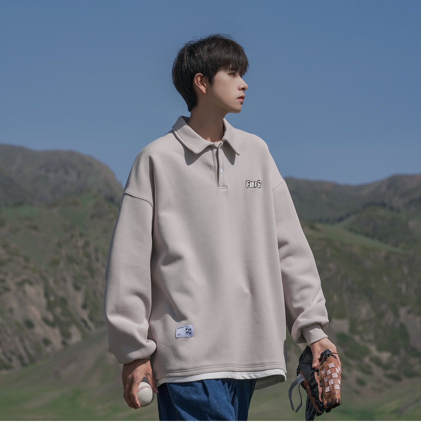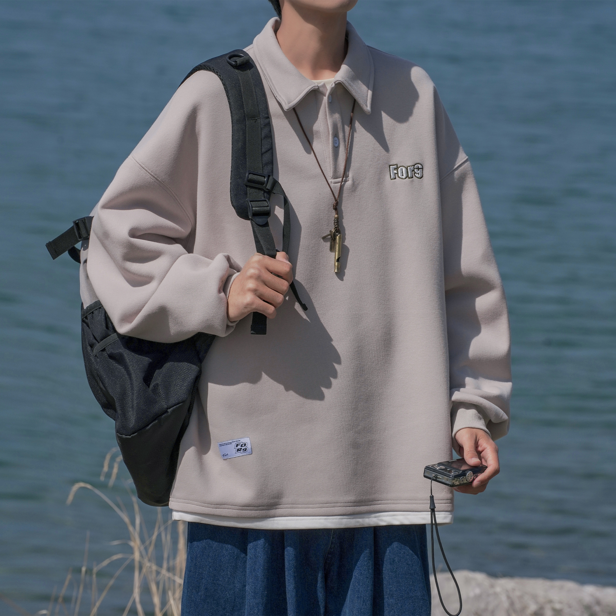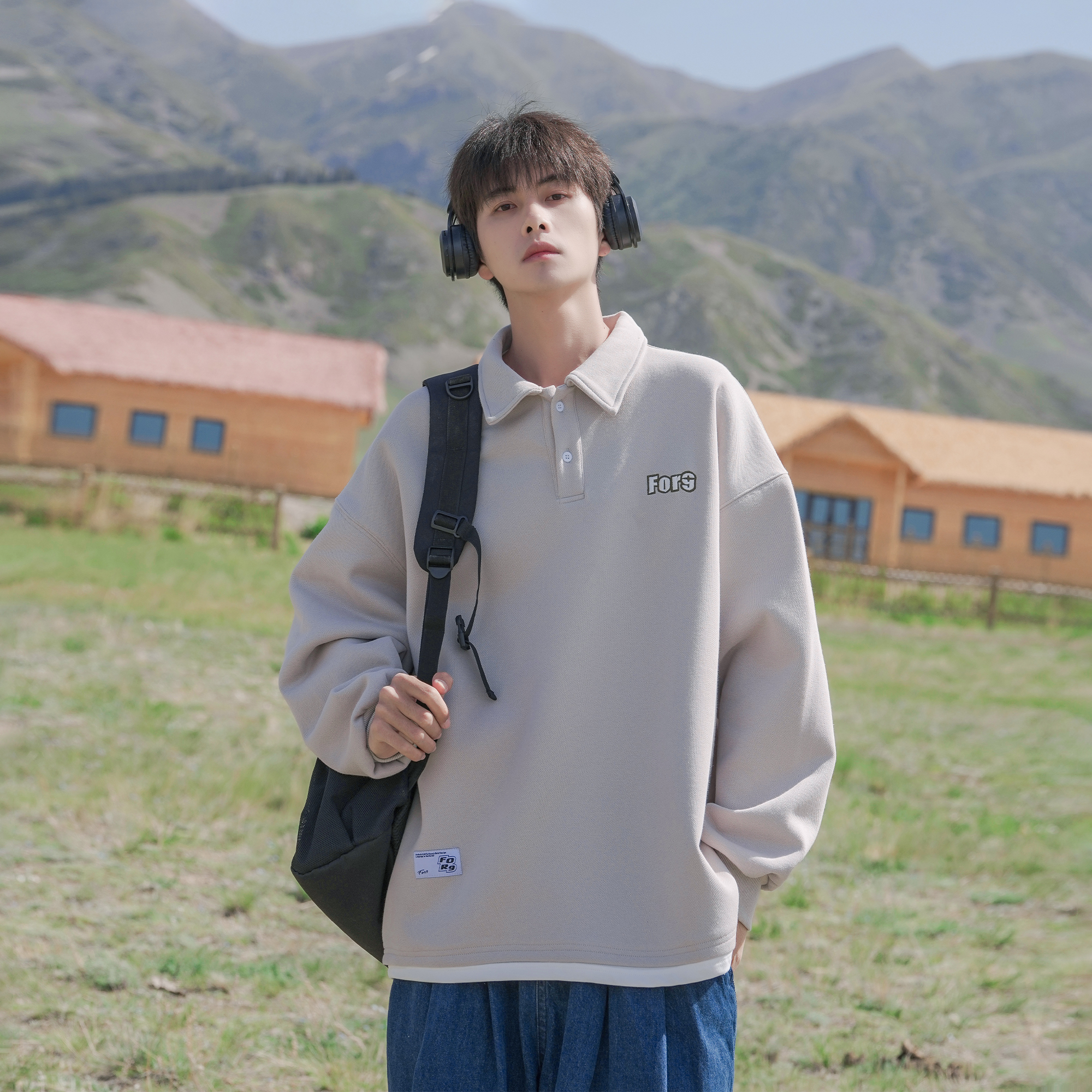 港仔文藝男 370g重磅假兩件polo衫男秋季日系Cityboy刺繡翻領衛衣