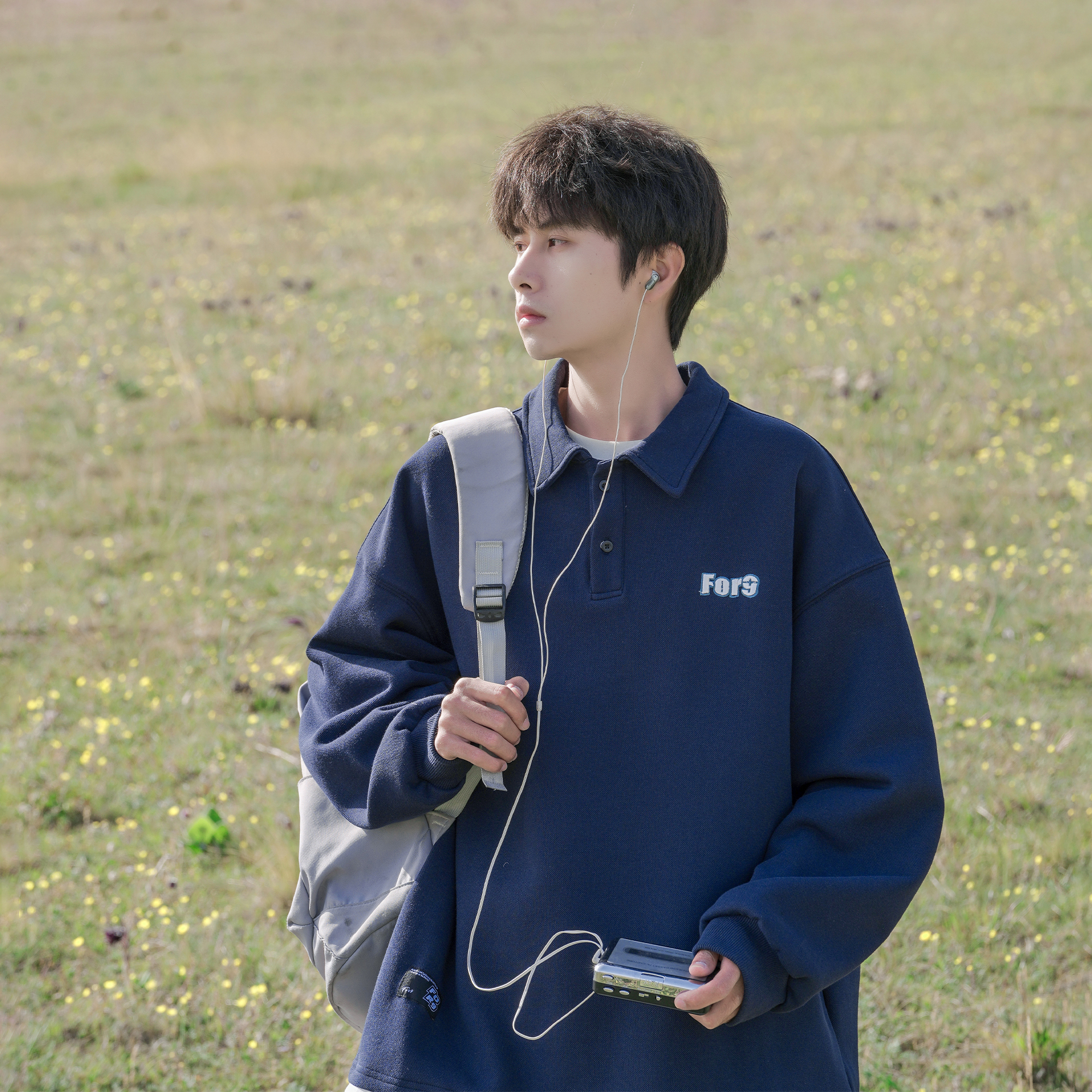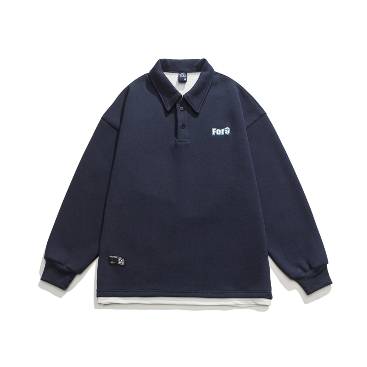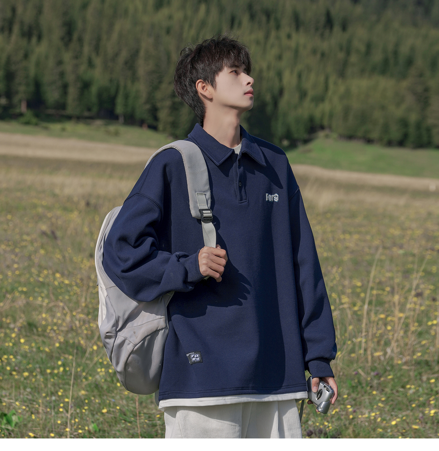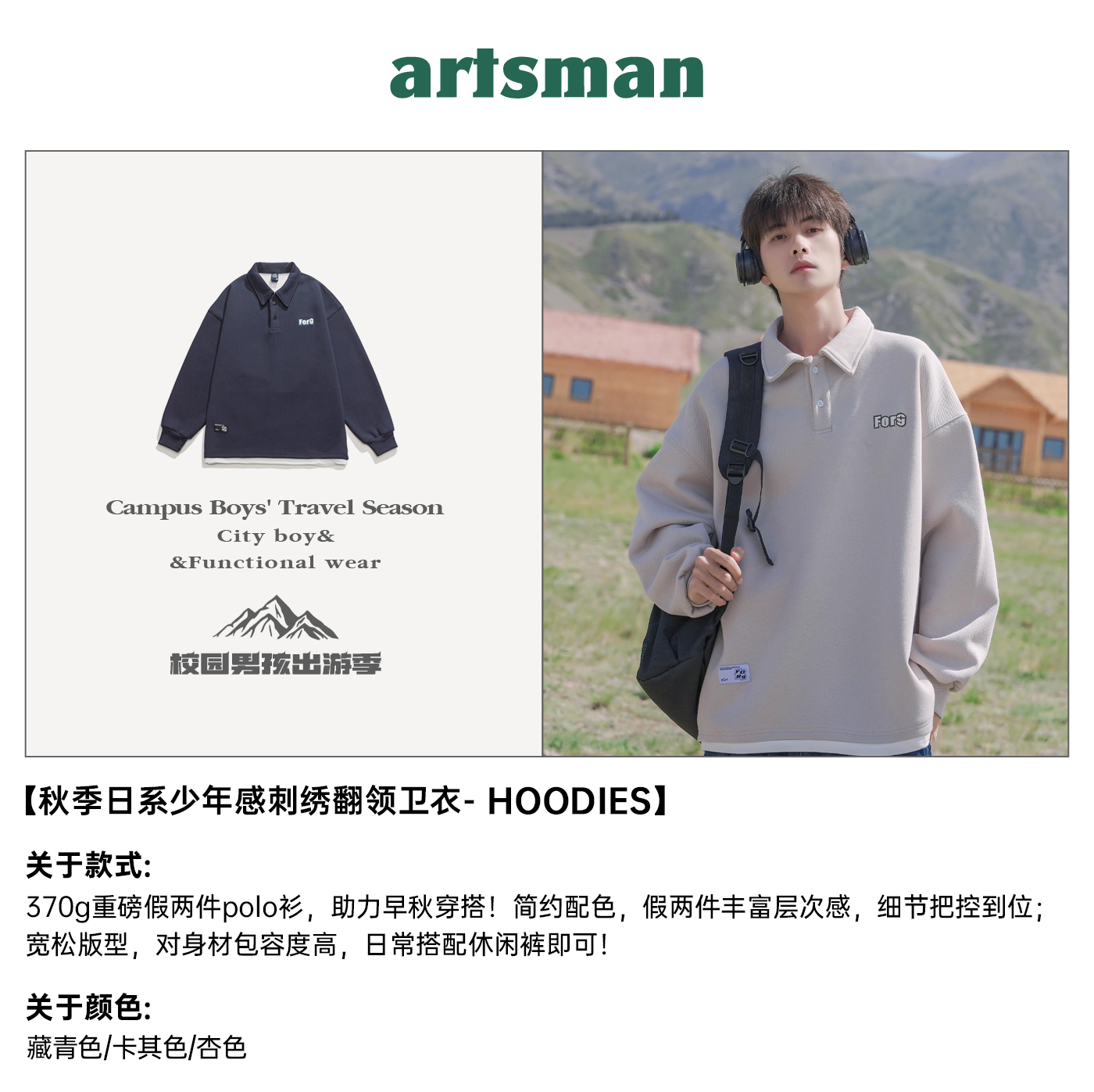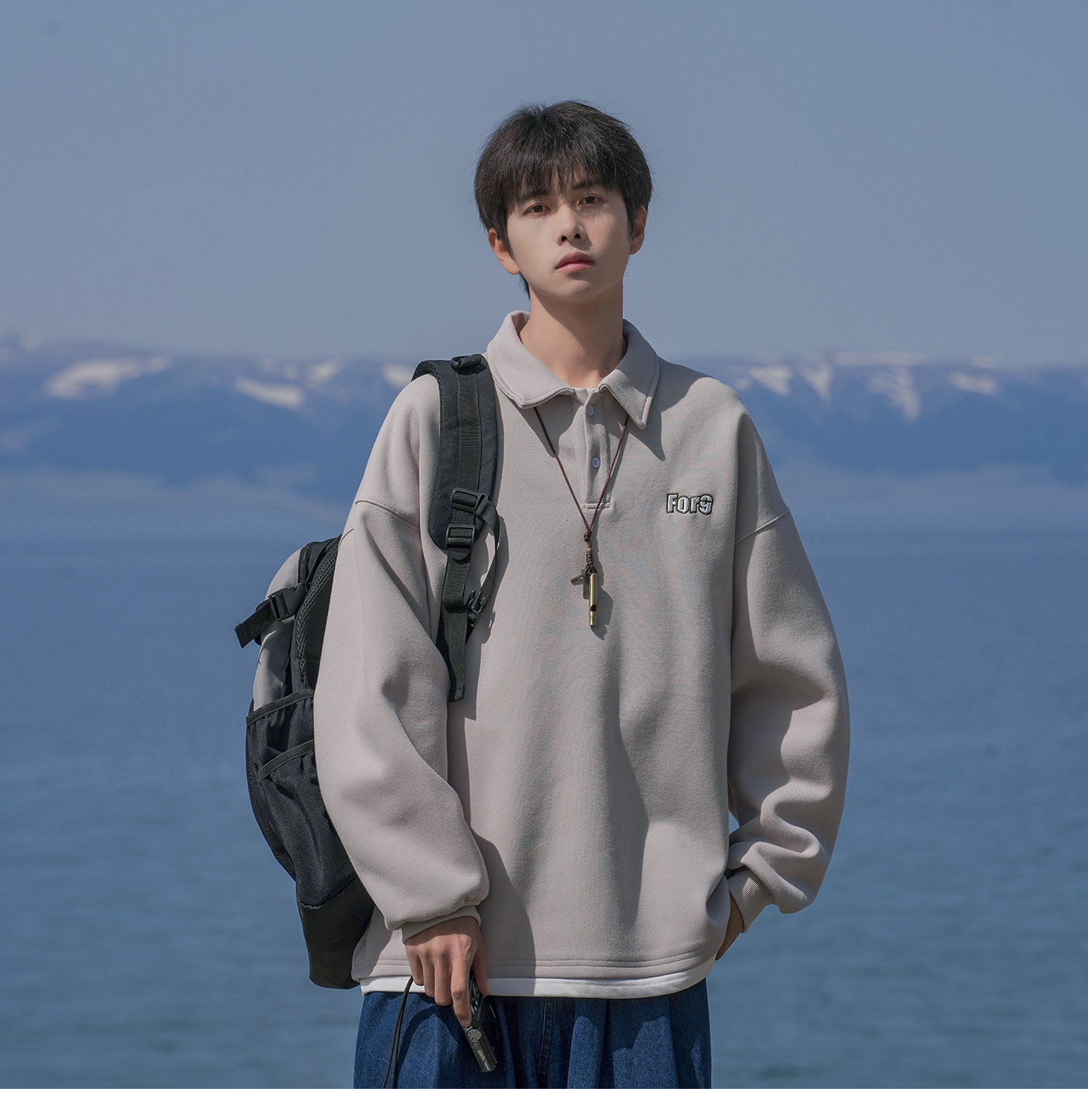 港仔文藝男 370g重磅假兩件polo衫男秋季日系Cityboy刺繡翻領衛衣