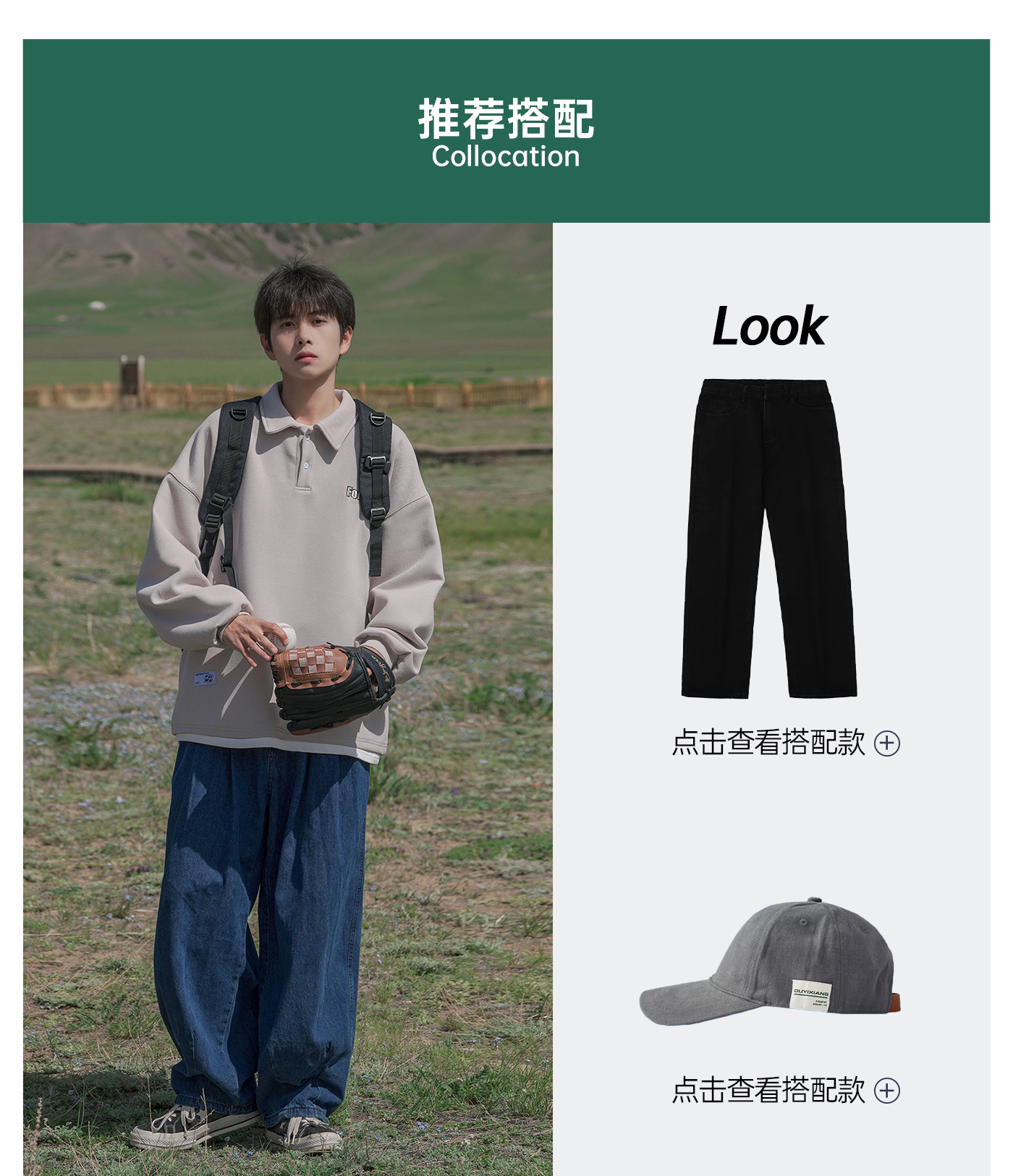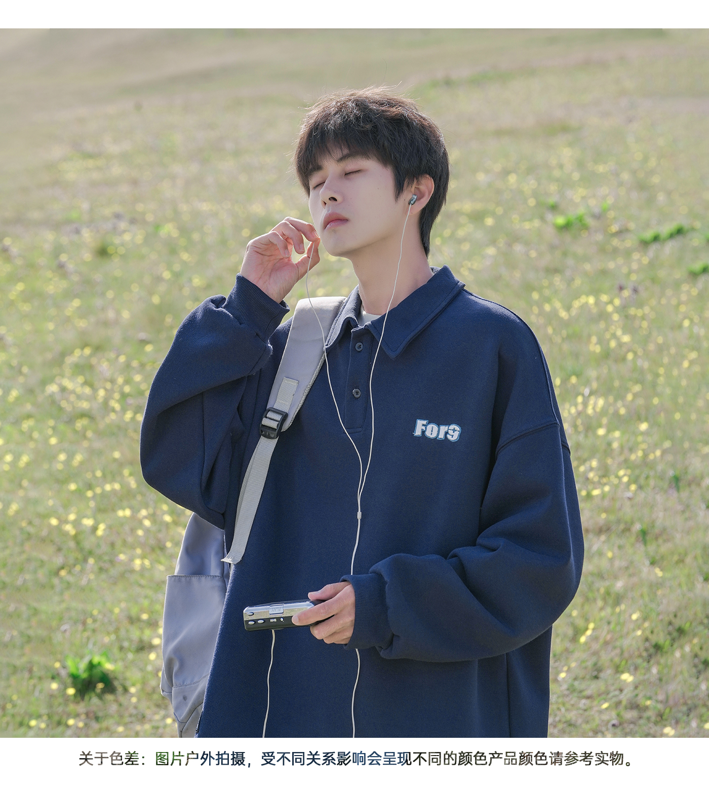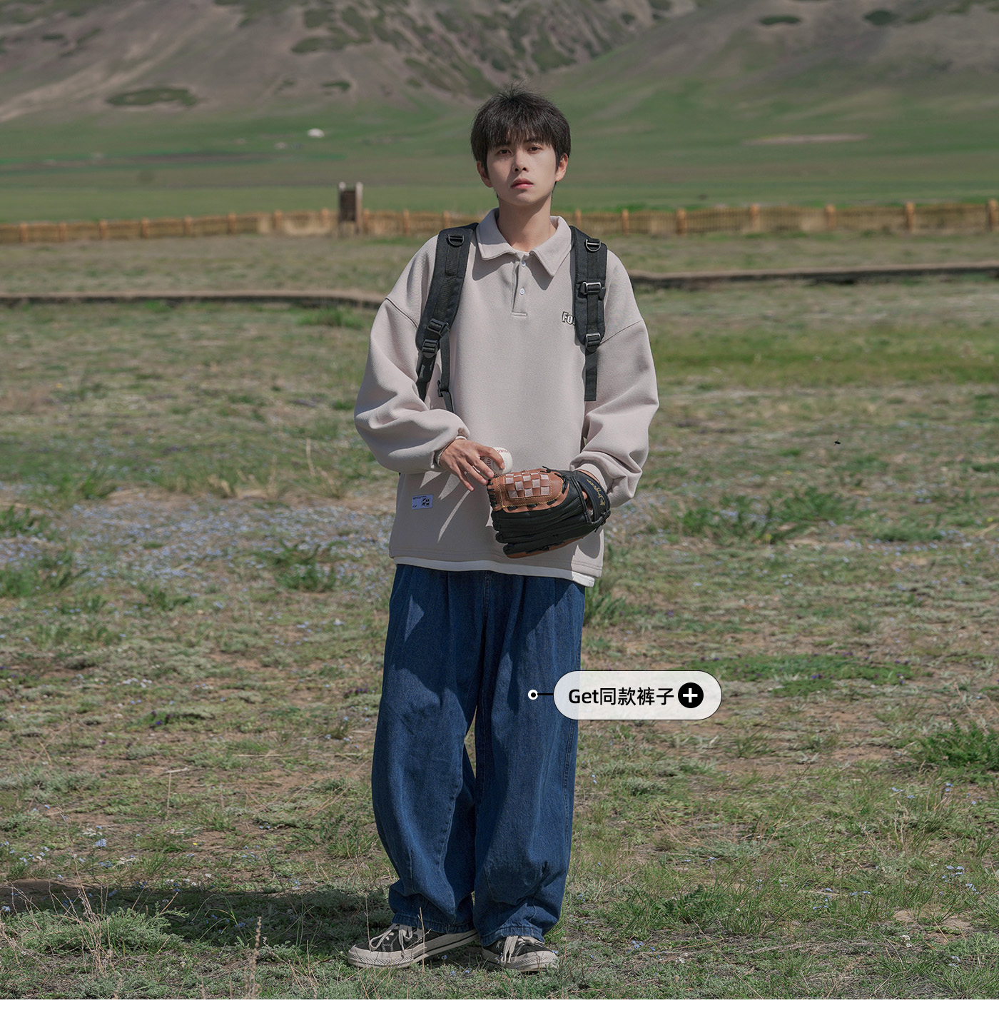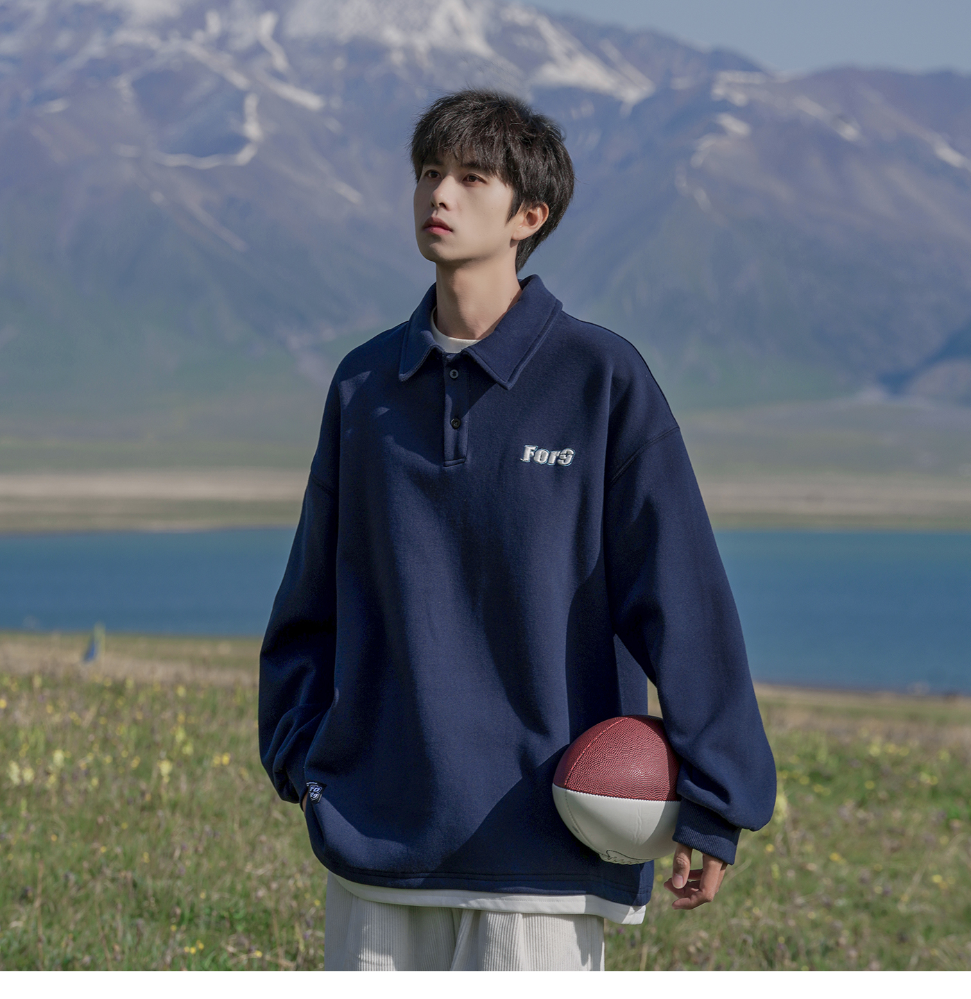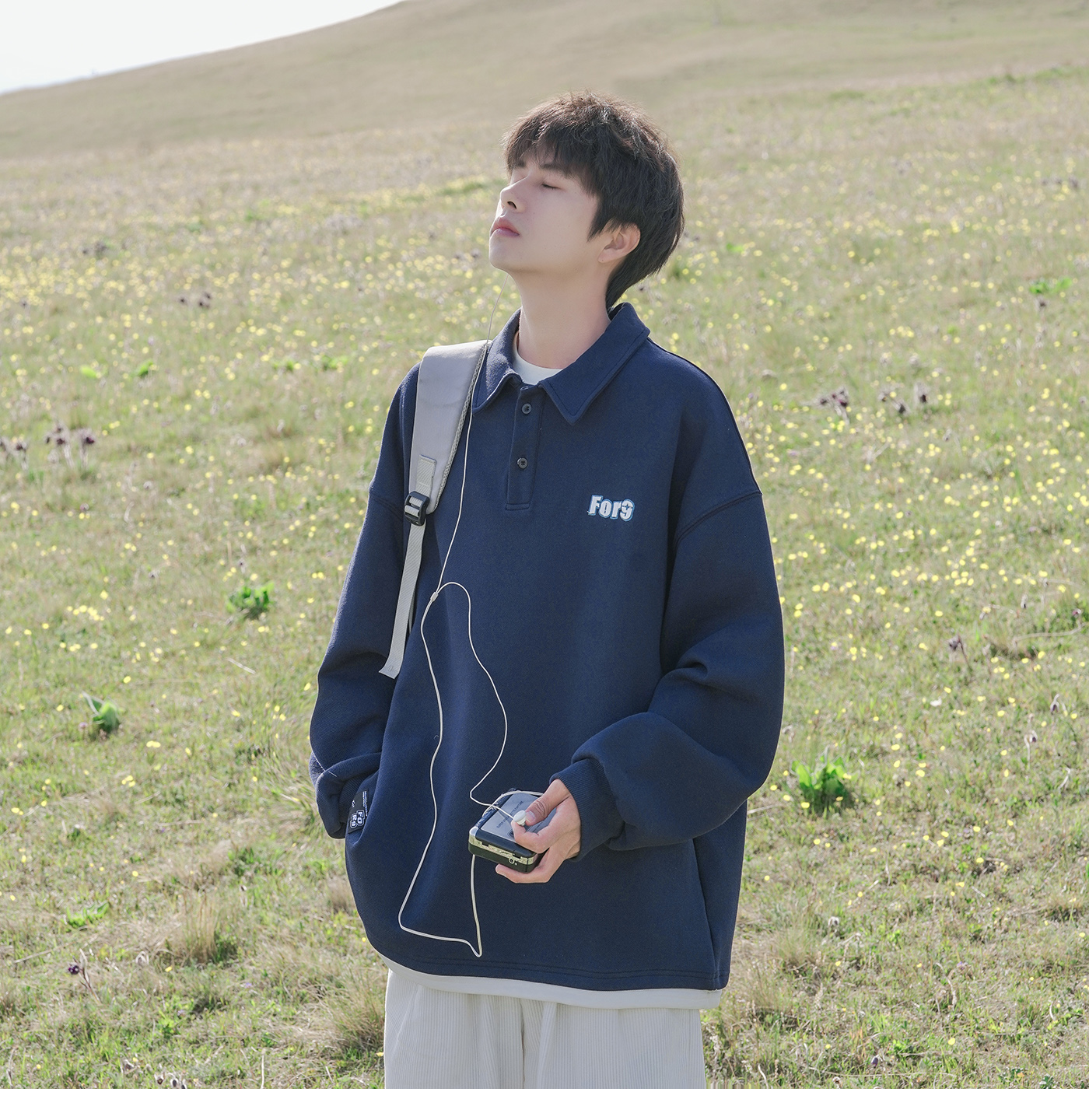 港仔文藝男 370g重磅假兩件polo衫男秋季日系Cityboy刺繡翻領衛衣