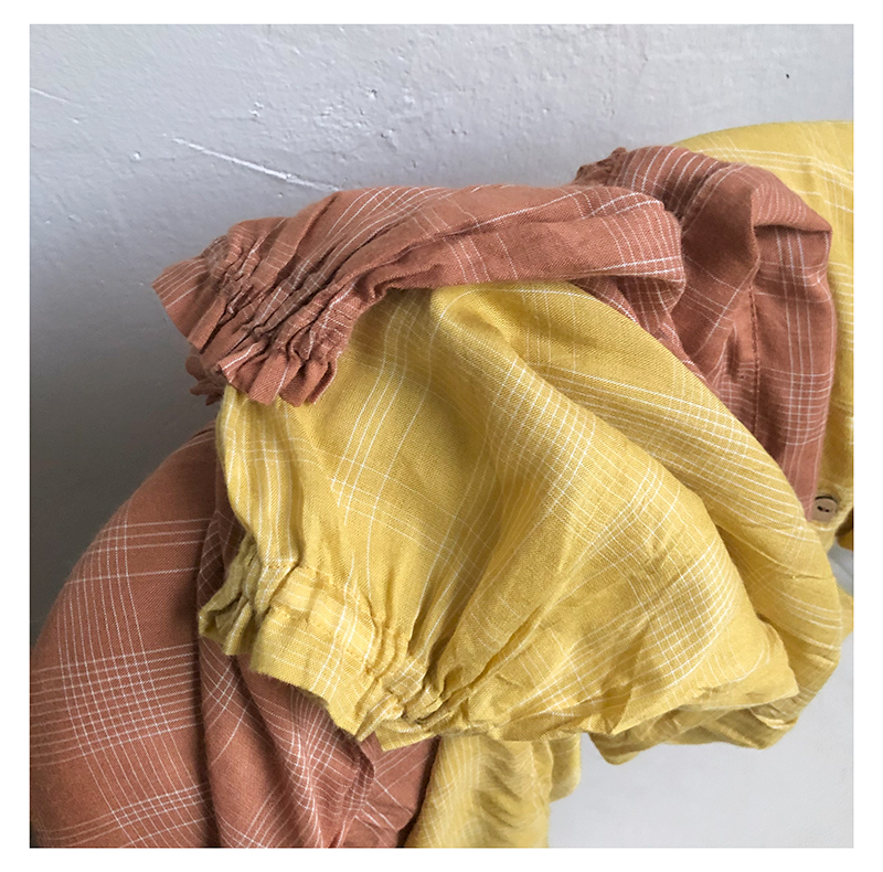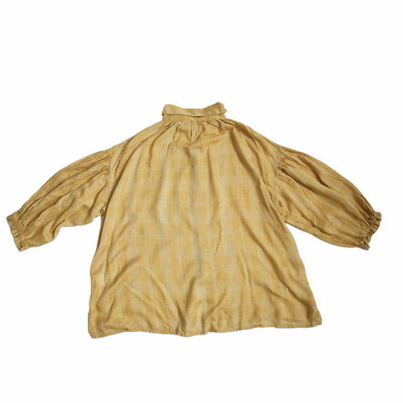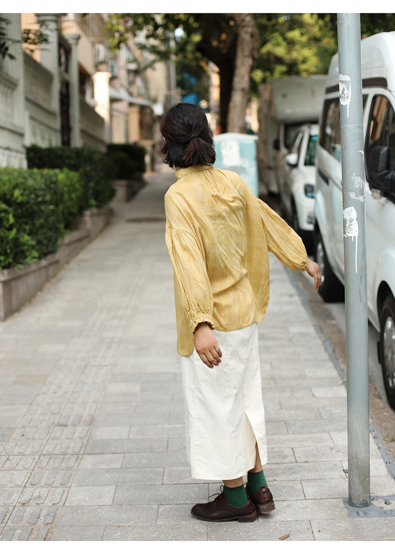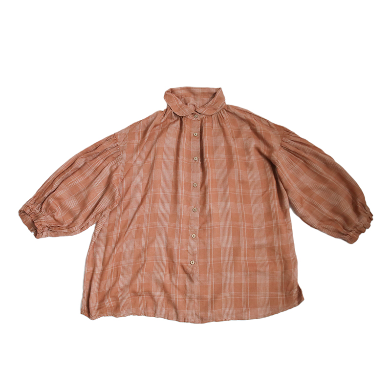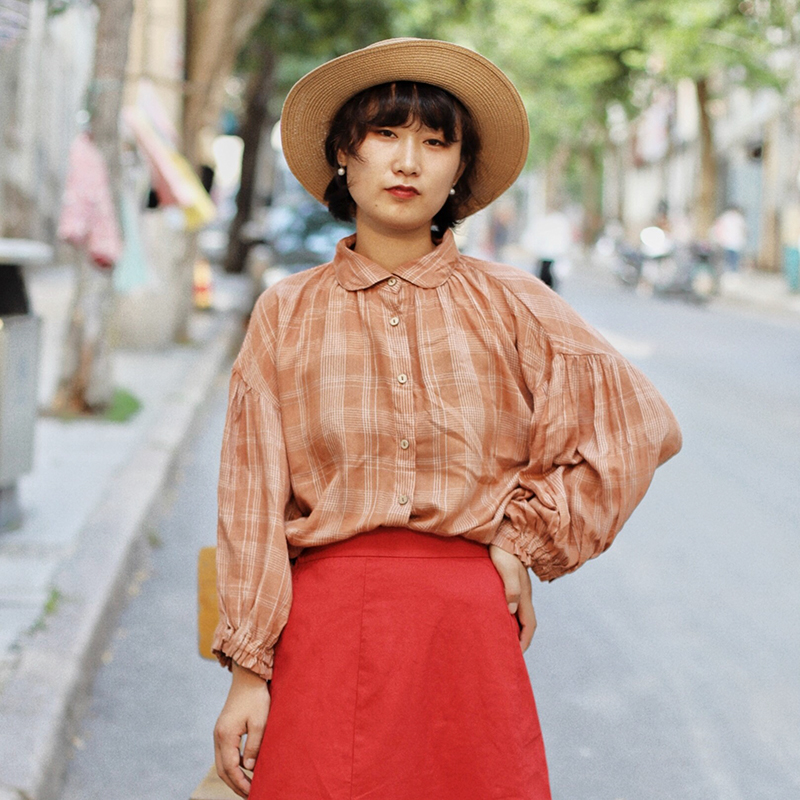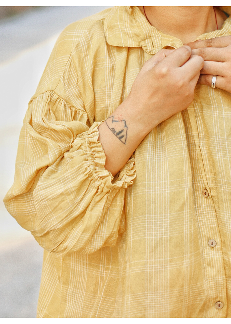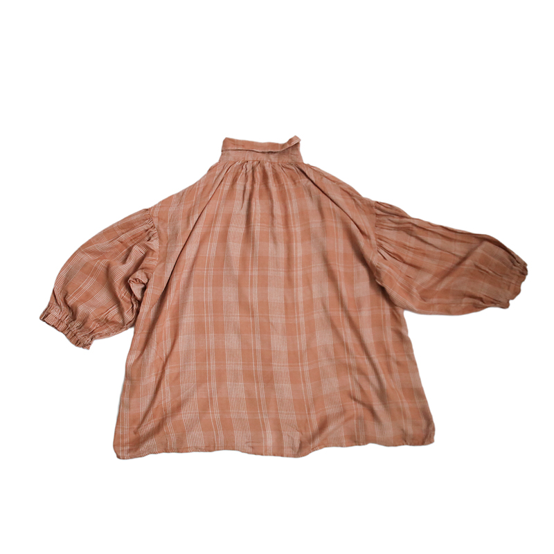 三叔 日單秋款格子襯衫長袖寬鬆復古亞麻上衣柔軟大袖子設計