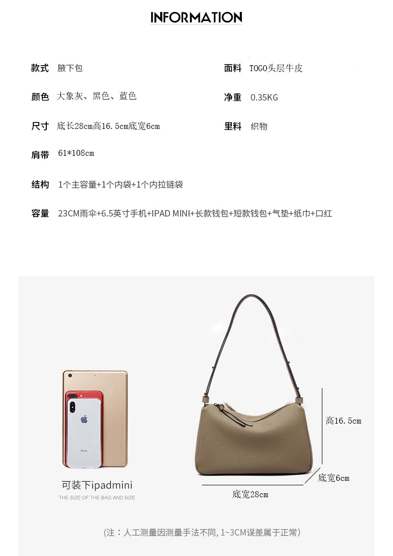2022新款韩版腋下托特包时尚真皮通勤大包高级感百搭牛皮单肩女包超值价:¥155