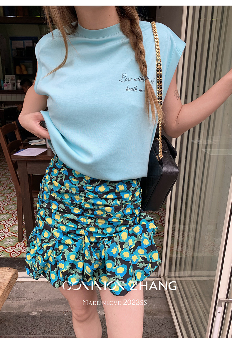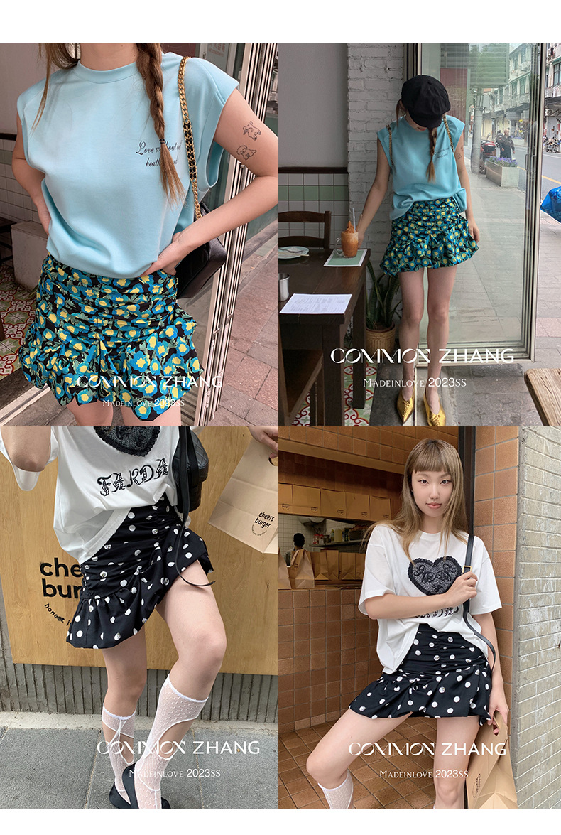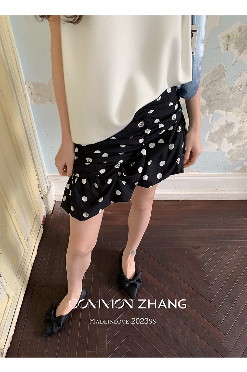 十三行特价清仓【不退换】波点高腰半身裙女褶皱碎花小短裙63582