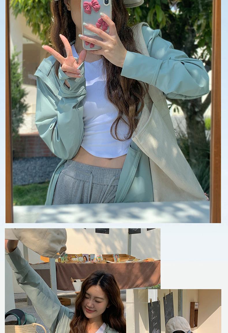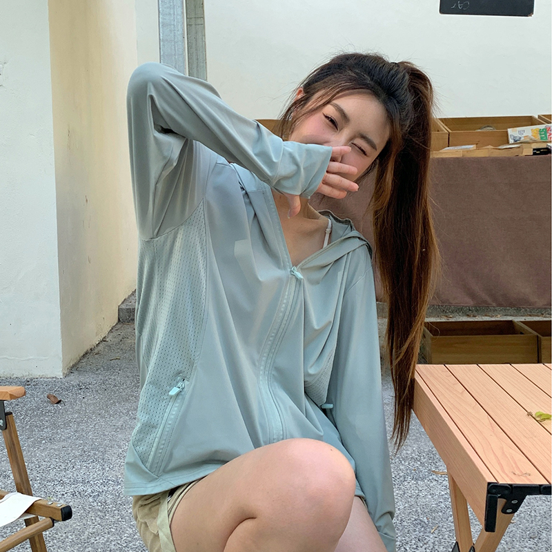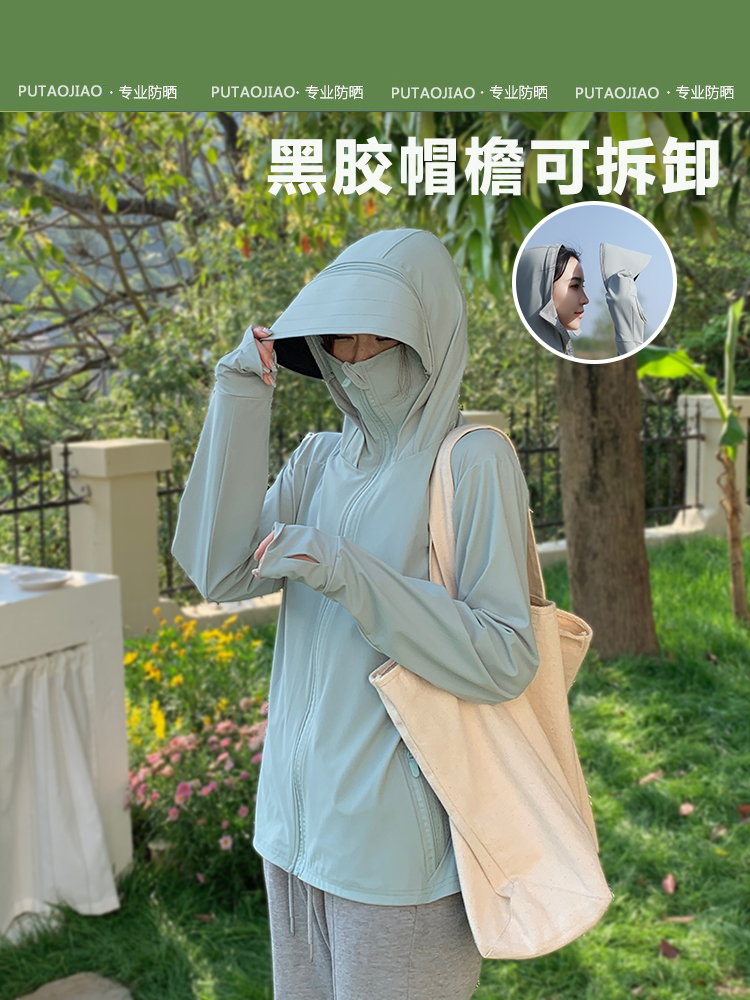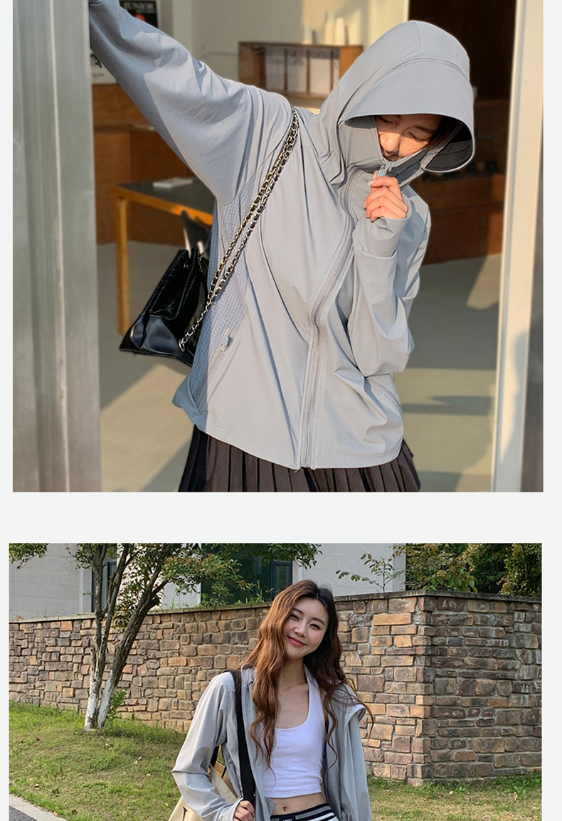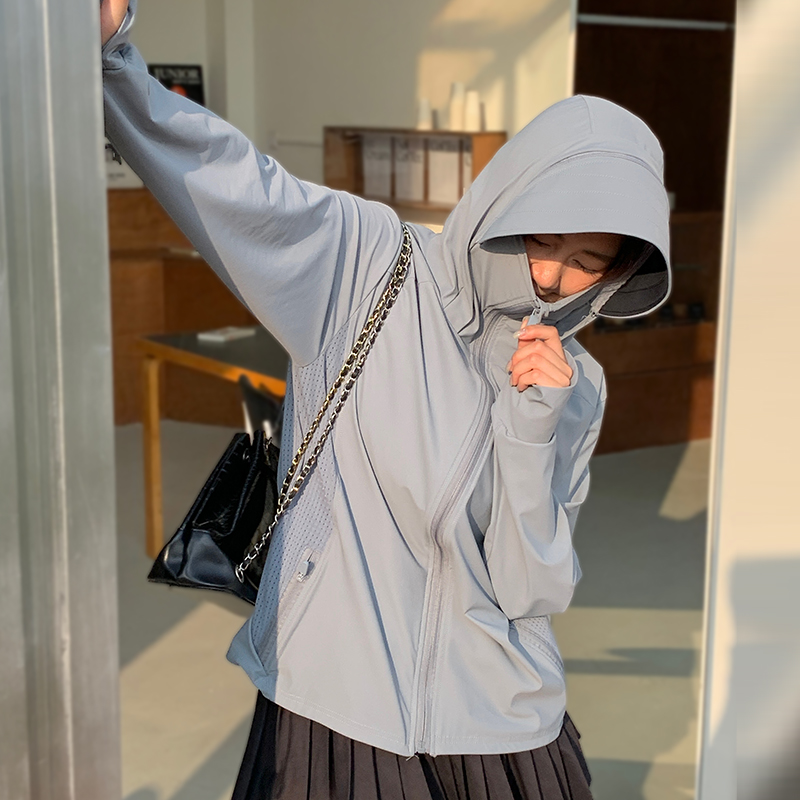 防曬衣女款2023小個子連帽檐原紗抗UV冰絲涼感戶外防曬服外套