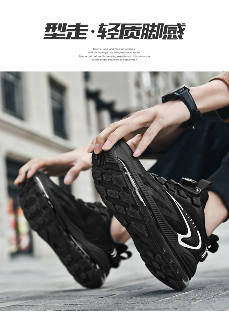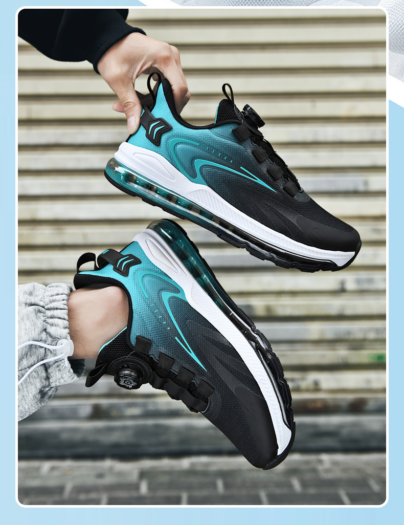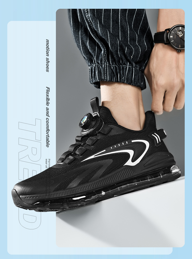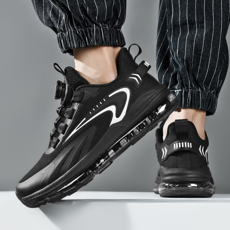 夏季新款透氣飛織網面運動鞋男旋轉鈕釦免系鞋帶氣墊軟底跑步鞋男