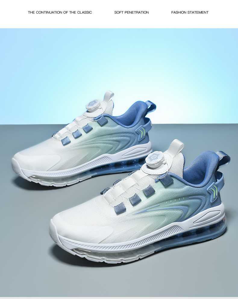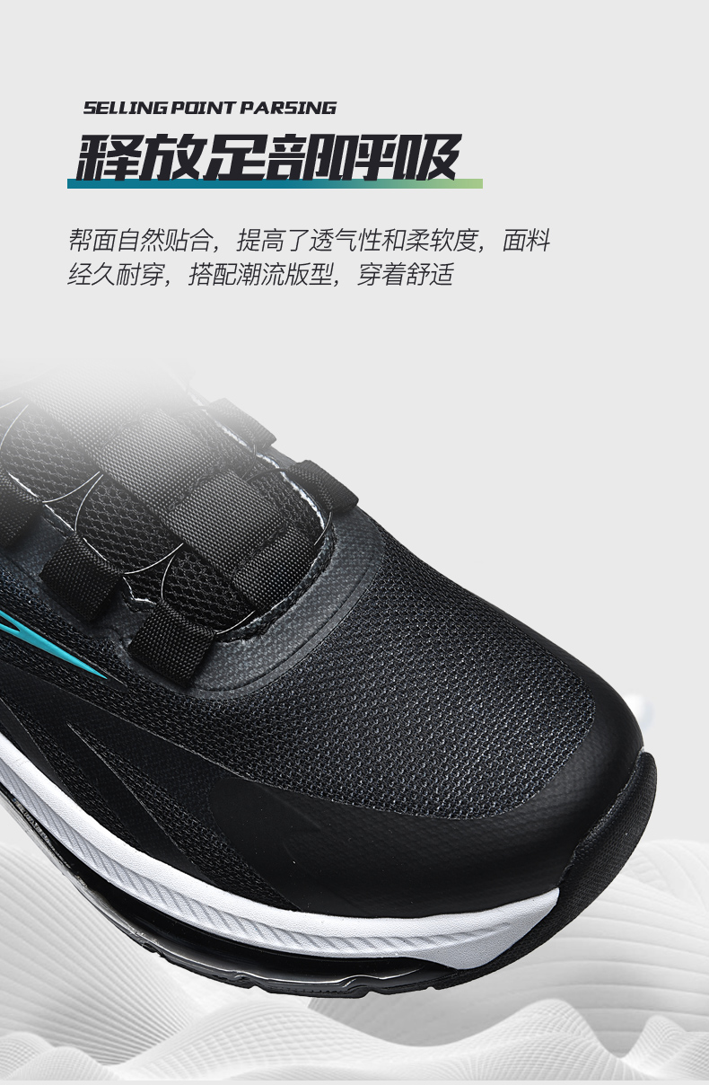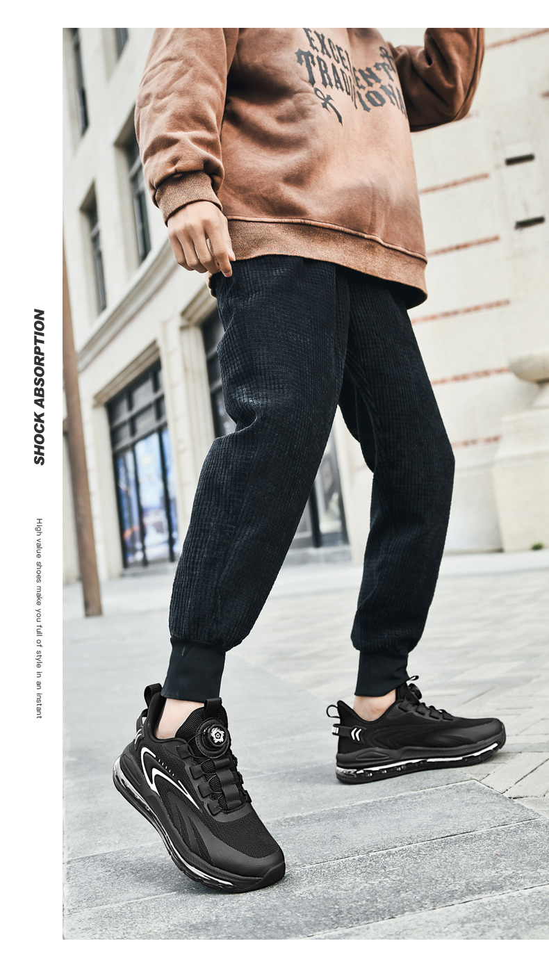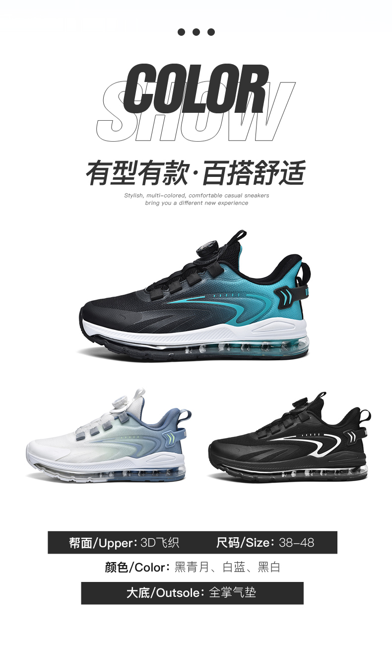 夏季新款透氣飛織網面運動鞋男旋轉鈕釦免系鞋帶氣墊軟底跑步鞋男