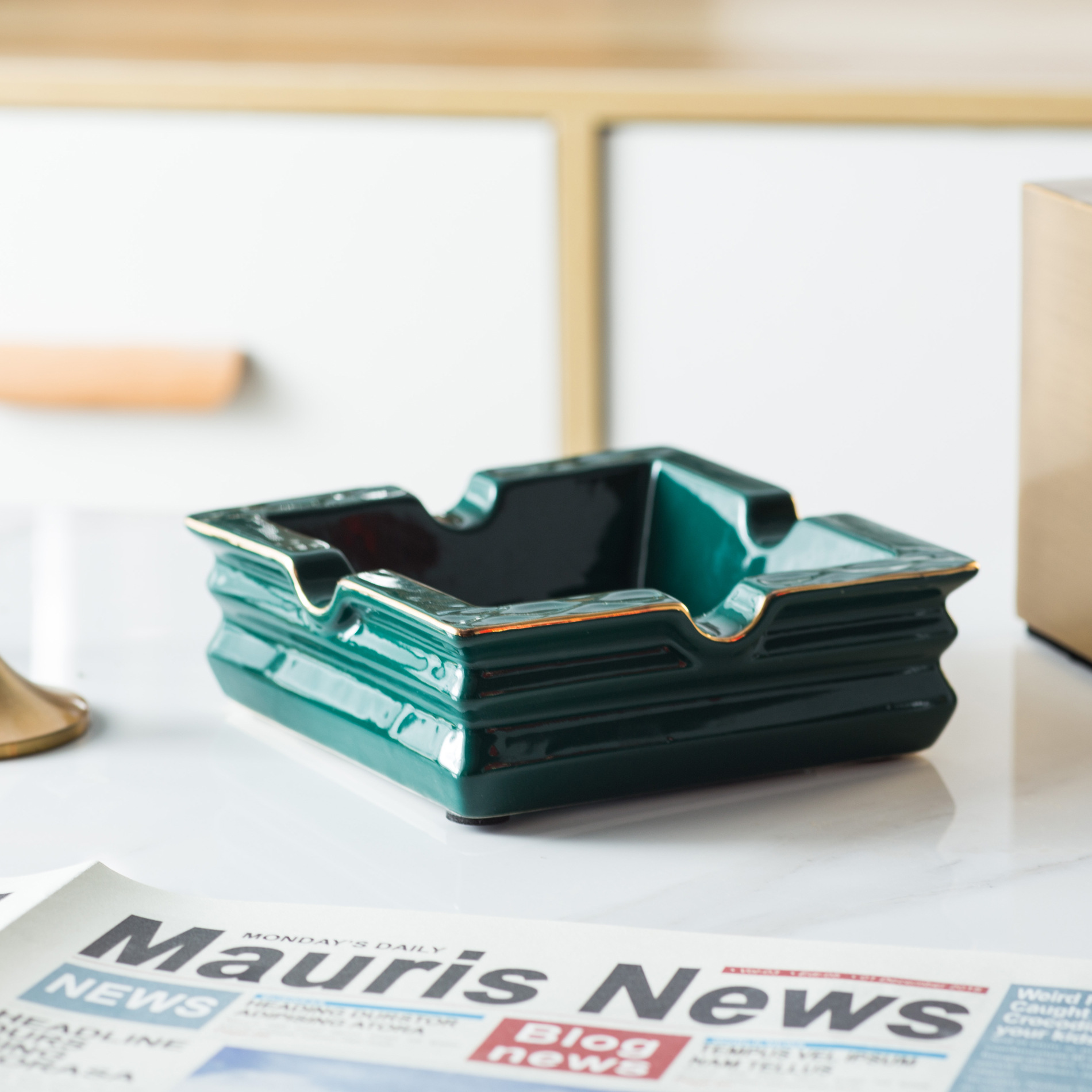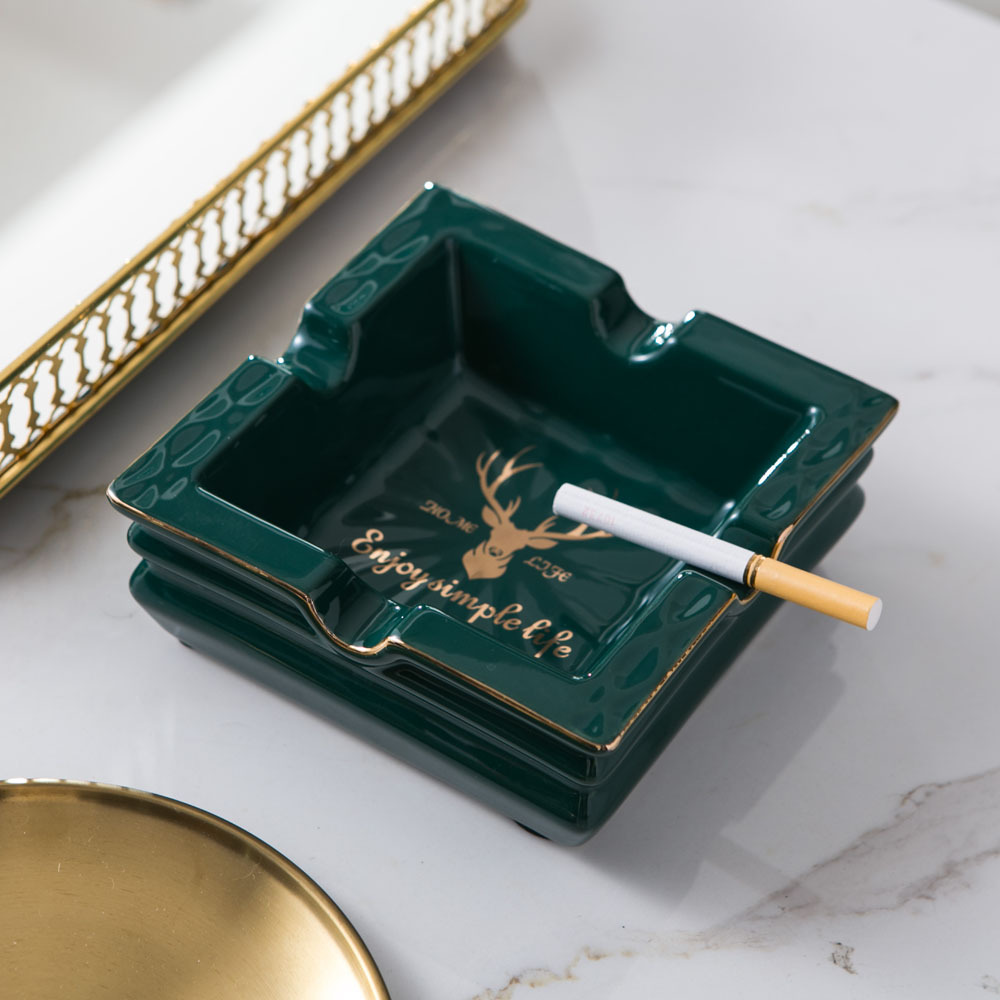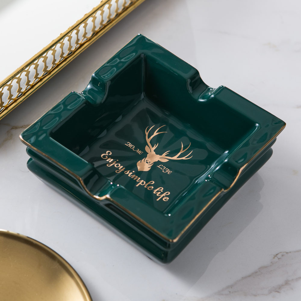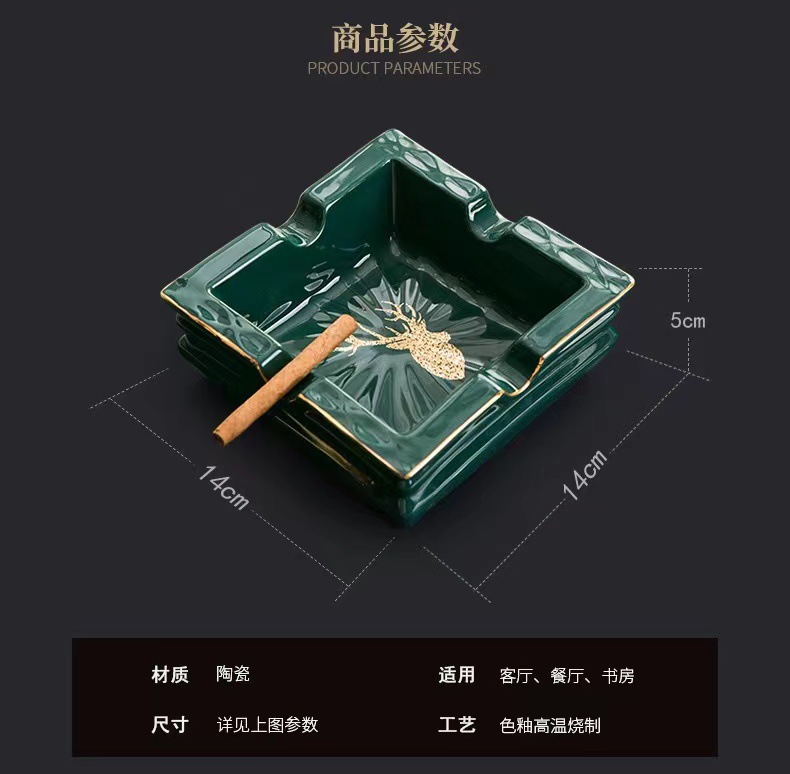 创意祖母绿轻奢时尚陶瓷烟灰缸