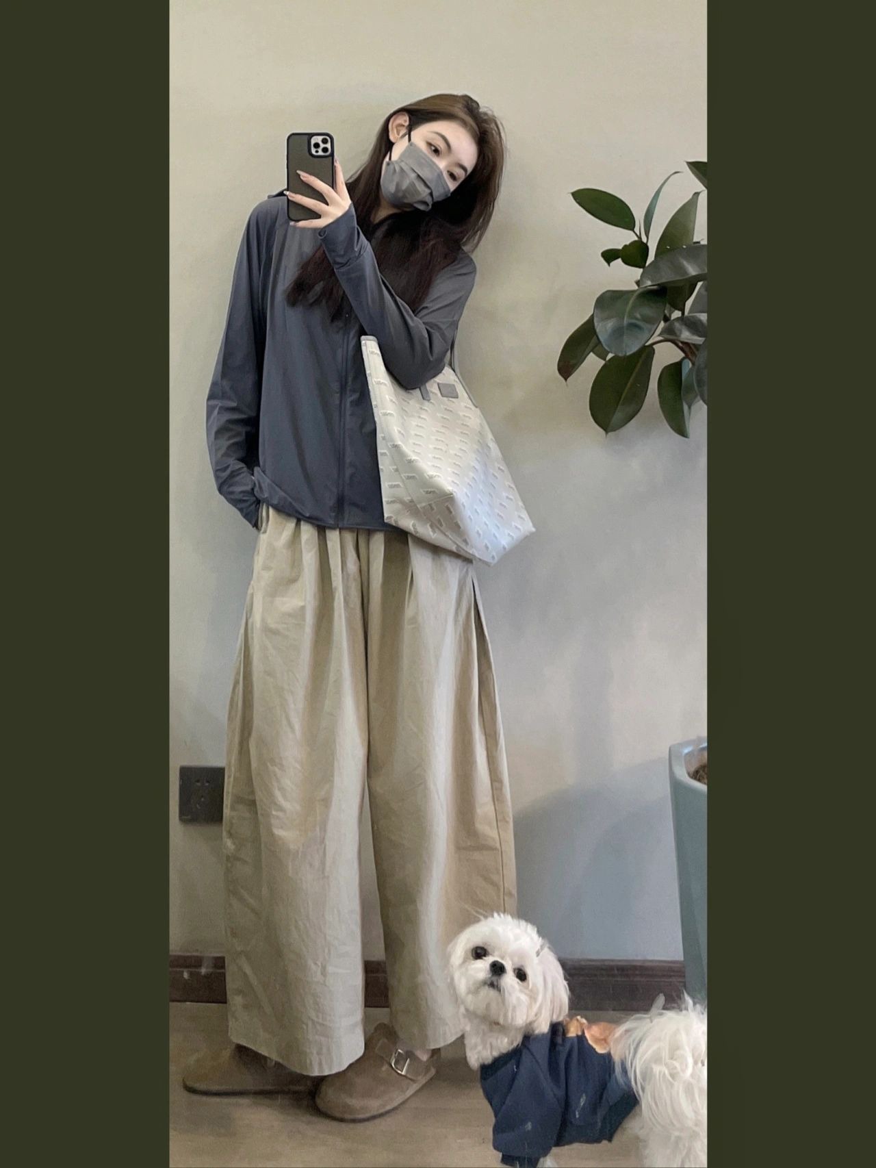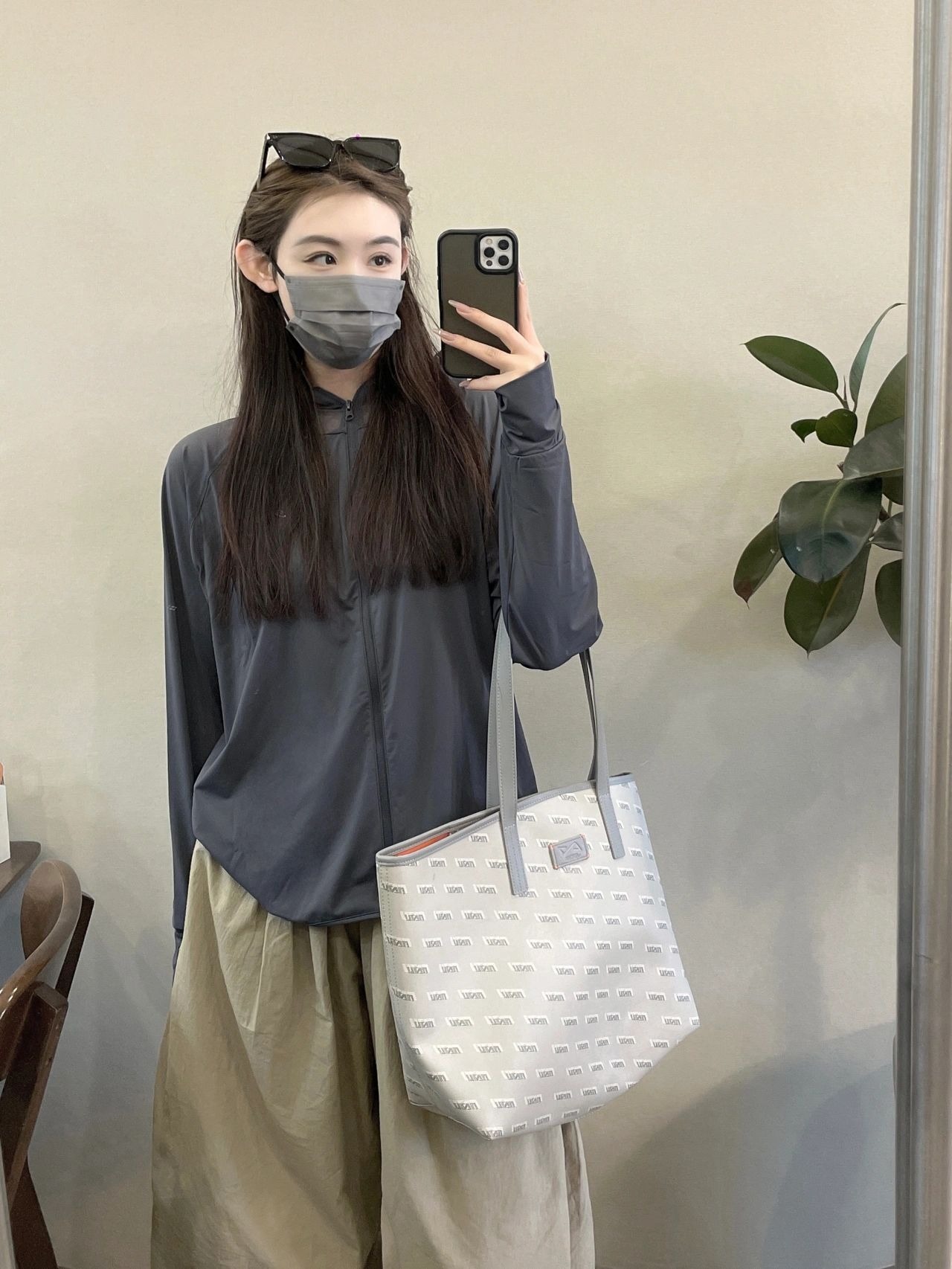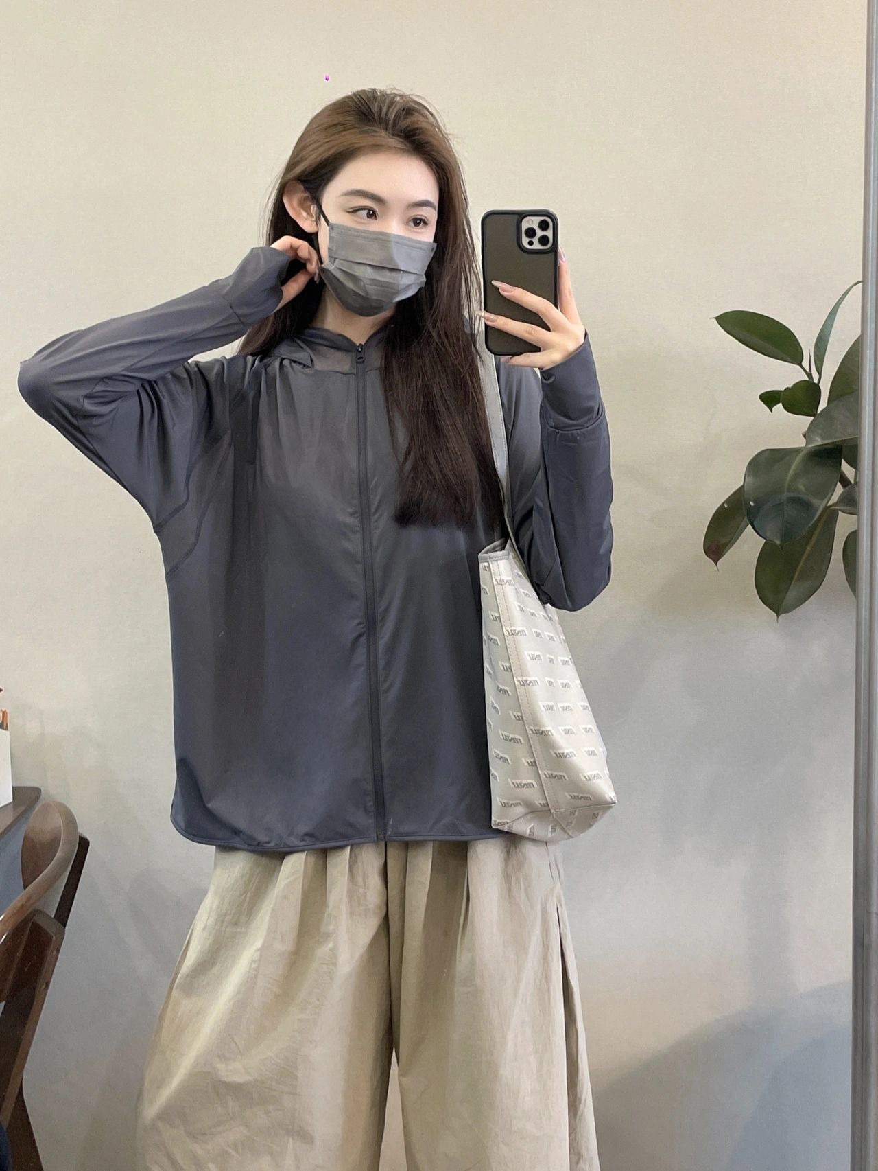 冰絲深灰色防曬衣女夏季新款慵懶風長袖寬鬆連帽戶外運動透氣外套