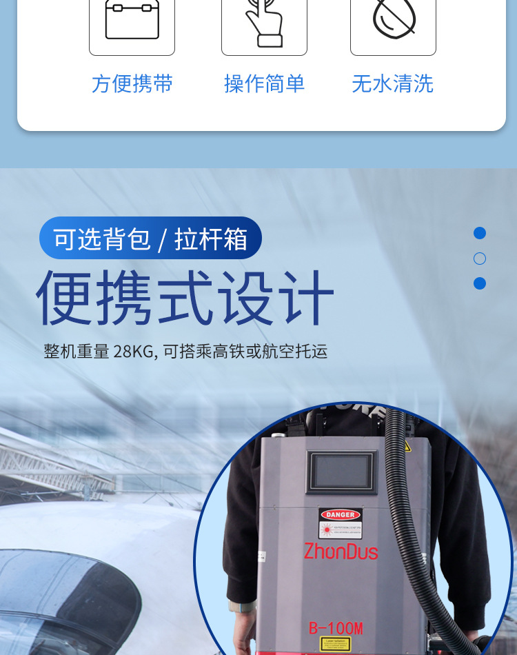 背包小型手持式激光除锈机50w 100w拉杆箱便携金属脉冲激光清洗机