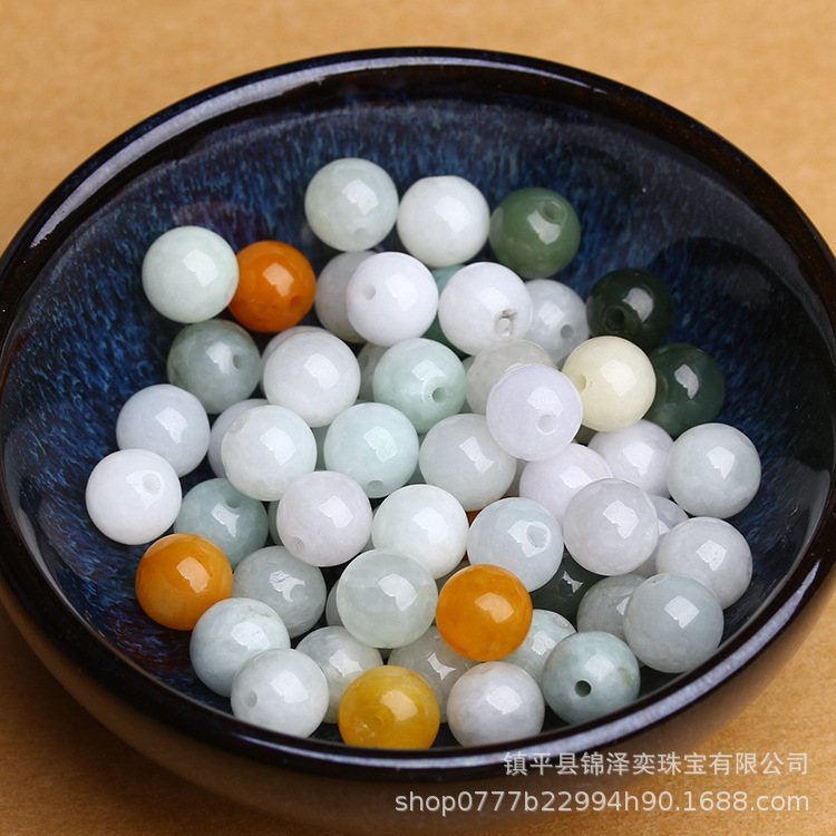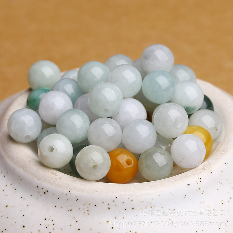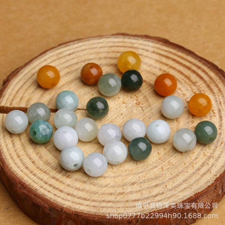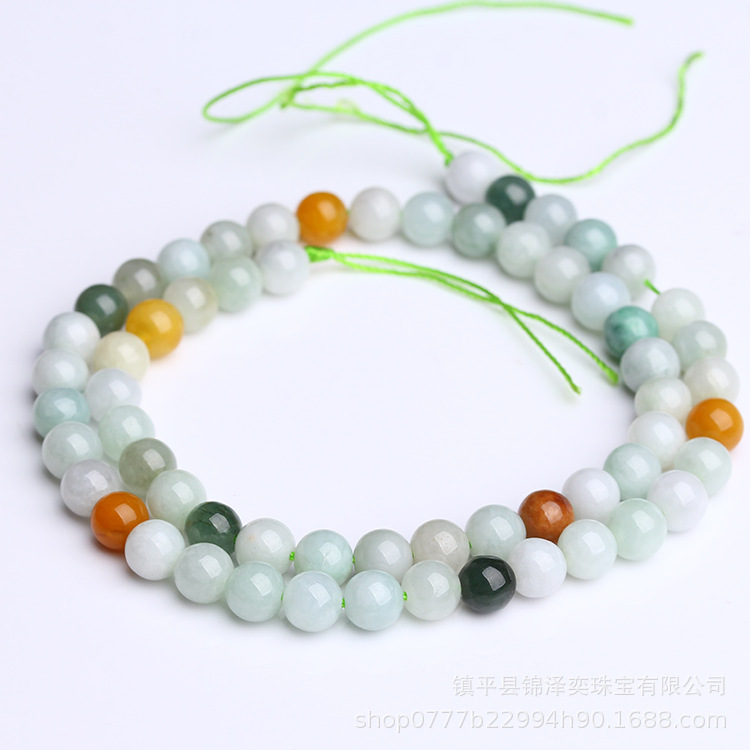 厂家直销天然三彩翡翠散珠批发缅甸冰种a货绿白黄珠子福禄寿圆珠